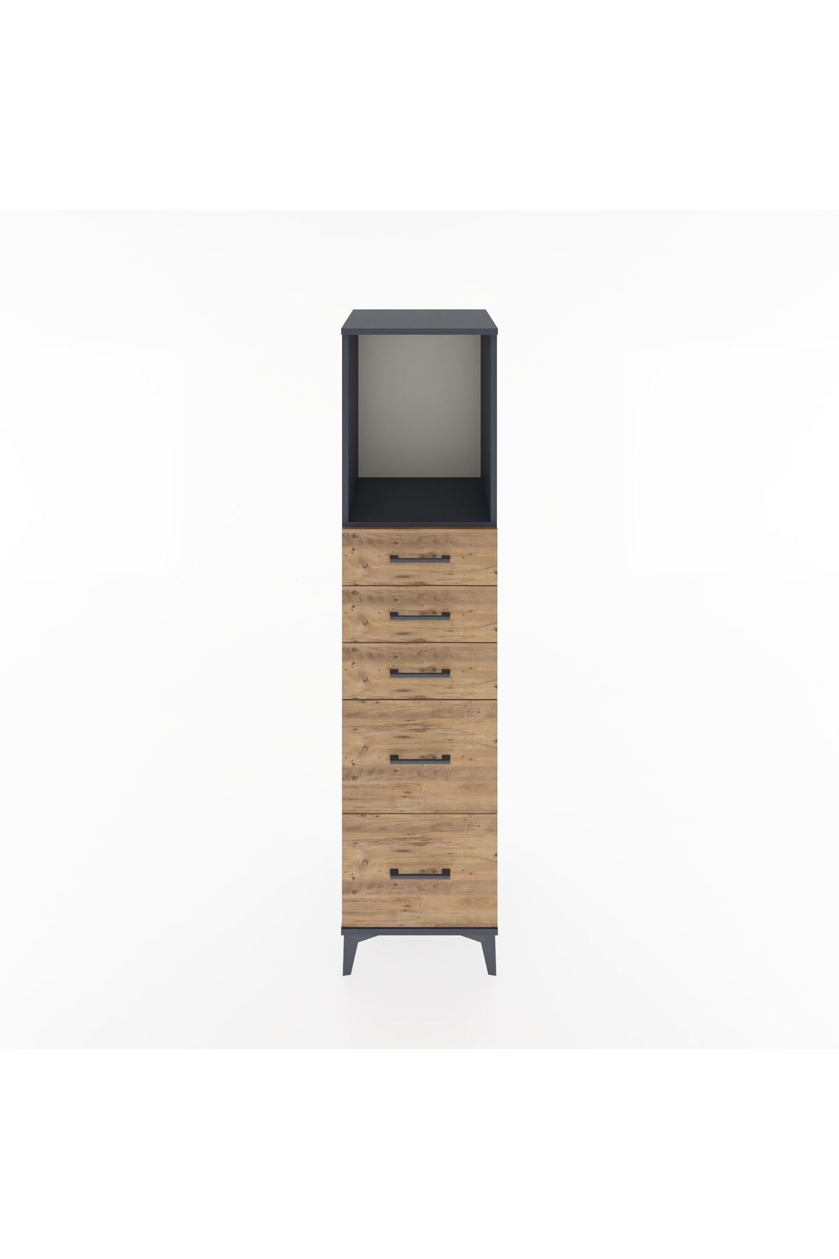 Hyperion Dolap Tek Raflı 5 Çekmeceli 44x44x182 Antrasit-Çam