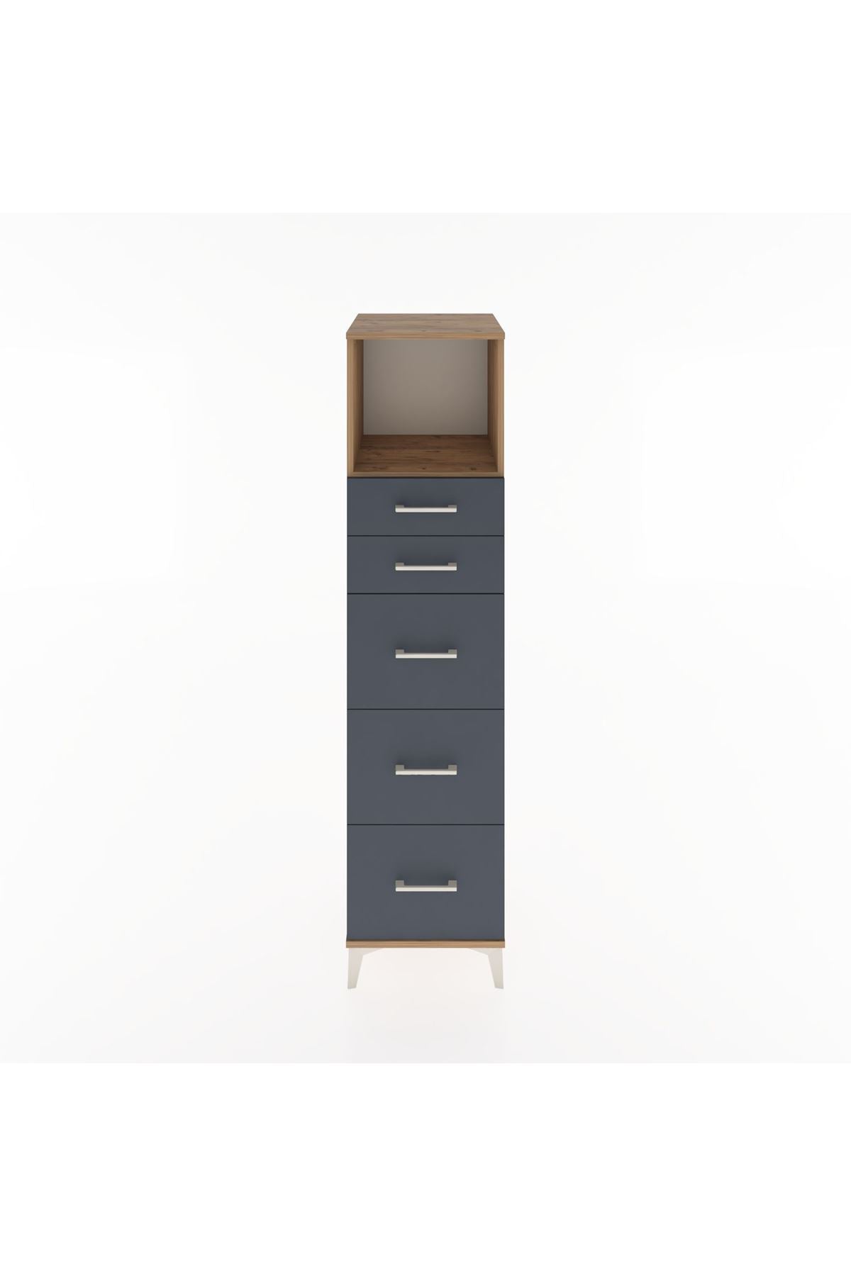 Hyperion Dolap Tek Raflı 5 Çekmeceli 44x44x182 Çam-Antrasit
