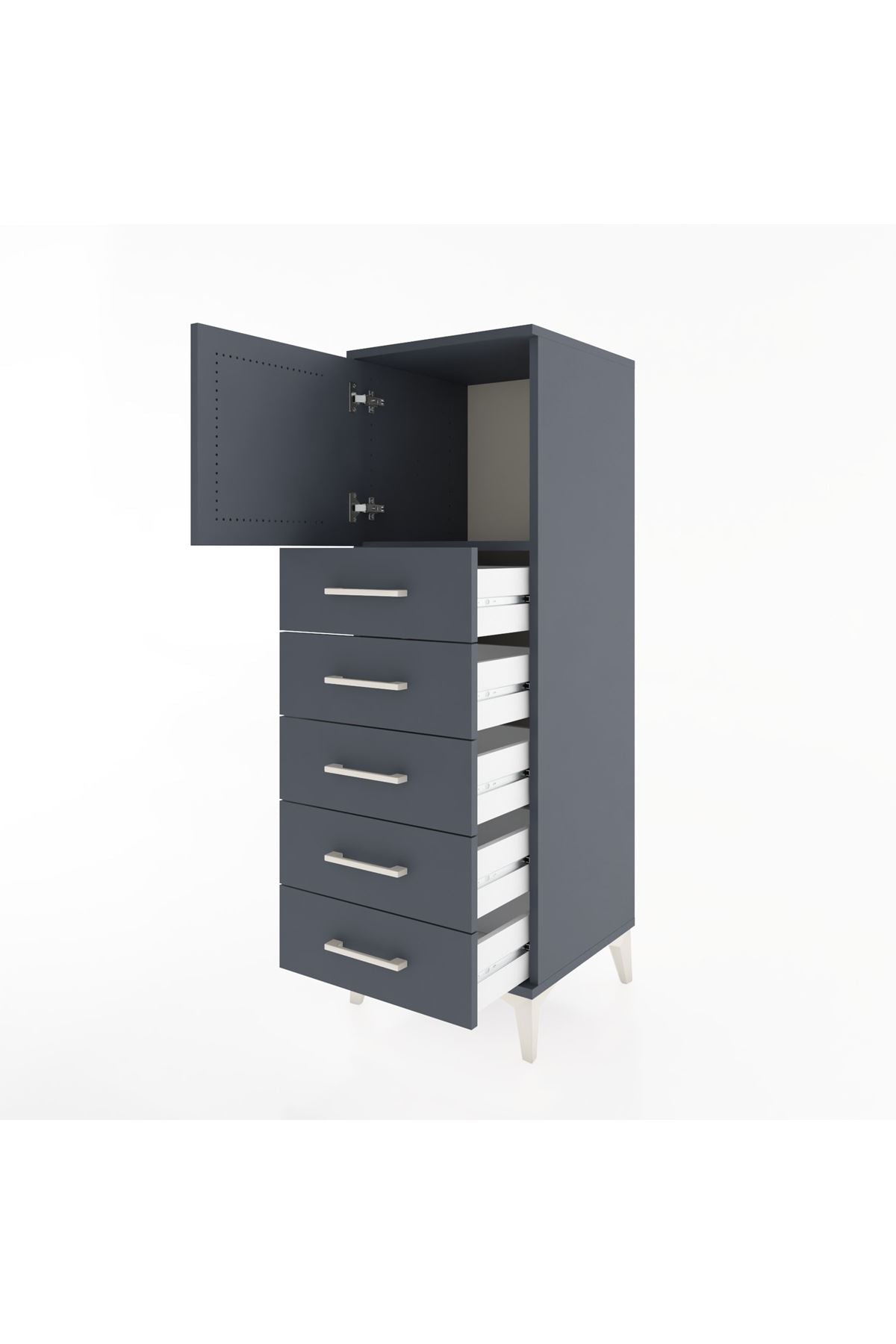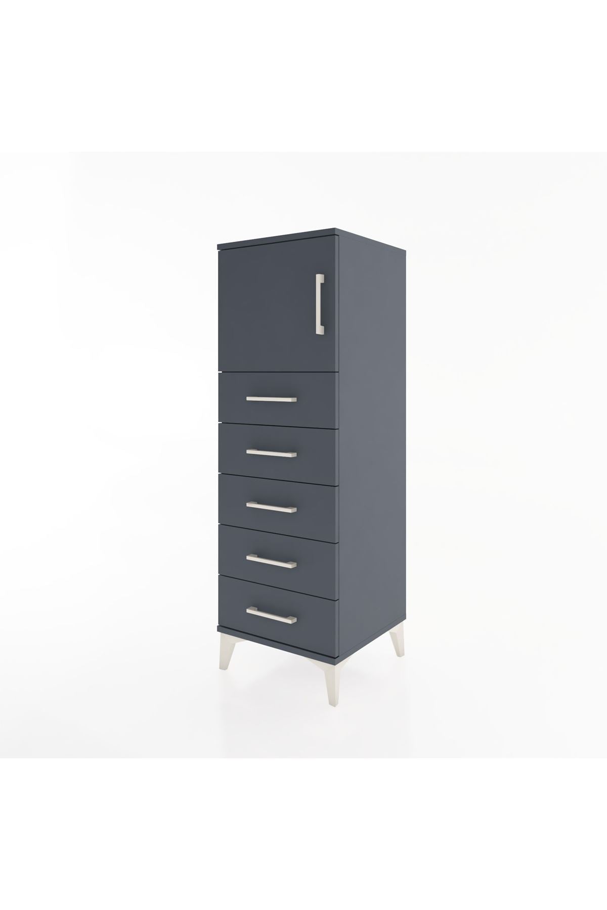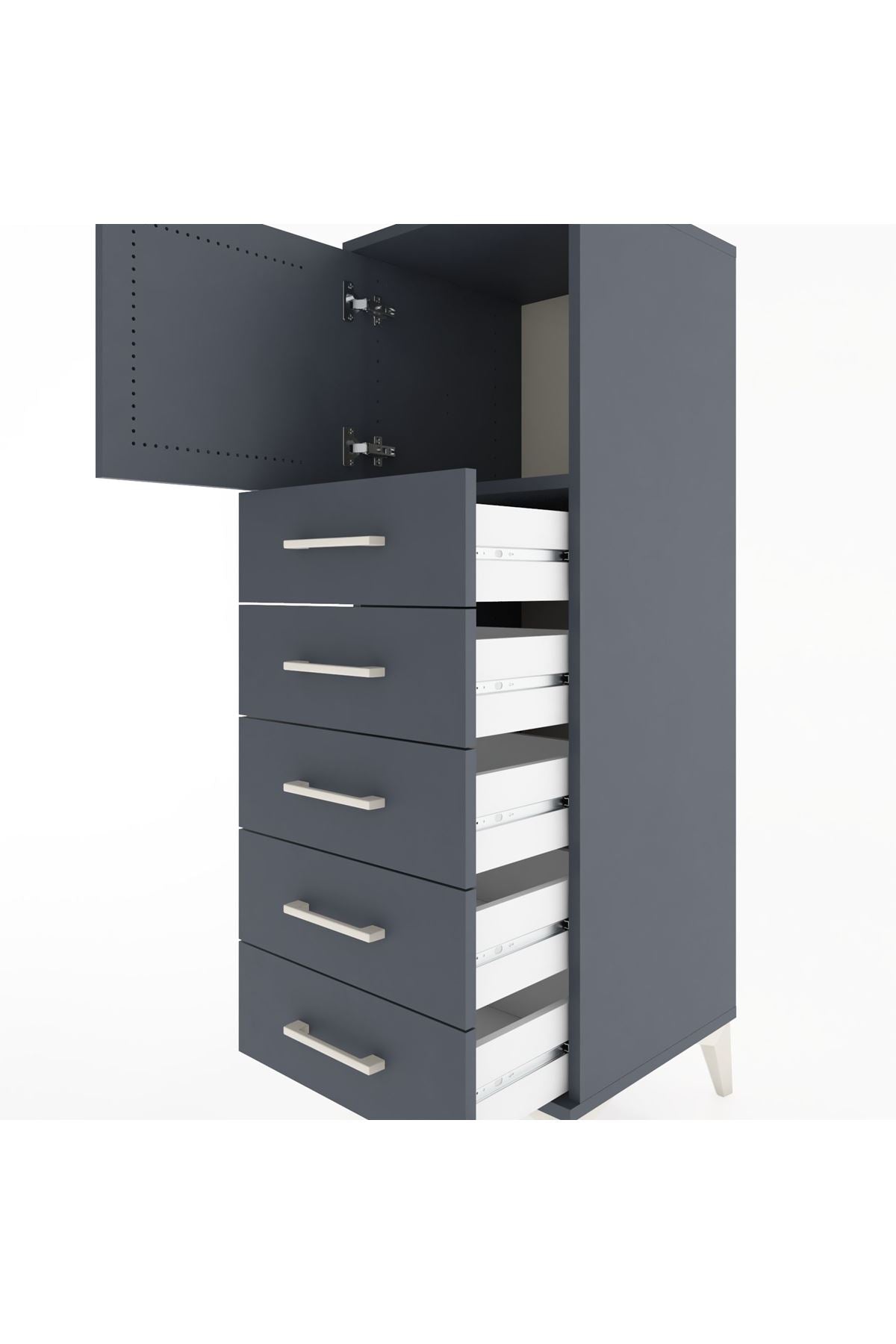 Hyperion Dolap Tek Raflı 5 Çekmeceli Tek Kapaklı 44x44x134 Antrasit-Antrasit