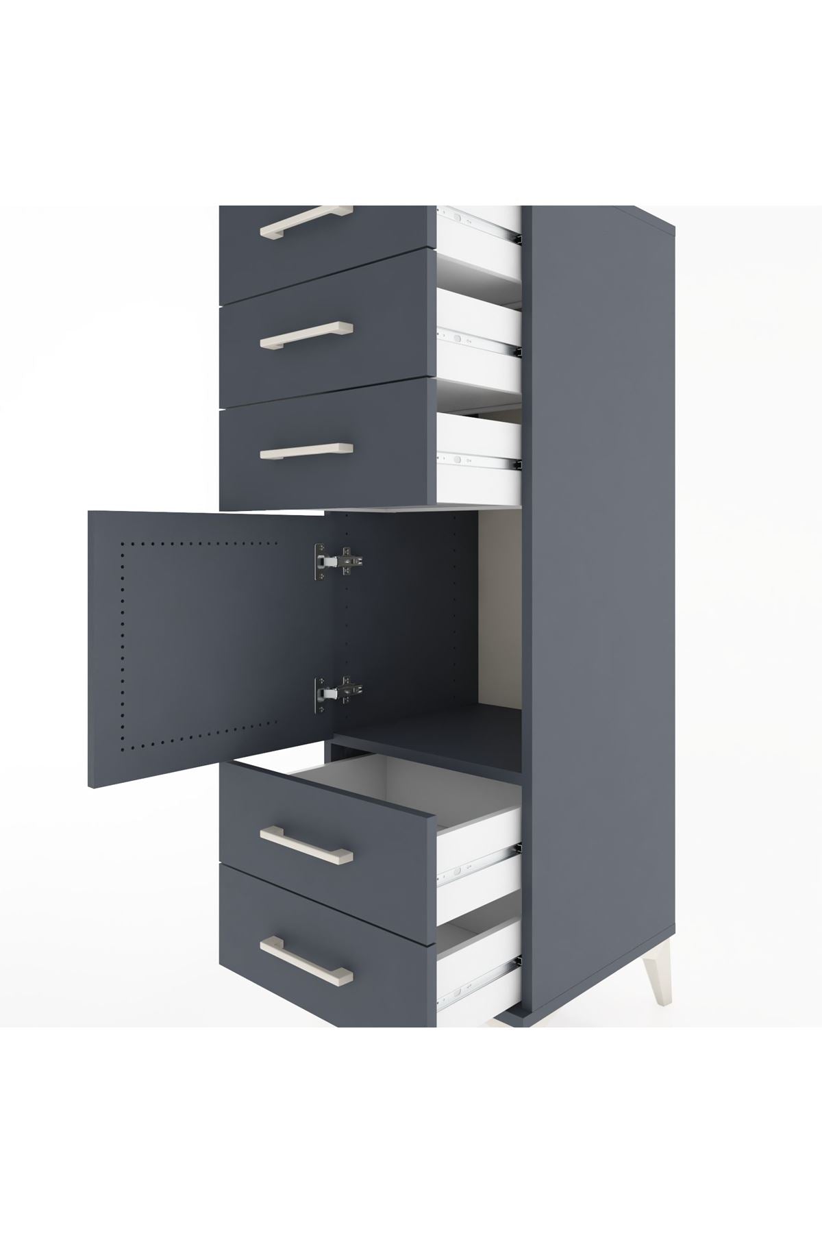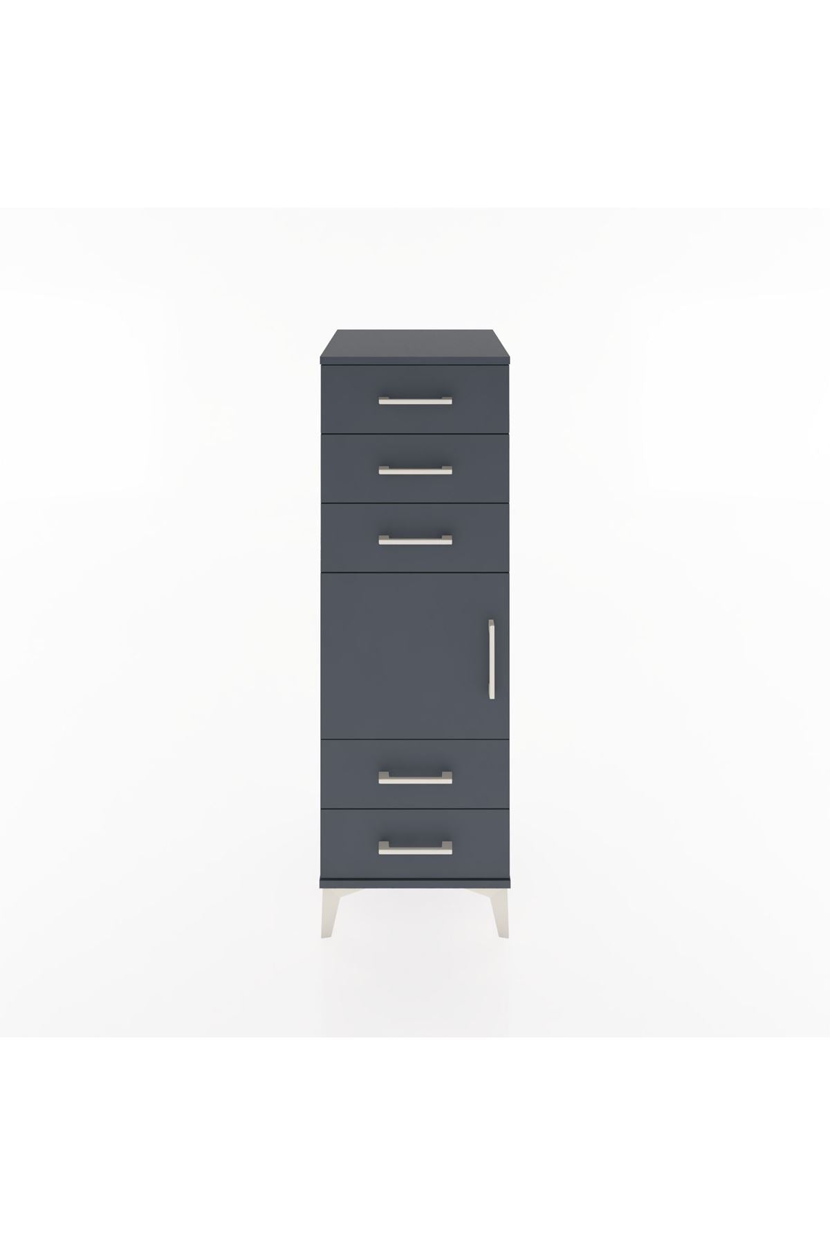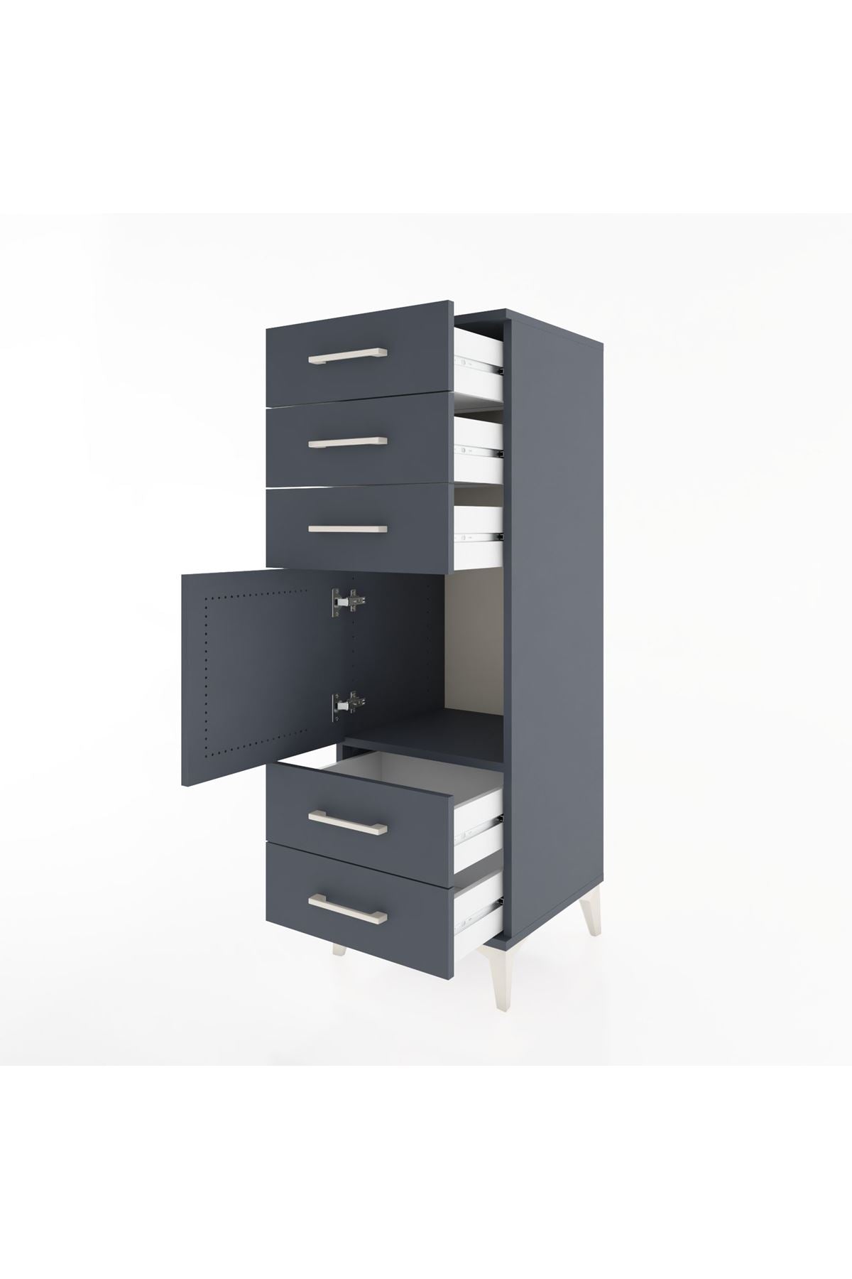 Hyperion Dolap Tek Raflı 5 Çekmeceli Tek Kapaklı 44x44x134 Antrasit-Antrasit