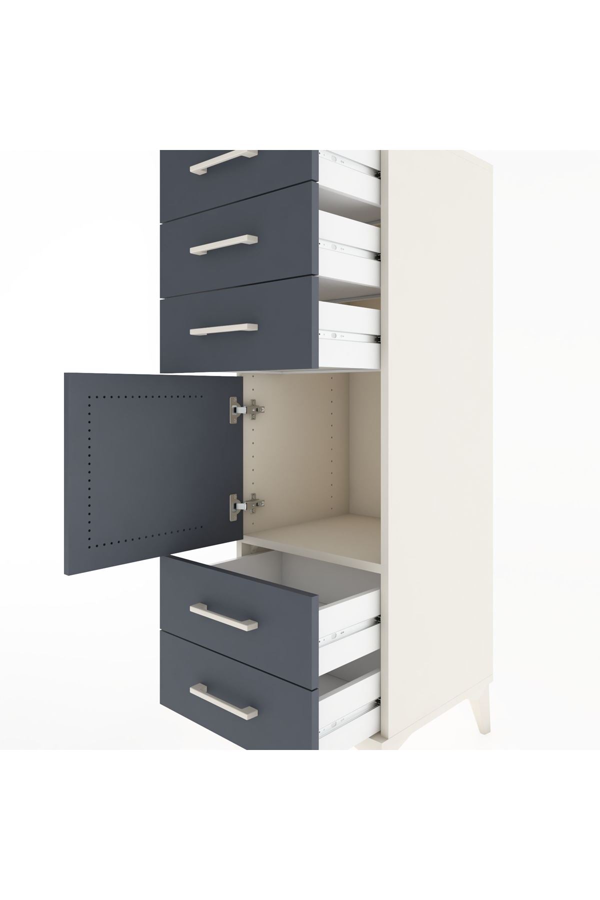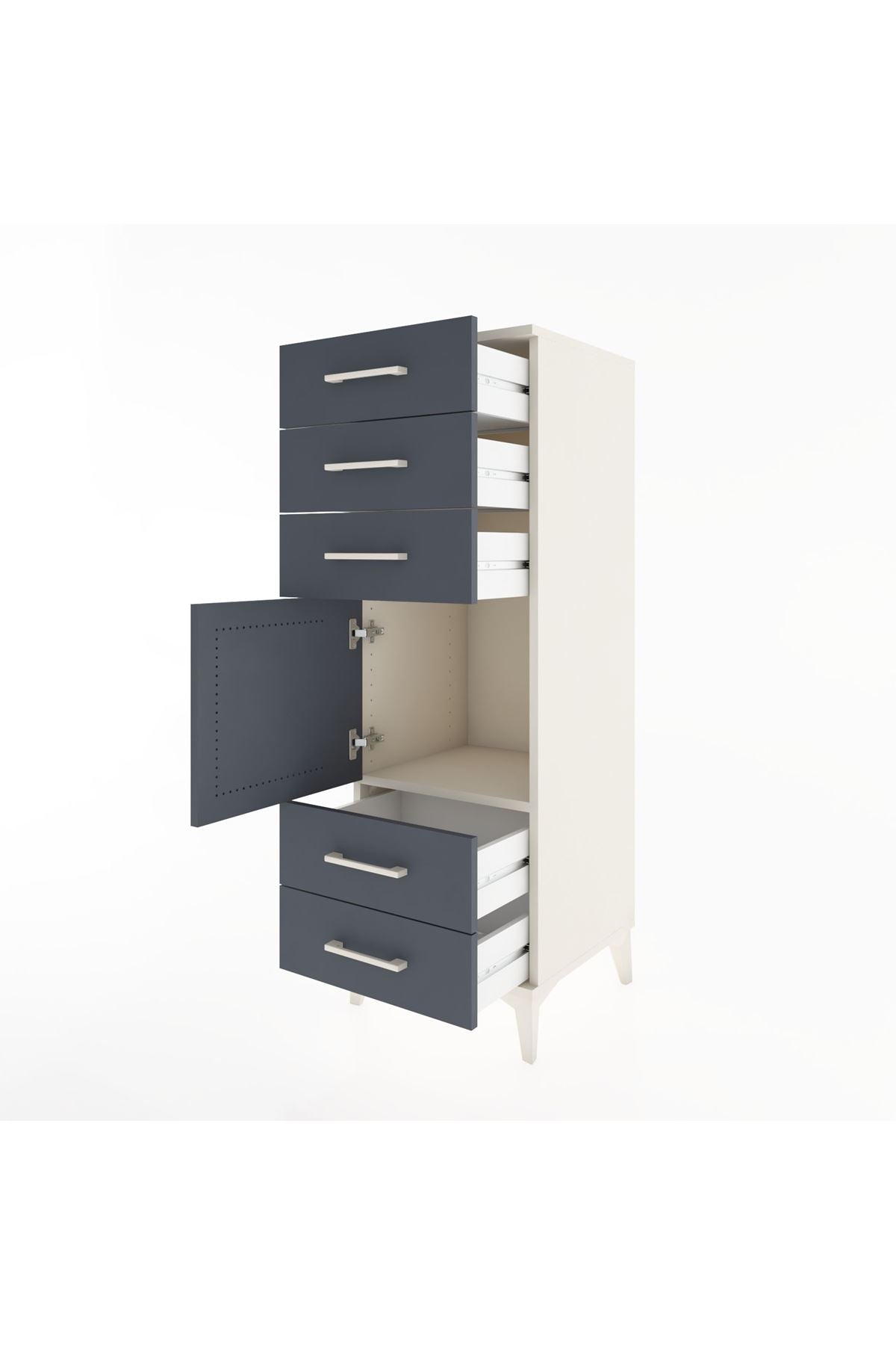 Hyperion Dolap Tek Raflı 5 Çekmeceli Tek Kapaklı 44x44x134 Aytaşı-Antrasit