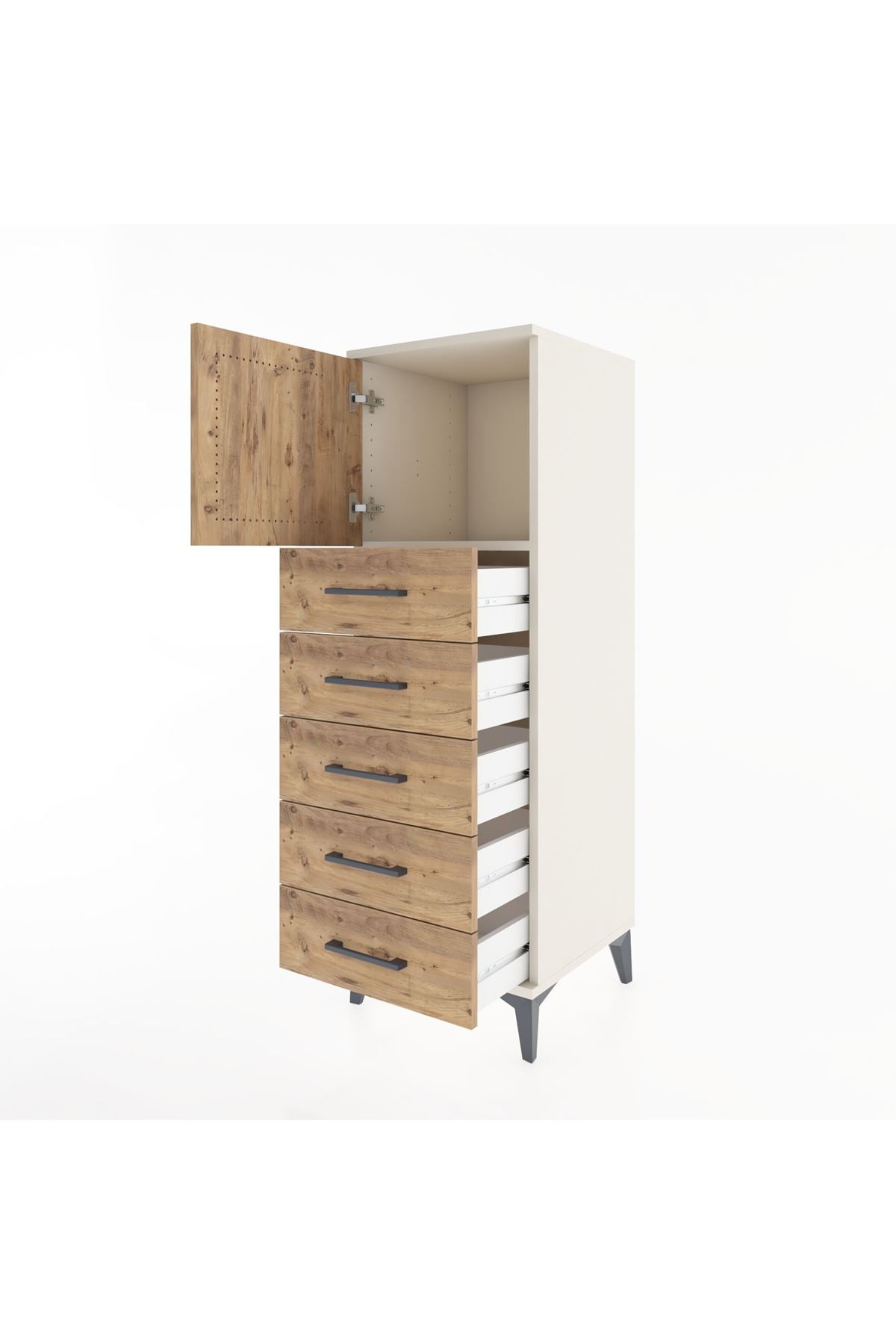 Hyperion Dolap Tek Raflı 5 Çekmeceli Tek Kapaklı 44x44x134 Aytaşı-Çam