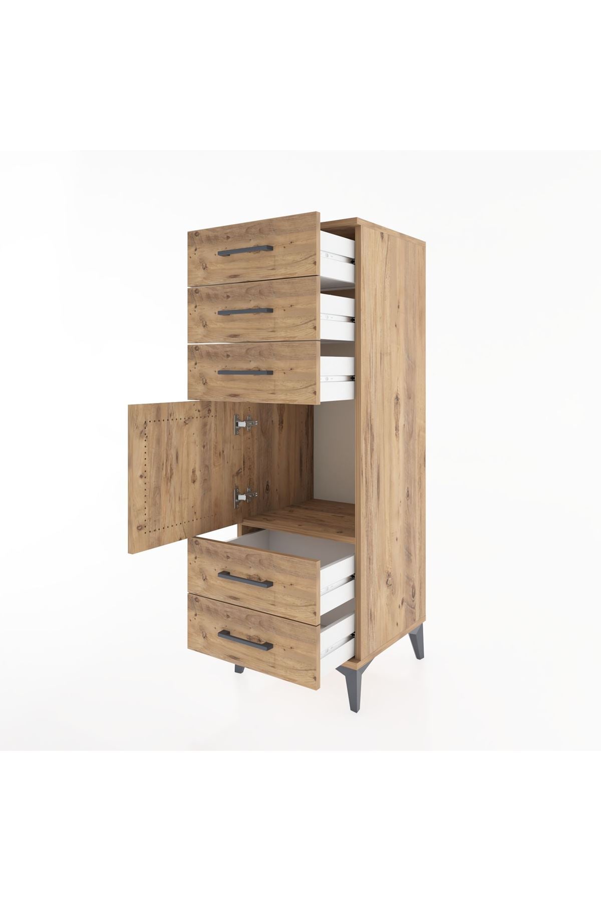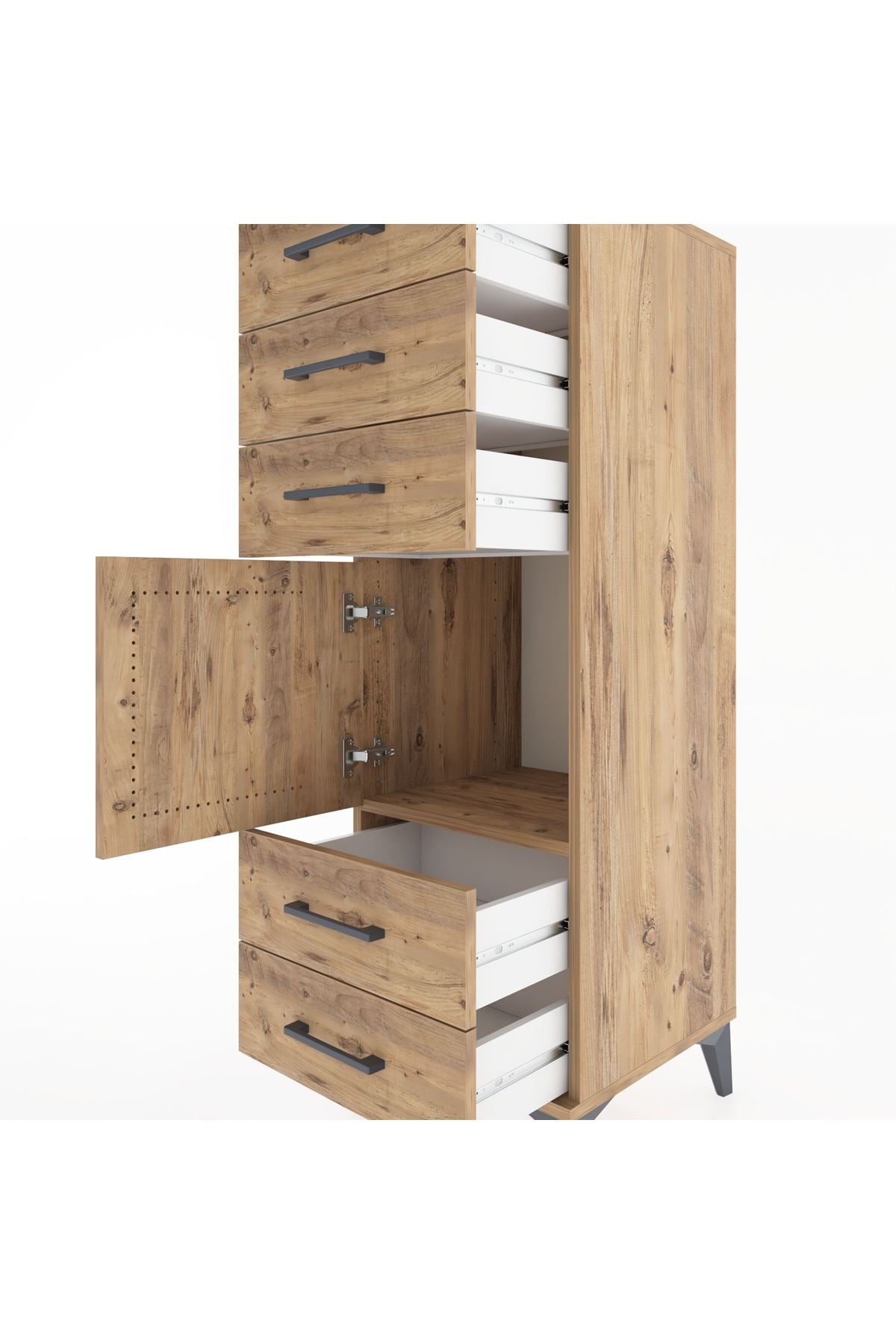 Hyperion Dolap Tek Raflı 5 Çekmeceli Tek Kapaklı 44x44x134 Çam-Çam