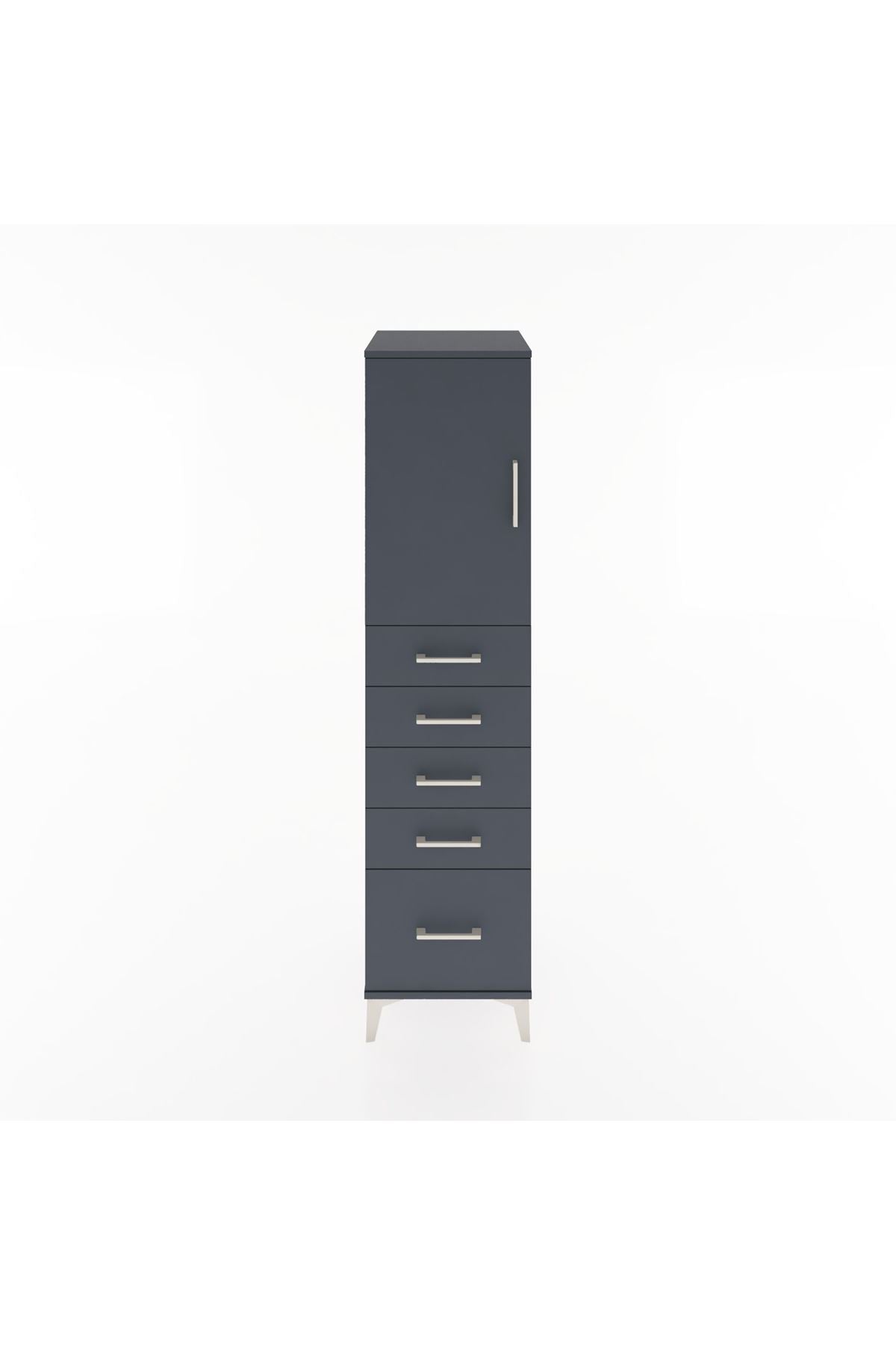 Hyperion Dolap Tek Raflı 5 Çekmeceli Tek Kapaklı 44x44x182 Antrasit-Antrasit