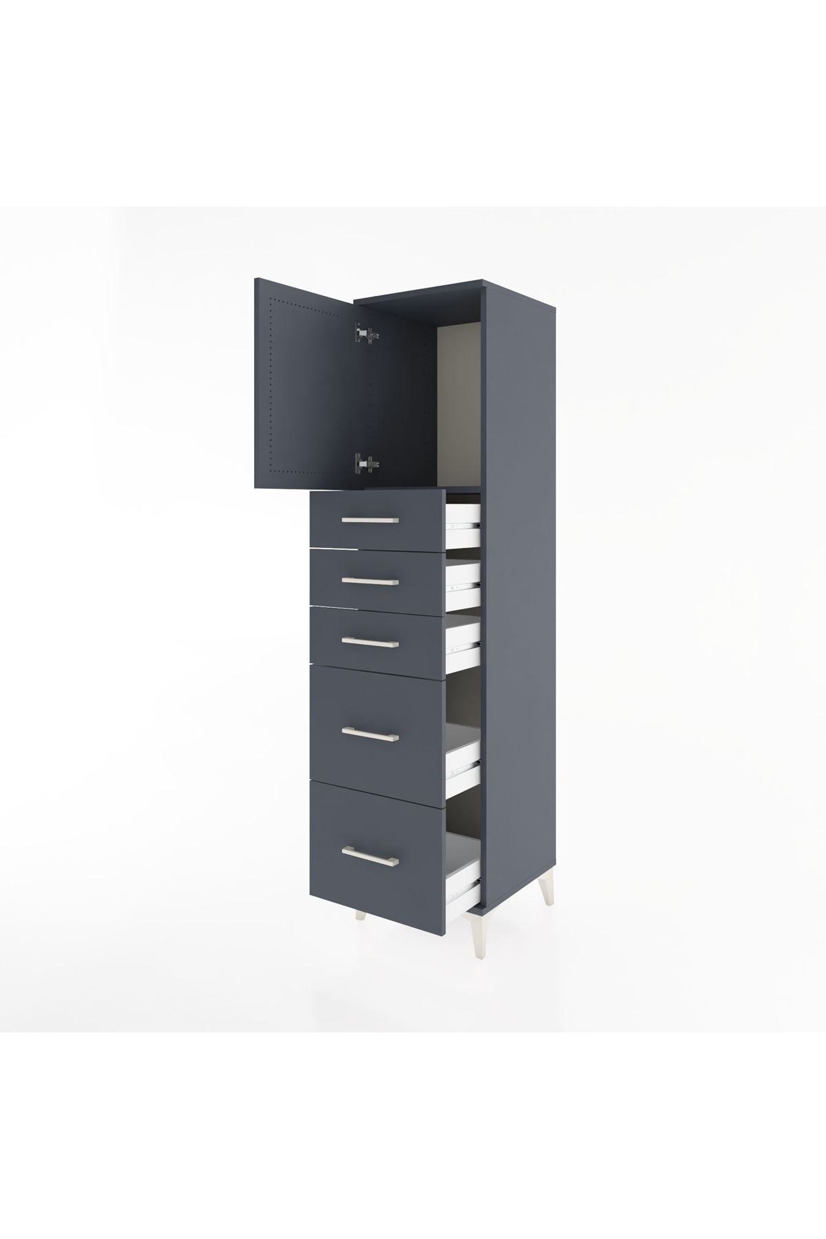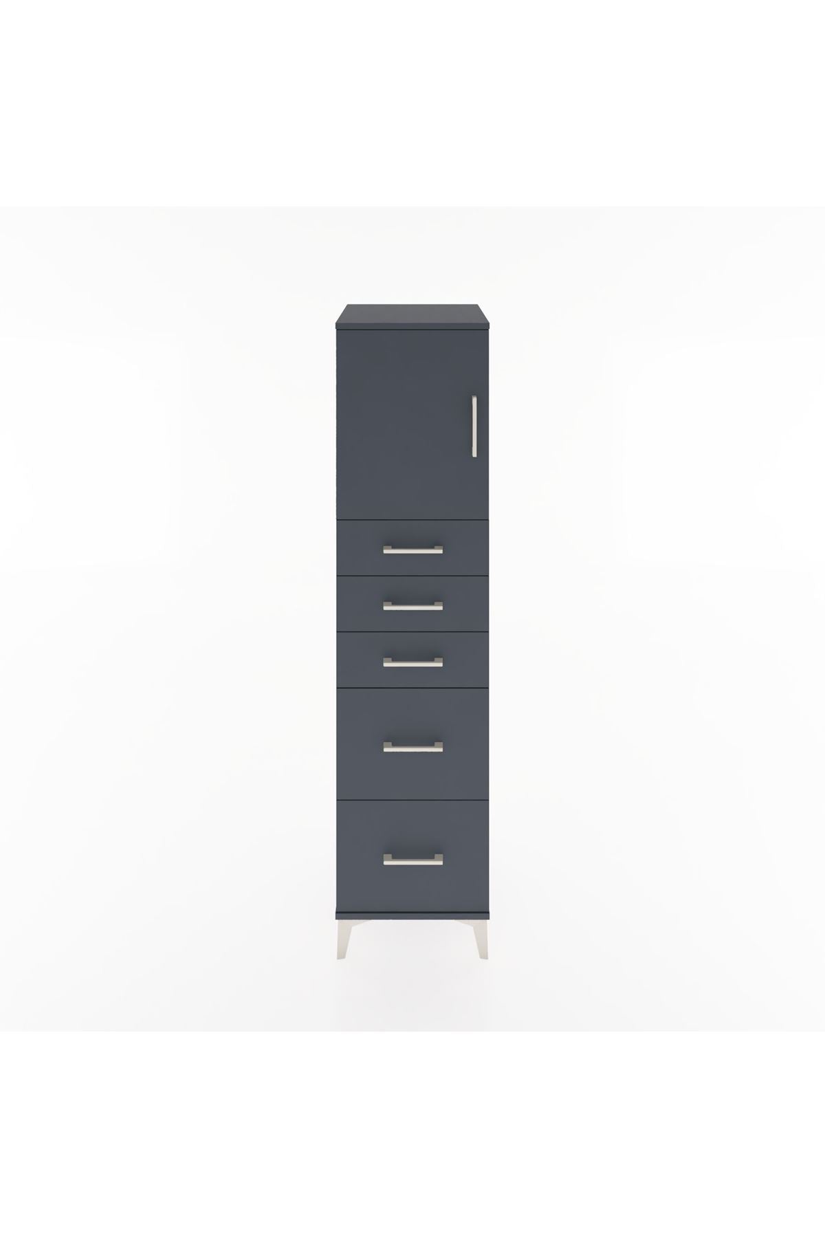 Hyperion Dolap Tek Raflı 5 Çekmeceli Tek Kapaklı 44x44x182 Antrasit-Antrasit