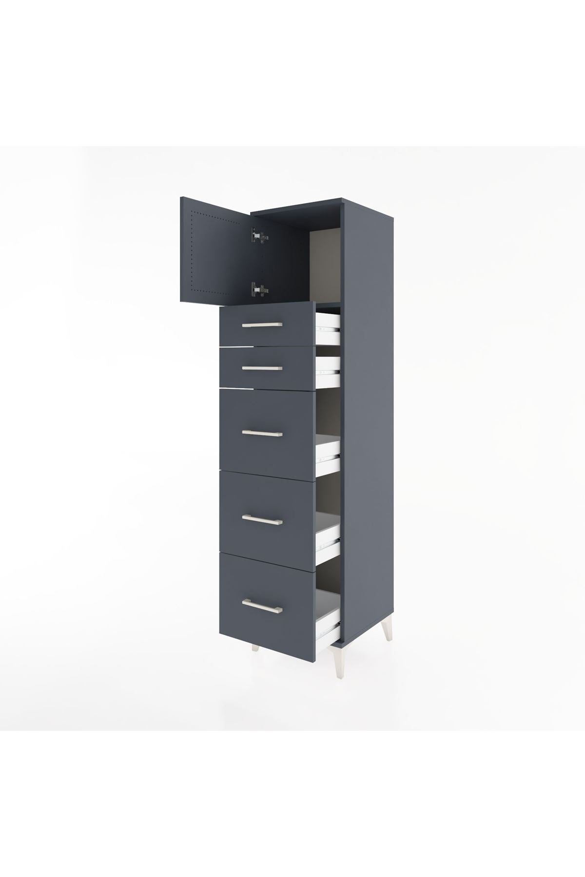 Hyperion Dolap Tek Raflı 5 Çekmeceli Tek Kapaklı 44x44x182 Antrasit-Antrasit