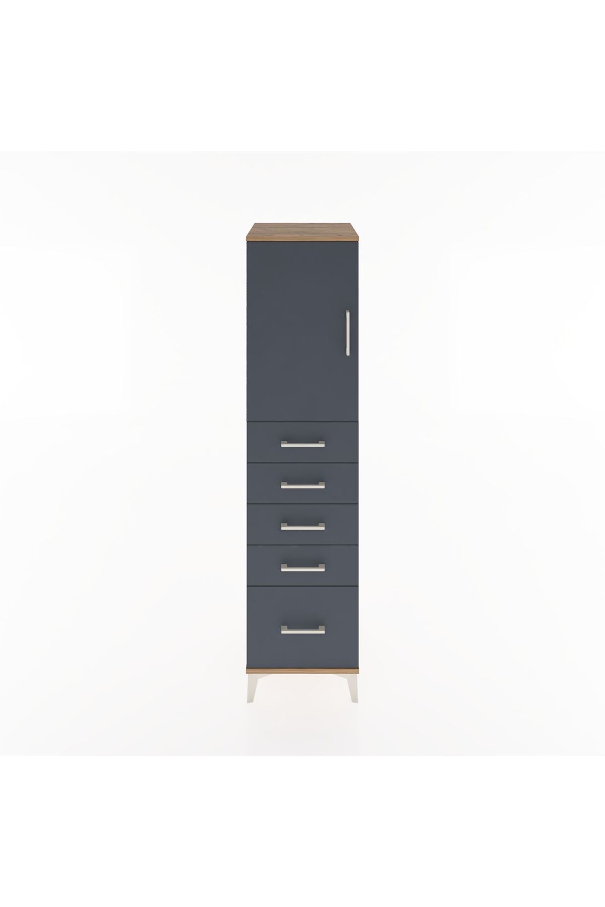 Hyperion Dolap Tek Raflı 5 Çekmeceli Tek Kapaklı 44x44x182 Çam-Antrasit