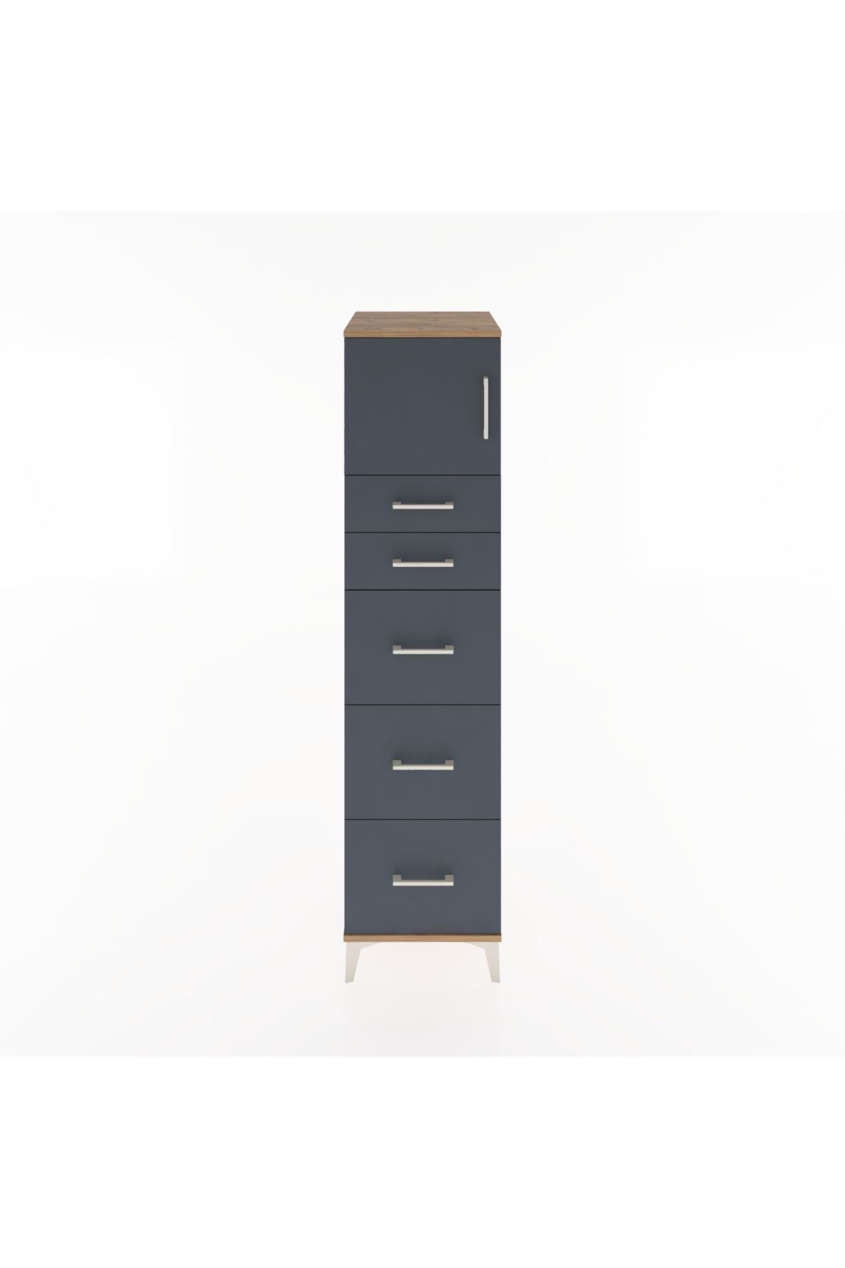 Hyperion Dolap Tek Raflı 5 Çekmeceli Tek Kapaklı 44x44x182 Çam-Antrasit