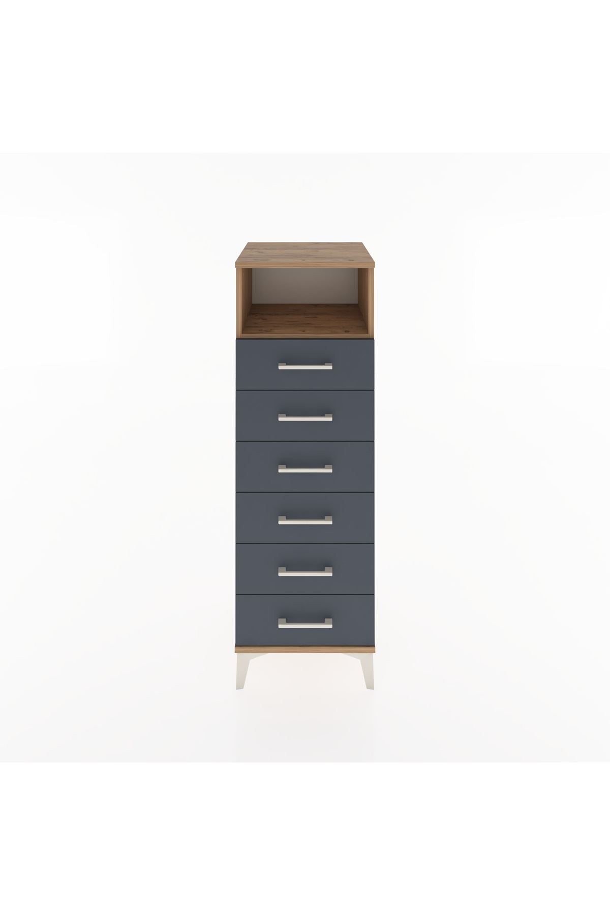 Hyperion Dolap Tek Raflı 6 Çekmeceli 44x44x134 Çam-Antrasit