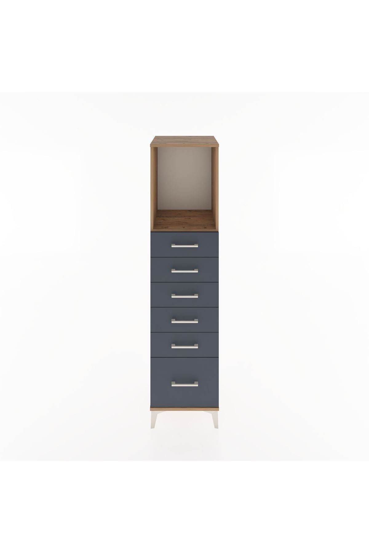 Hyperion Dolap Tek Raflı 6 Çekmeceli 44x44x182 Çam-Antrasit