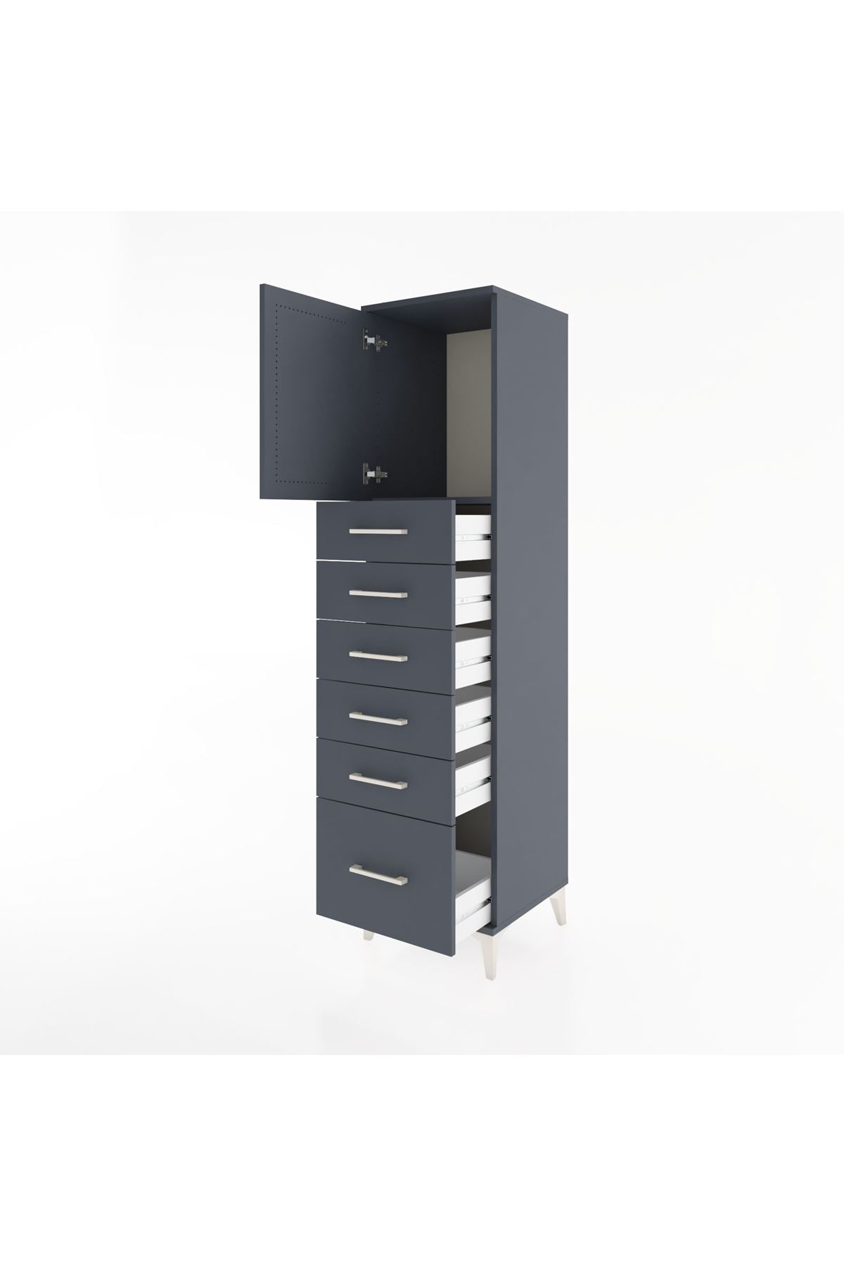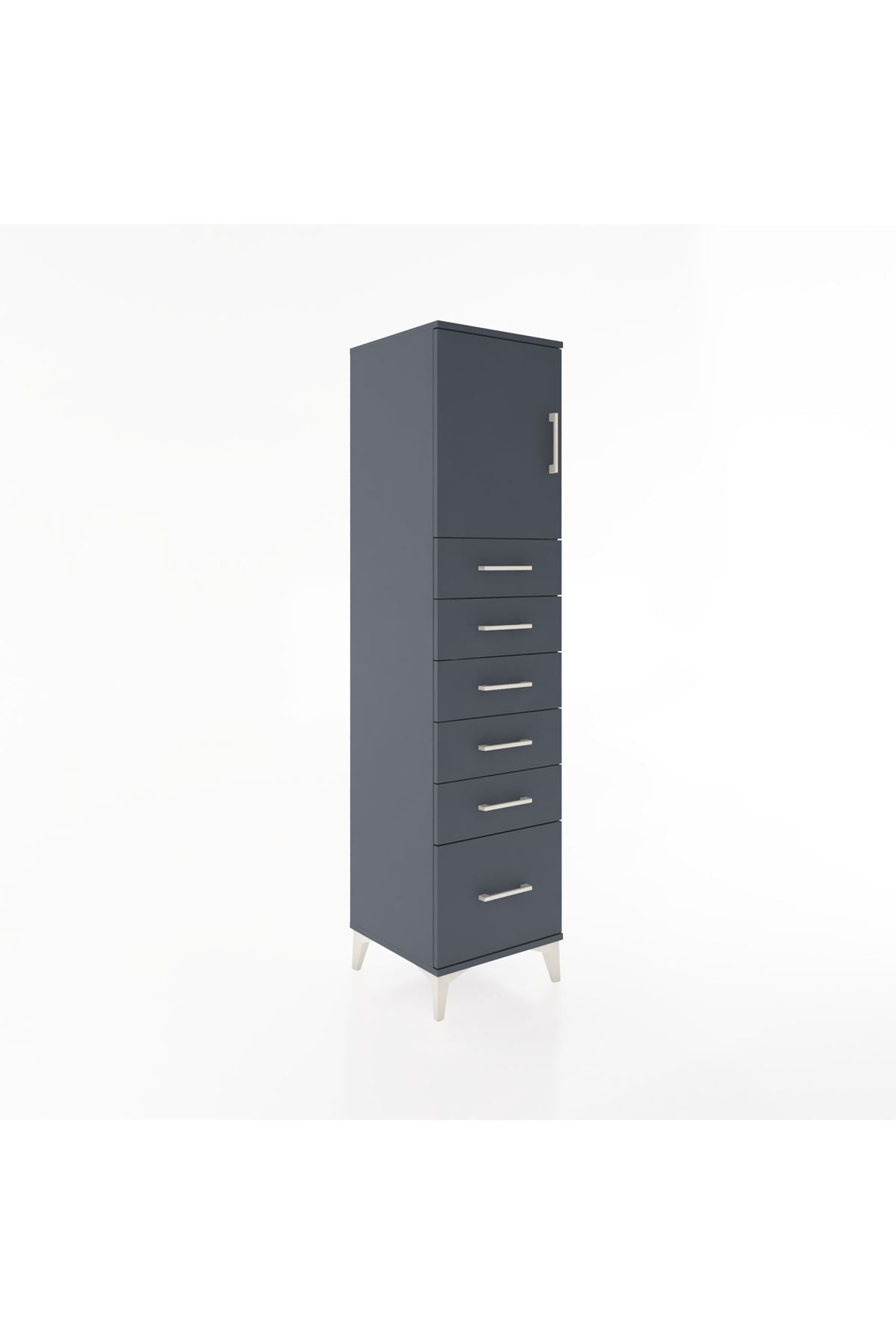 Hyperion Dolap Tek Raflı 6 Çekmeceli Tek Kapaklı 44x44x182 Antrasit-Antrasit