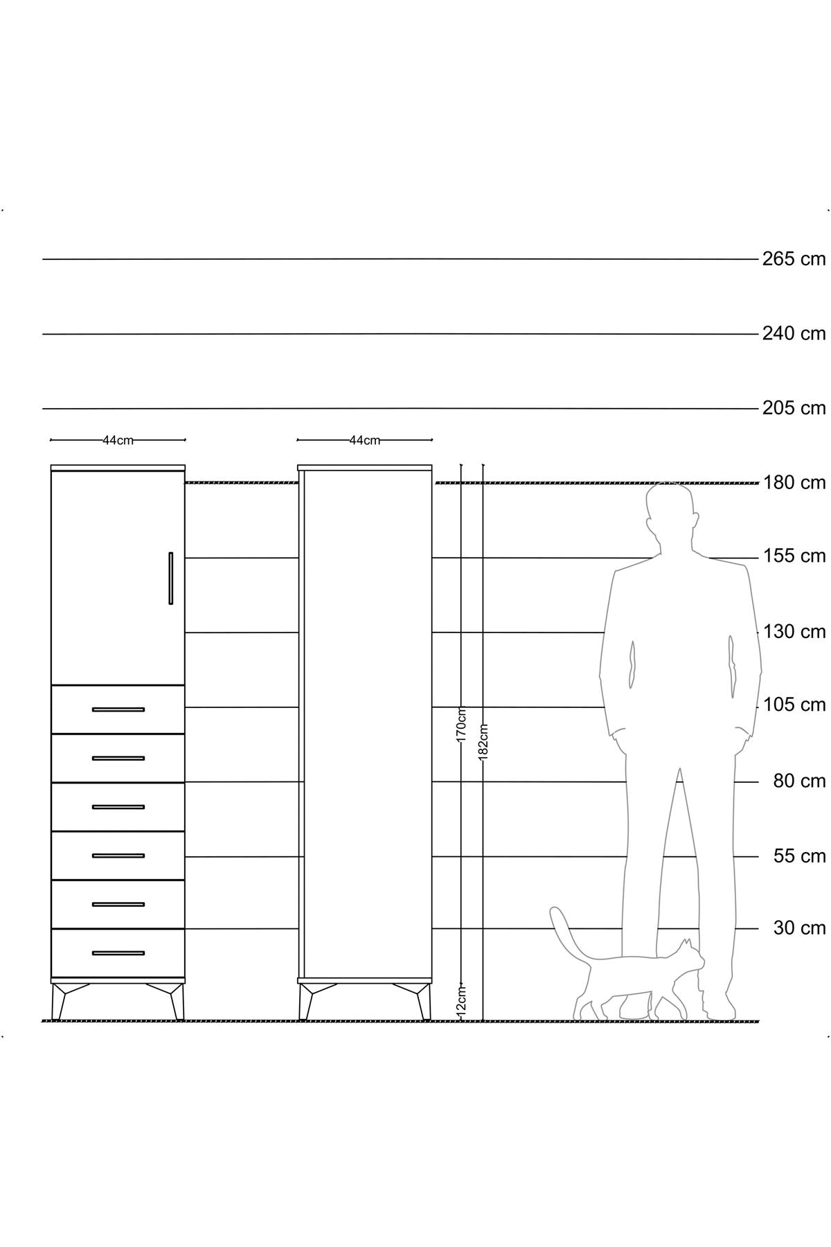 Hyperion Dolap Tek Raflı 6 Çekmeceli Tek Kapaklı 44x44x182 Antrasit-Çam
