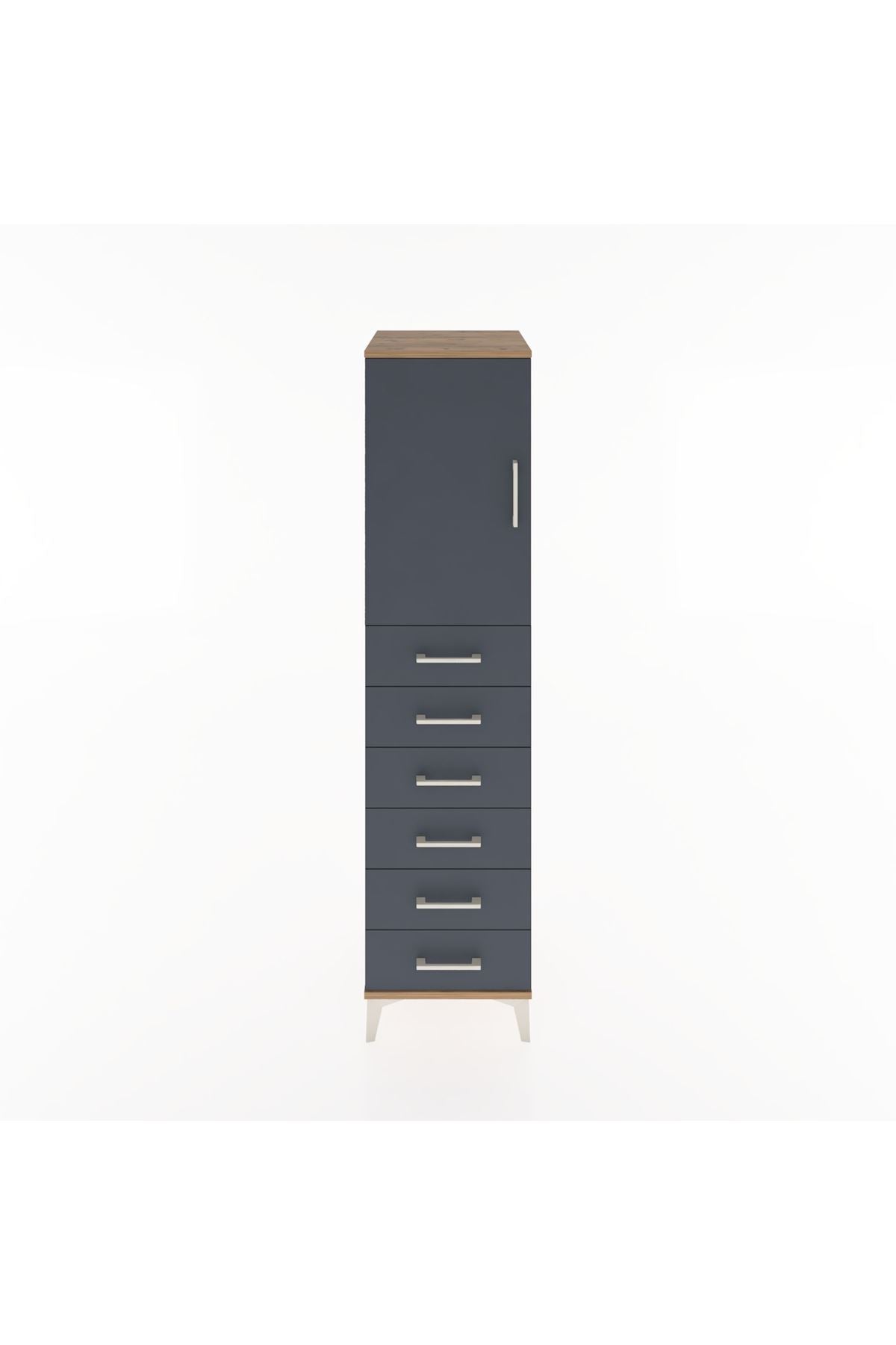 Hyperion Dolap Tek Raflı 6 Çekmeceli Tek Kapaklı 44x44x182 Çam-Antrasit