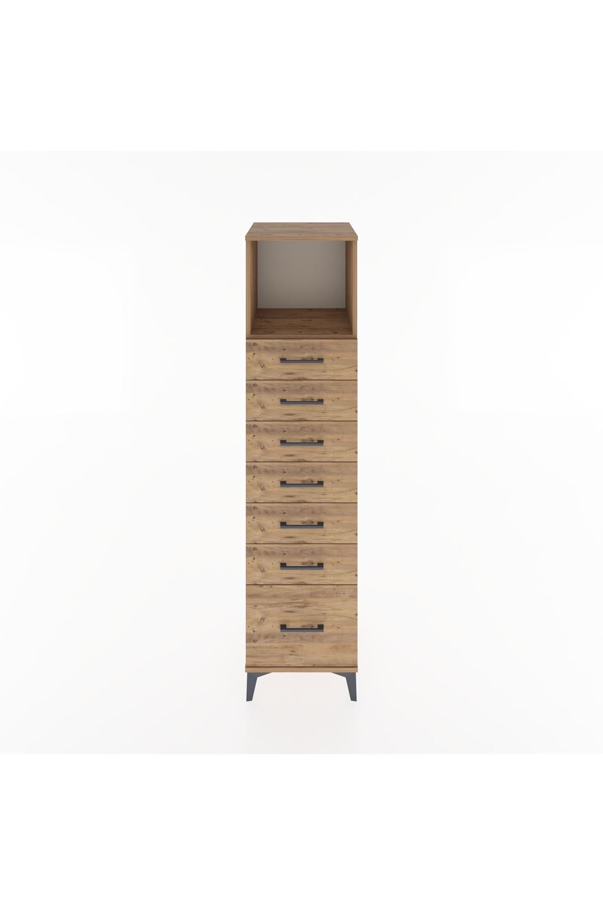 Hyperion Dolap Tek Raflı 7 Çekmeceli 44x44x182 Çam-Çam