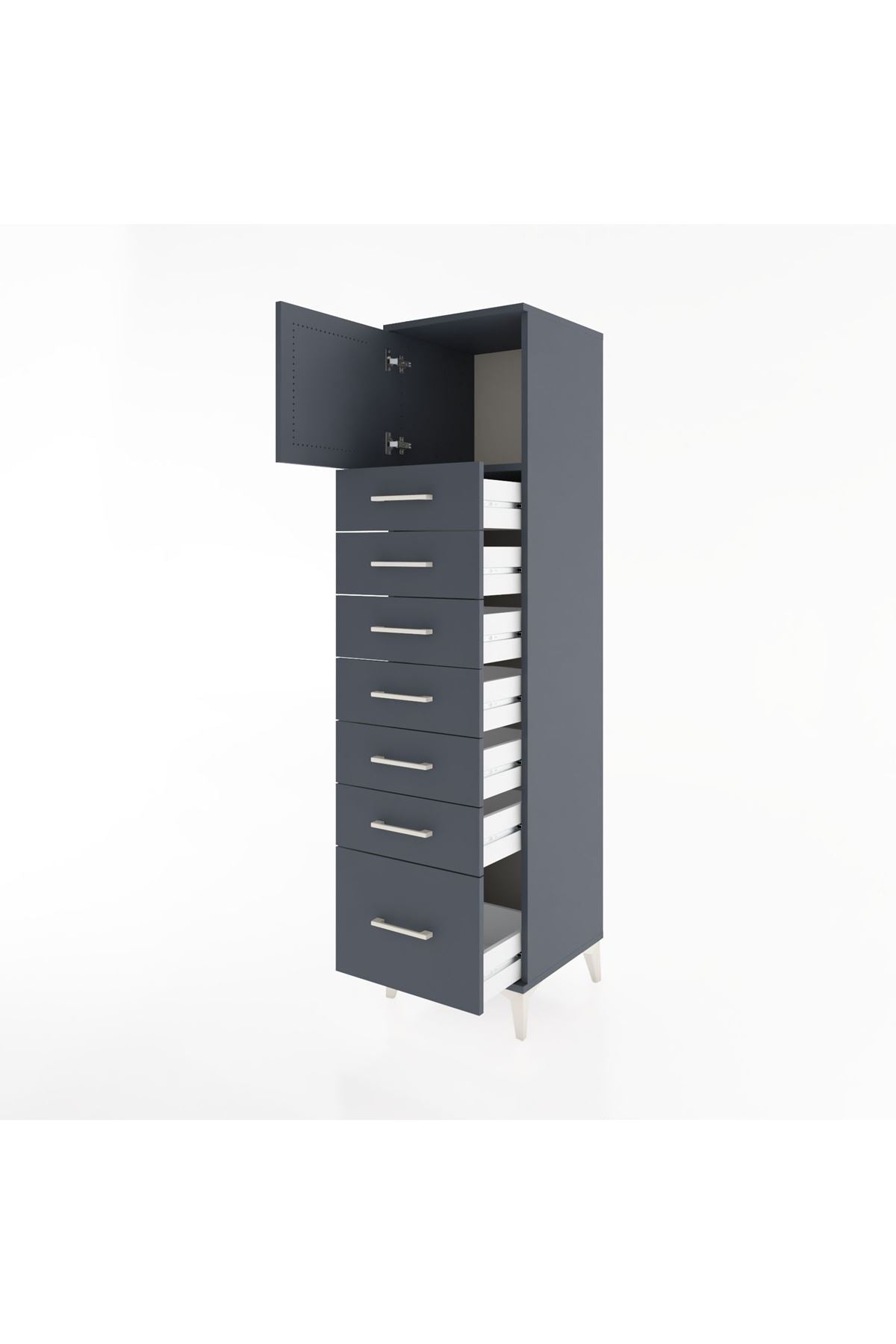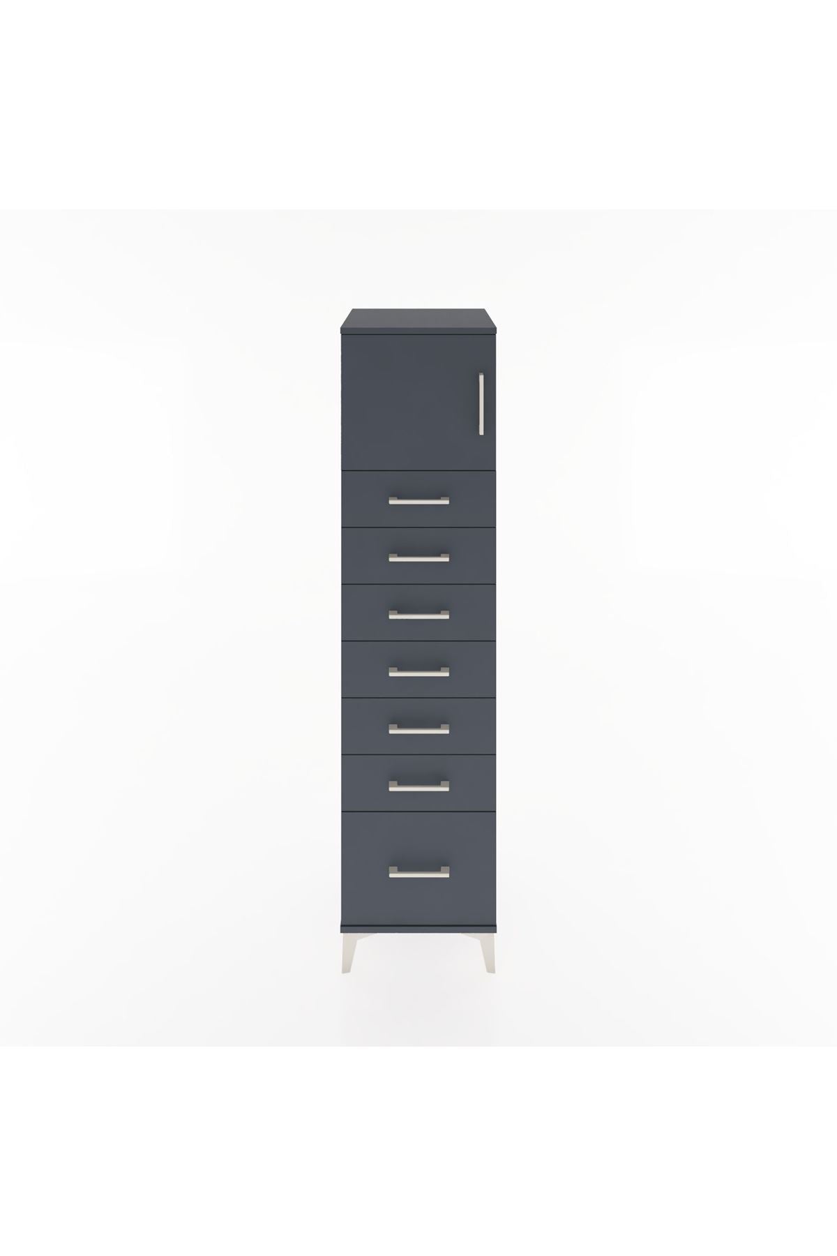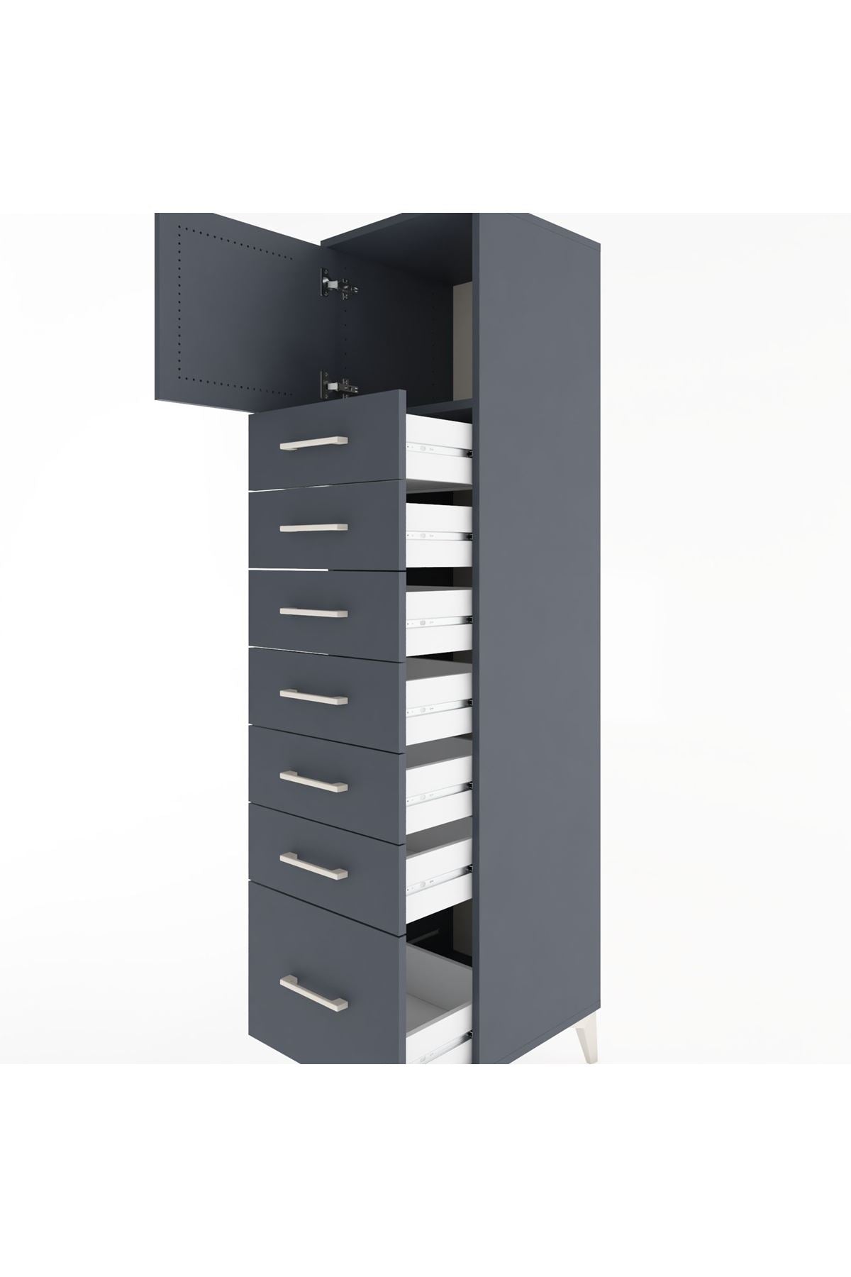 Hyperion Dolap Tek Raflı 7 Çekmeceli Tek Kapaklı 44x44x182 Antrasit-Antrasit