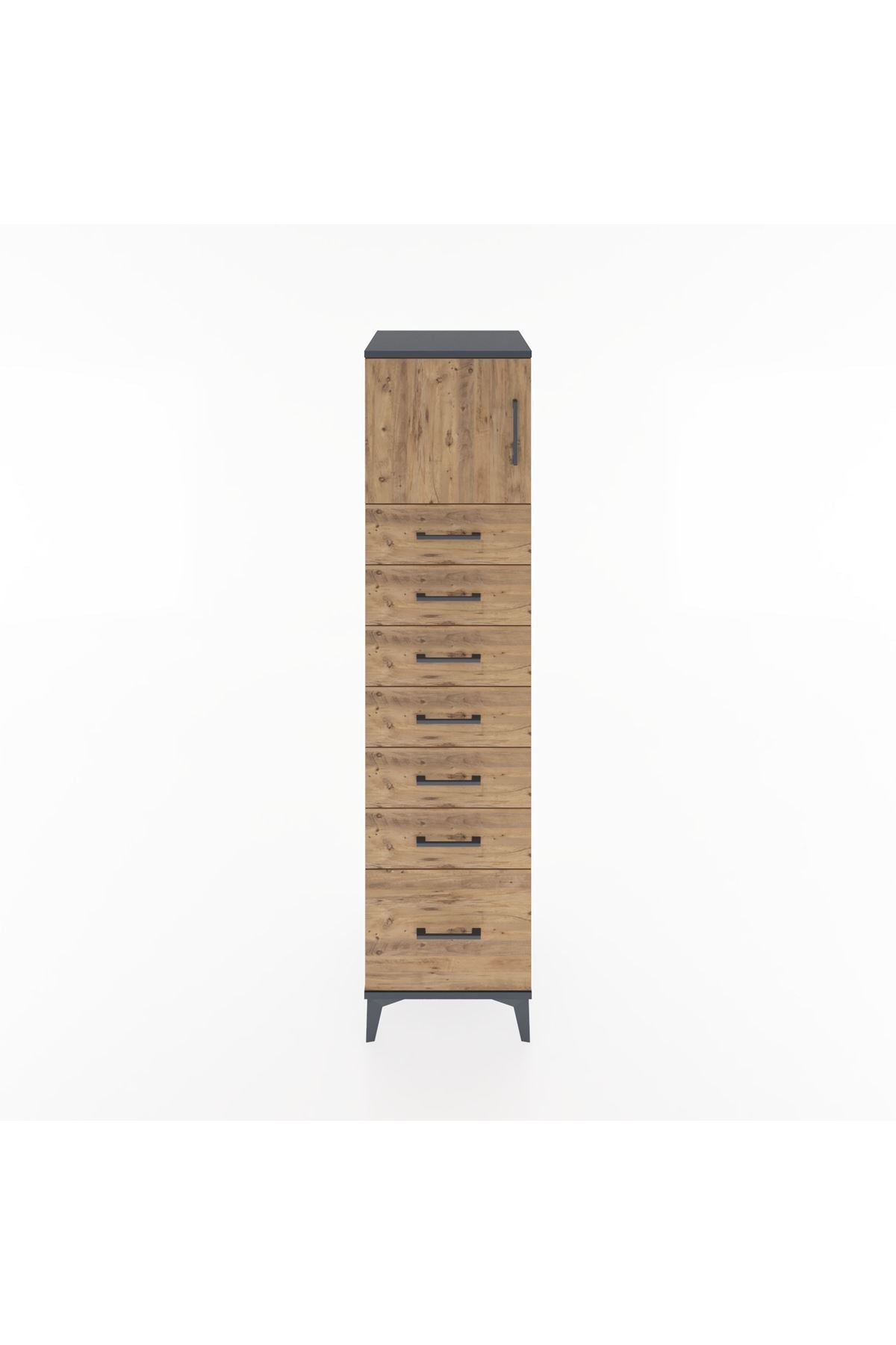 Hyperion Dolap Tek Raflı 7 Çekmeceli Tek Kapaklı 44x44x182 Antrasit-Çam