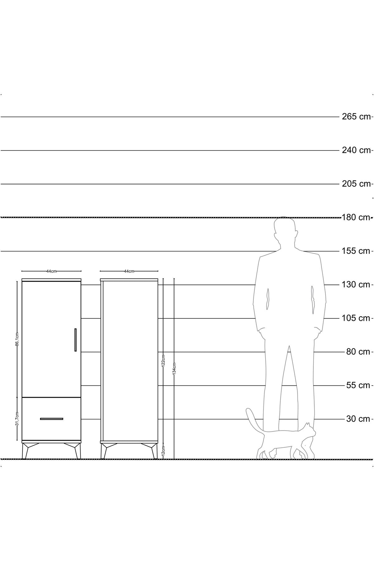 Hyperion Dolap Tek Raflı Tek Çekmeceli Tek Askılı 44x44x134 Antrasit-Çam