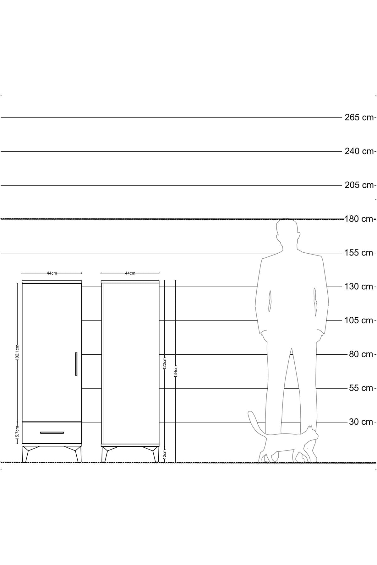 Hyperion Dolap Tek Raflı Tek Çekmeceli Tek Askılı 44x44x134