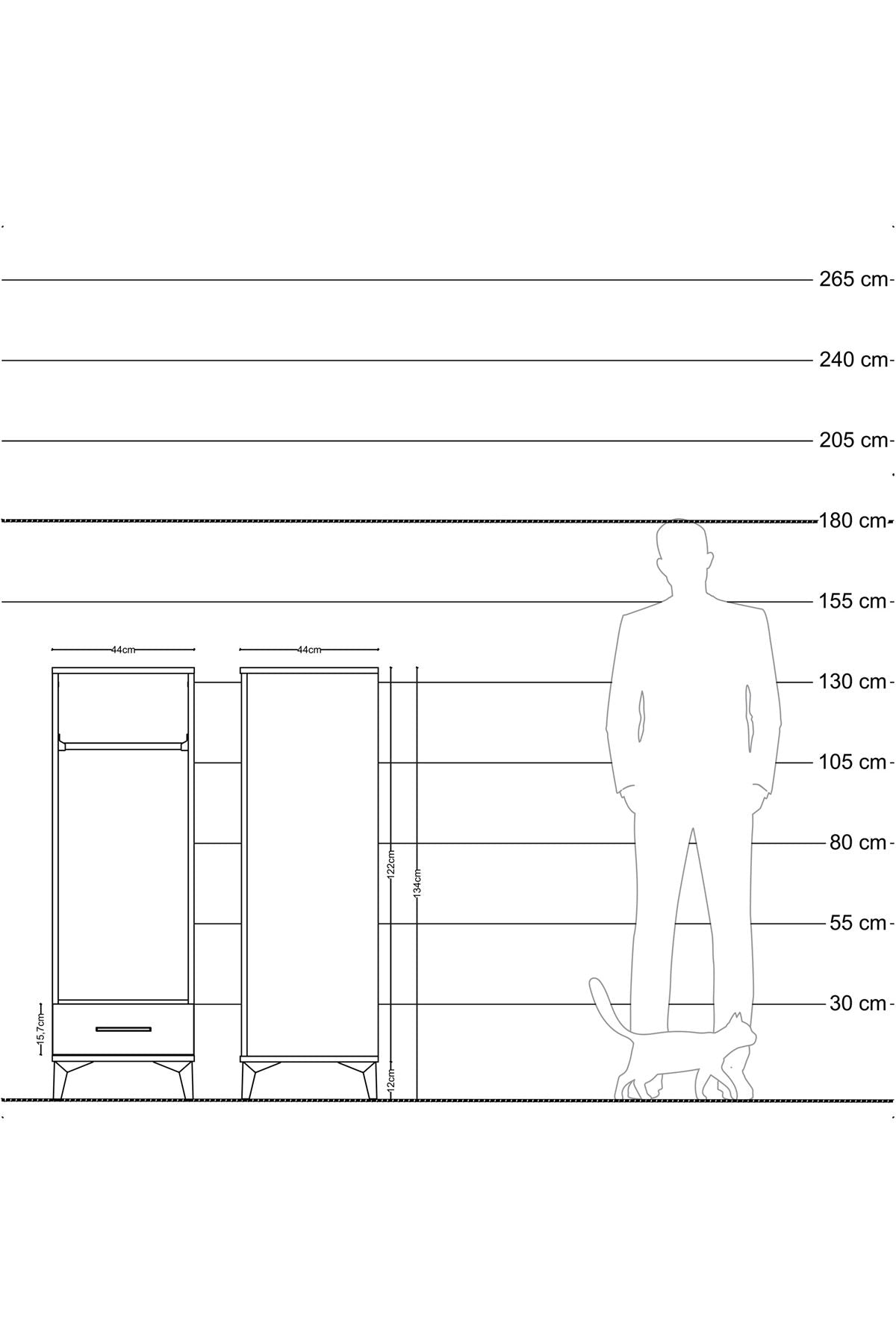 Hyperion Dolap Tek Raflı Tek Çekmeceli Tek Askılı 44x44x134