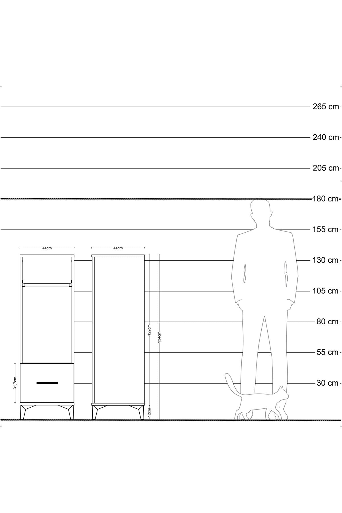 Hyperion Dolap Tek Raflı Tek Çekmeceli Tek Askılı 44x44x134 Çam-Çam
