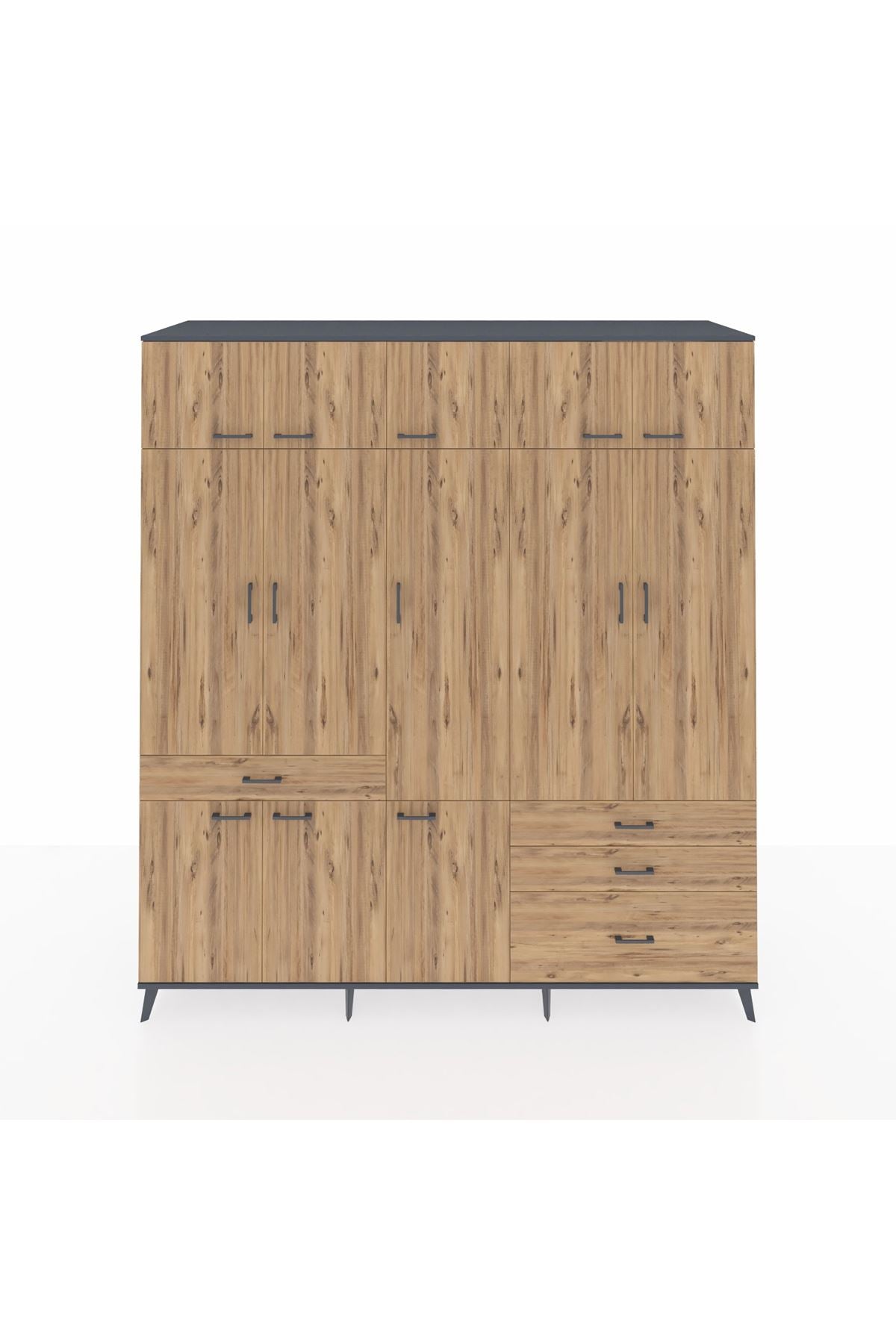 Kronos Dolap 8 Raflı 4 Çekmeceli 3 Askılı 220x59x243 Antrasit-Çam/Çam
