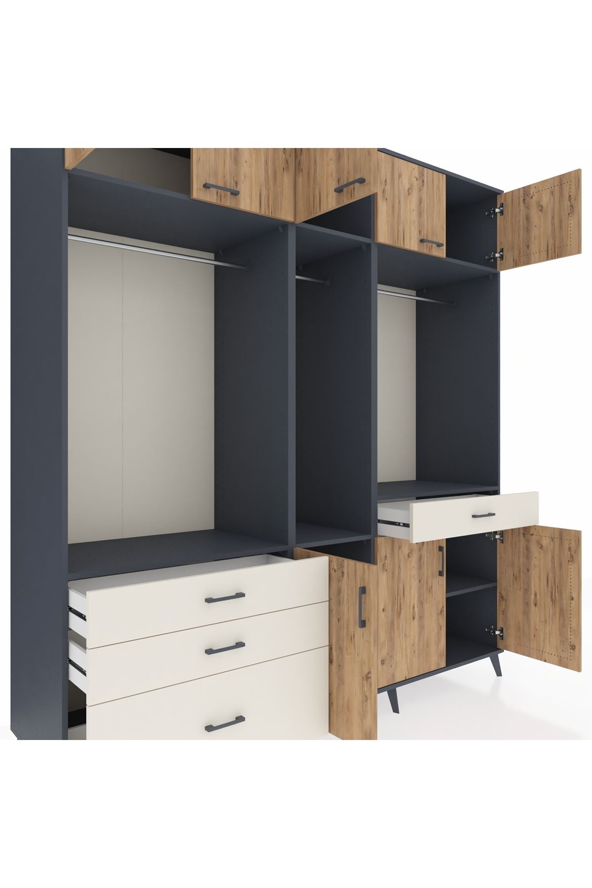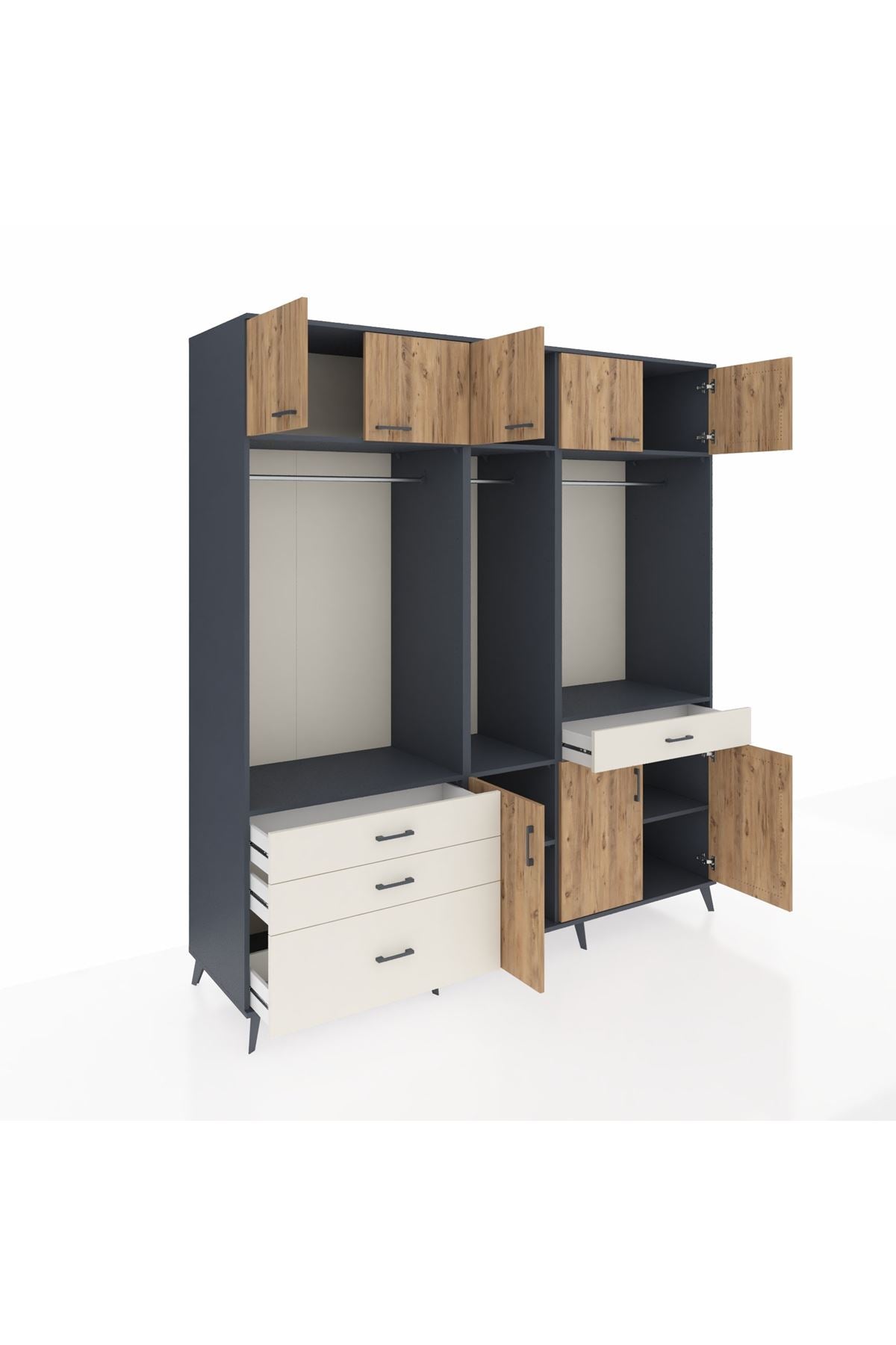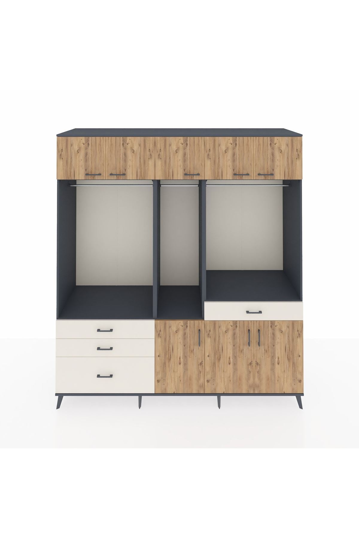 Kronos Dolap 8 Raflı 4 Çekmeceli 3 Askılı 220x59x243 Antrasit-Çam/Aytaşı