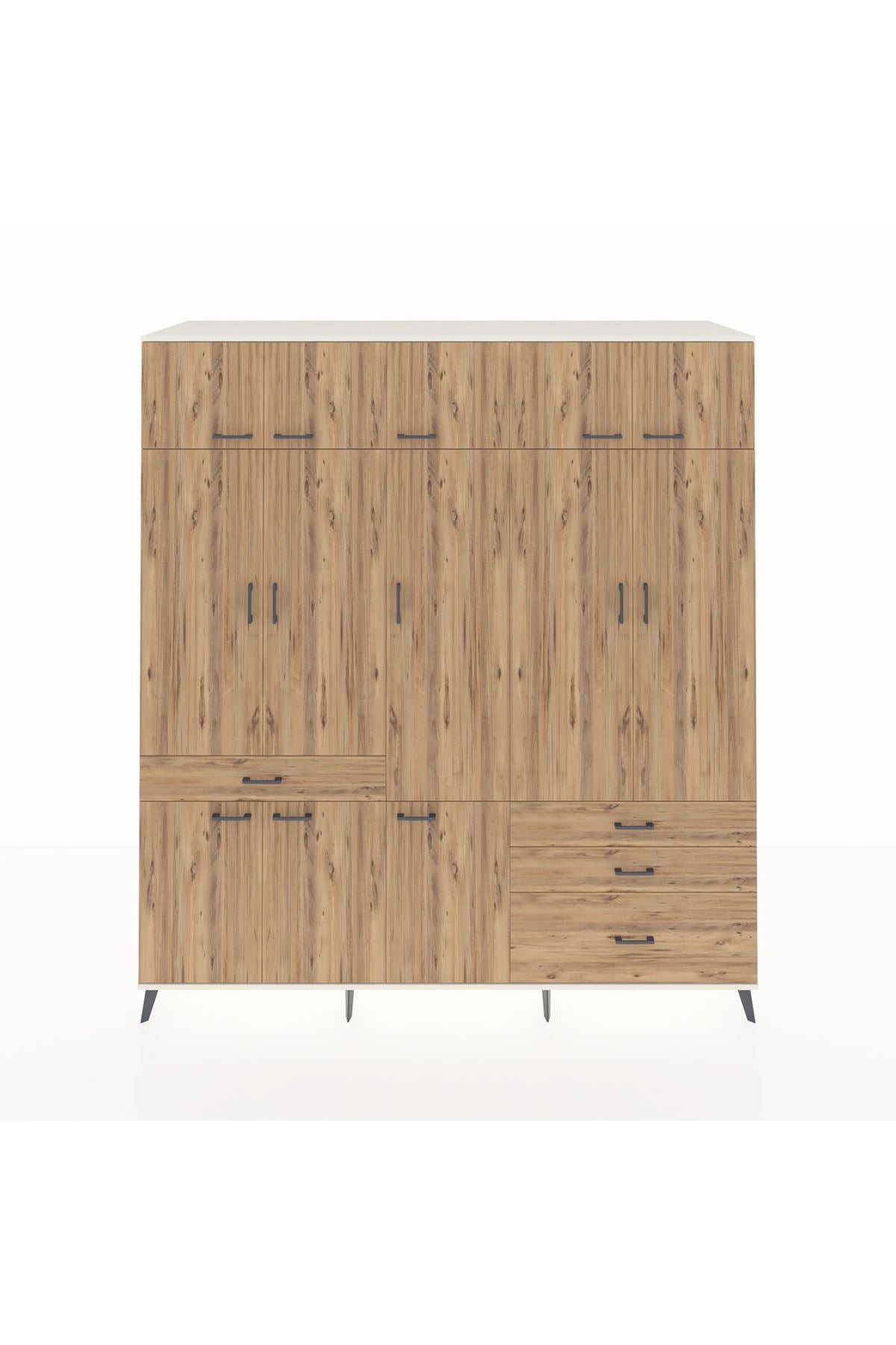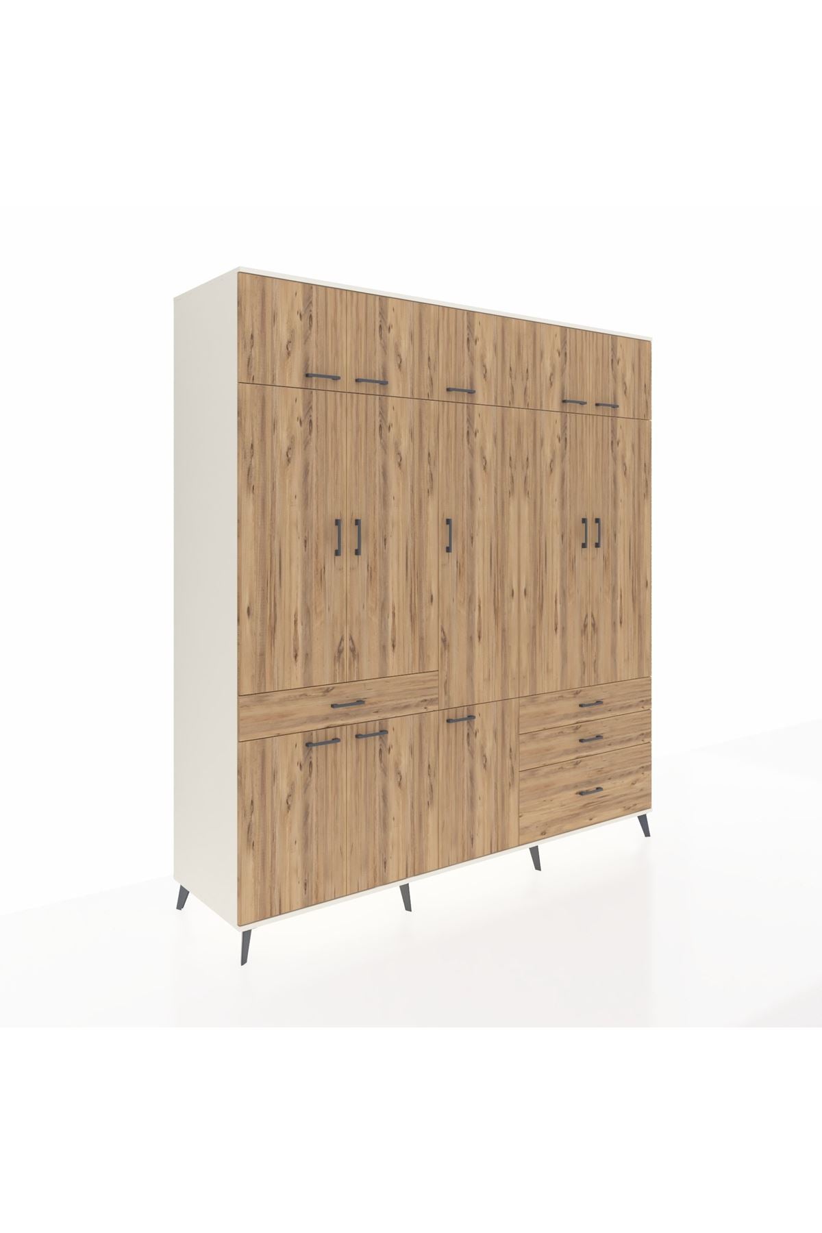 Kronos Dolap 8 Raflı 4 Çekmeceli 3 Askılı 220x59x243 Aytaşı-Çam/Çam