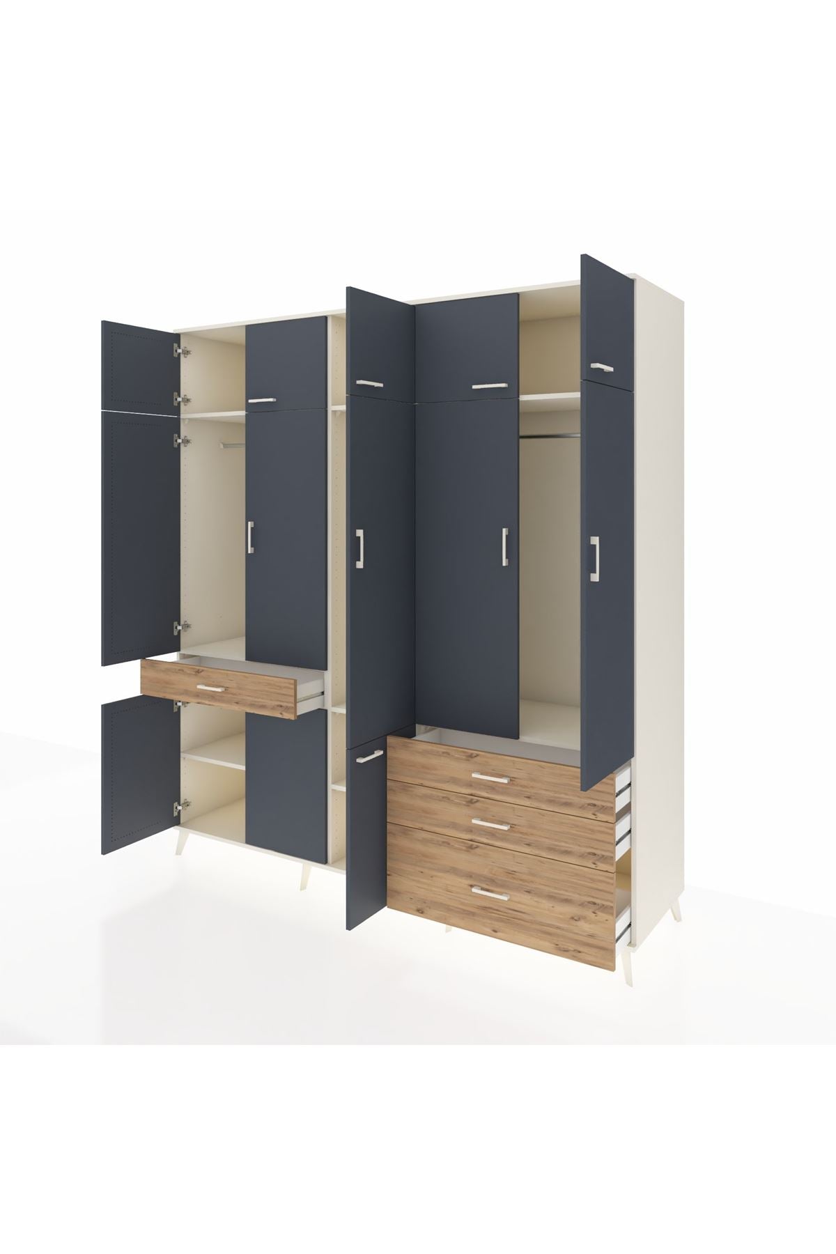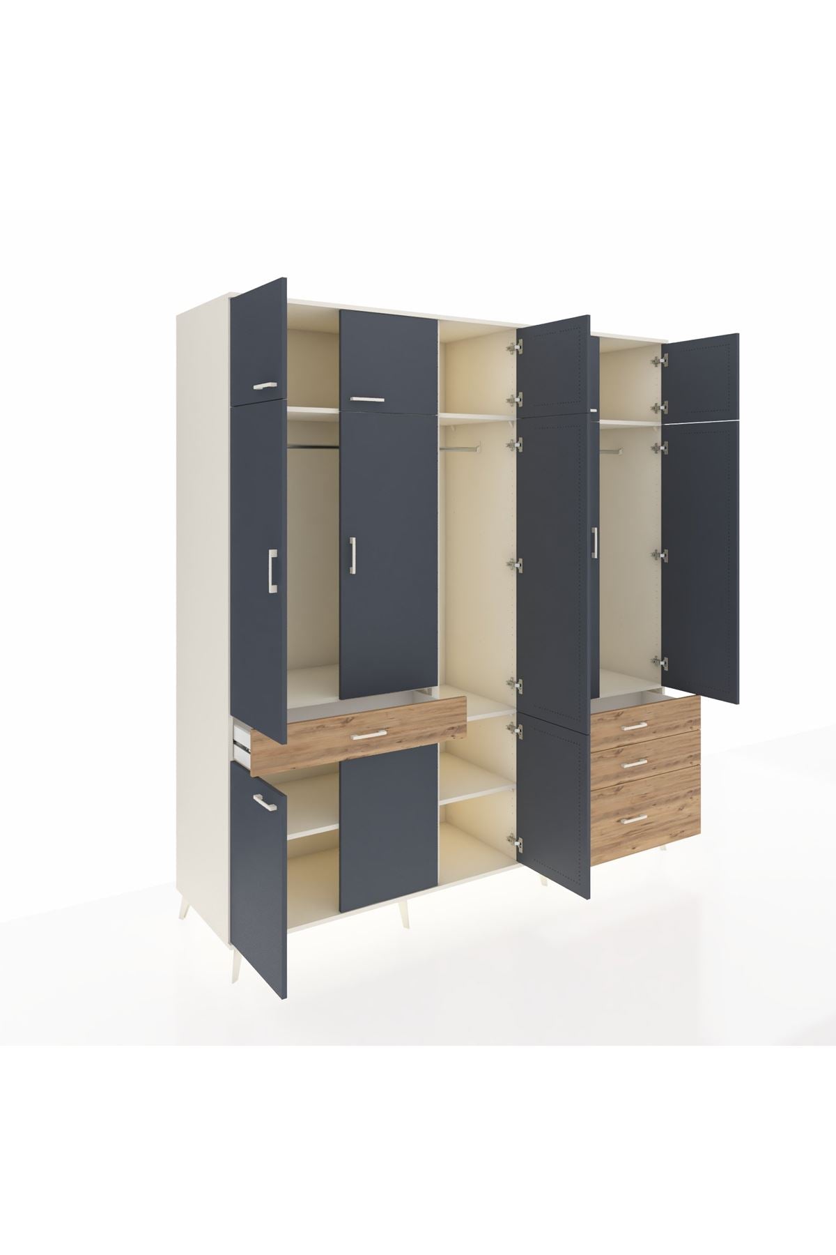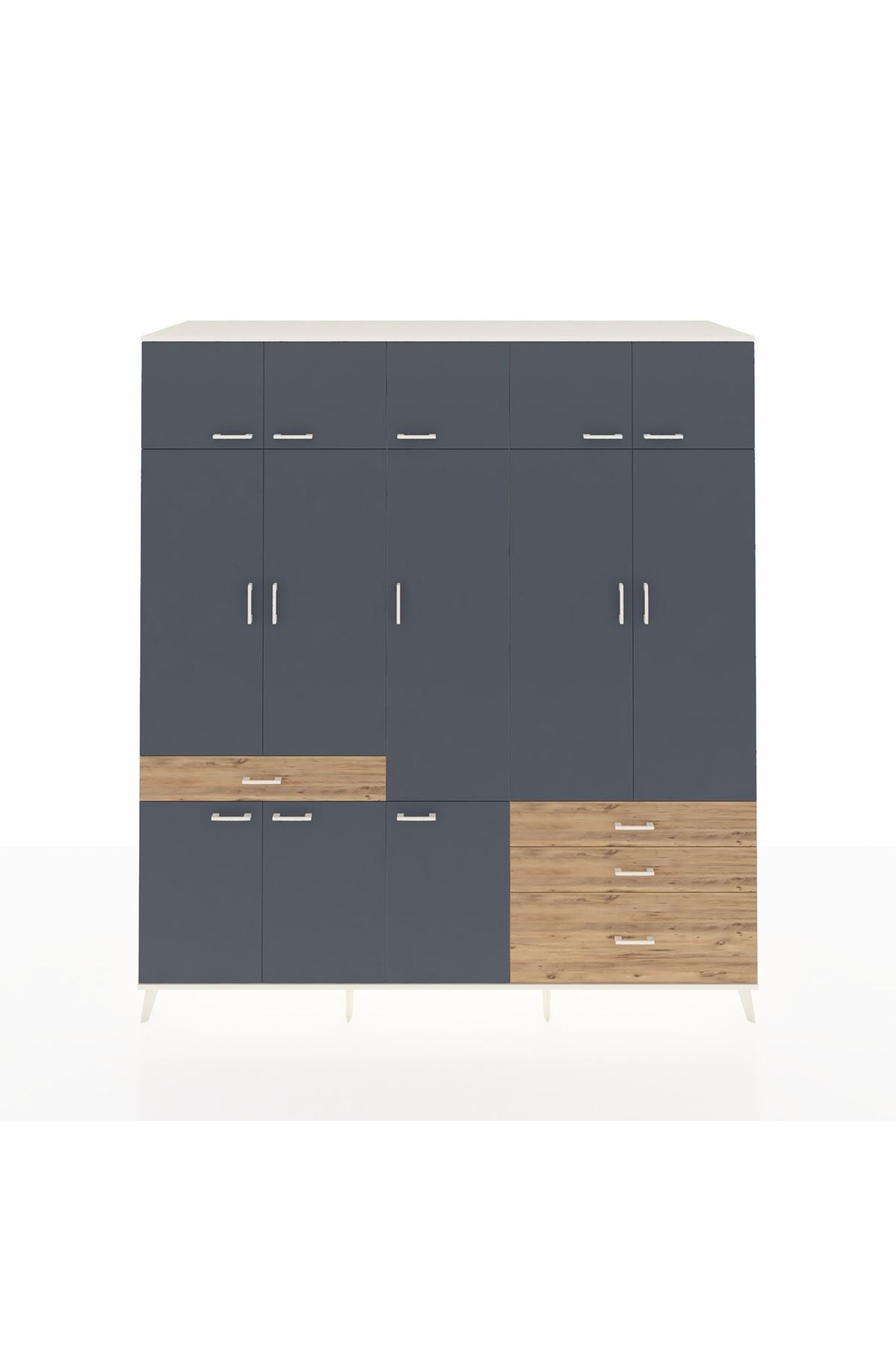 Kronos Dolap 8 Raflı 4 Çekmeceli 3 Askılı 220x59x243 Aytaşı-Antrasit/Çam