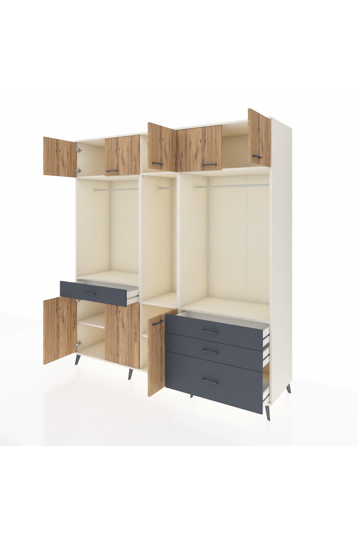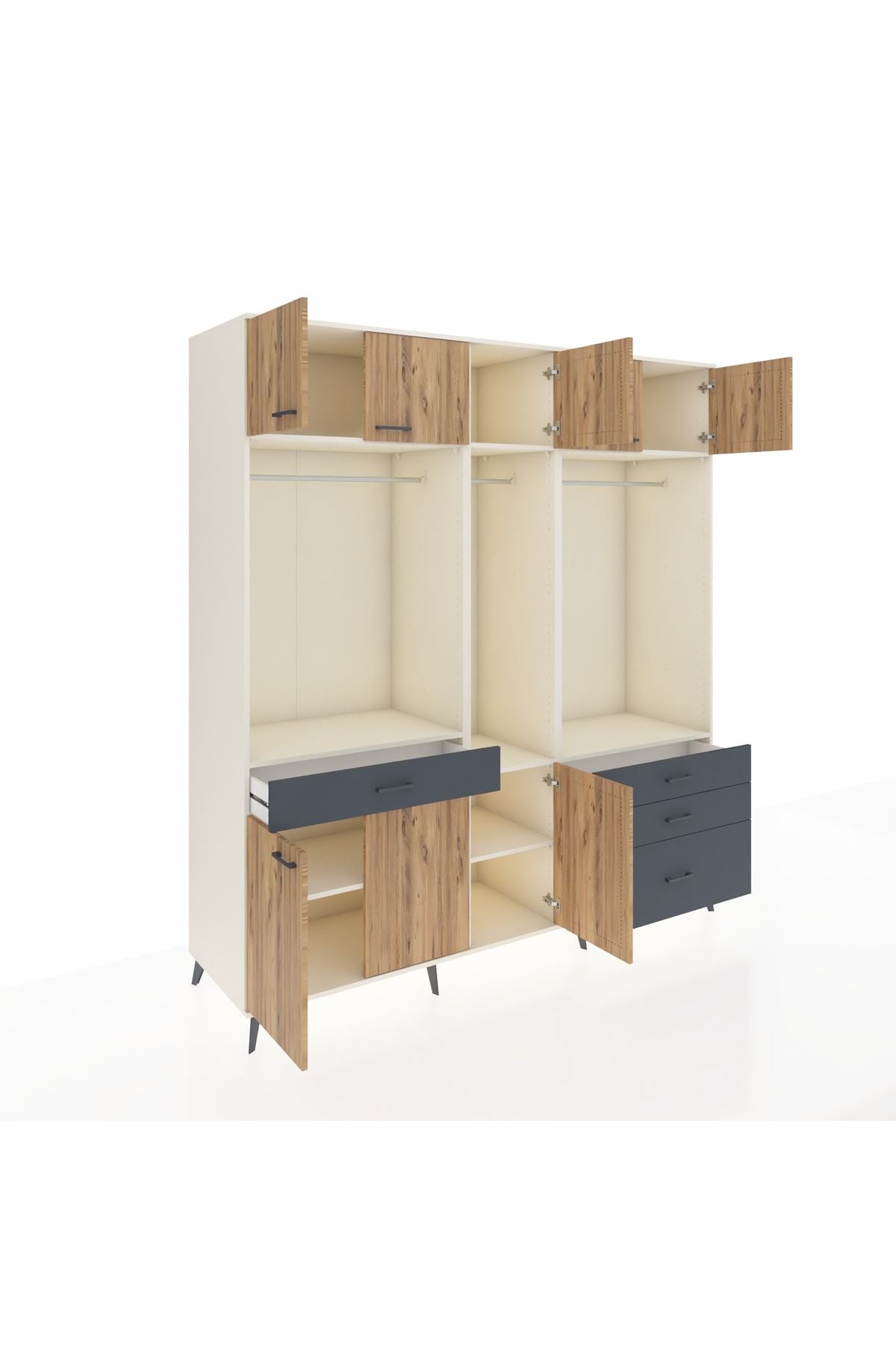 Kronos Dolap 8 Raflı 4 Çekmeceli 3 Askılı 220x59x243 Aytaşı-Çam/Antrasit