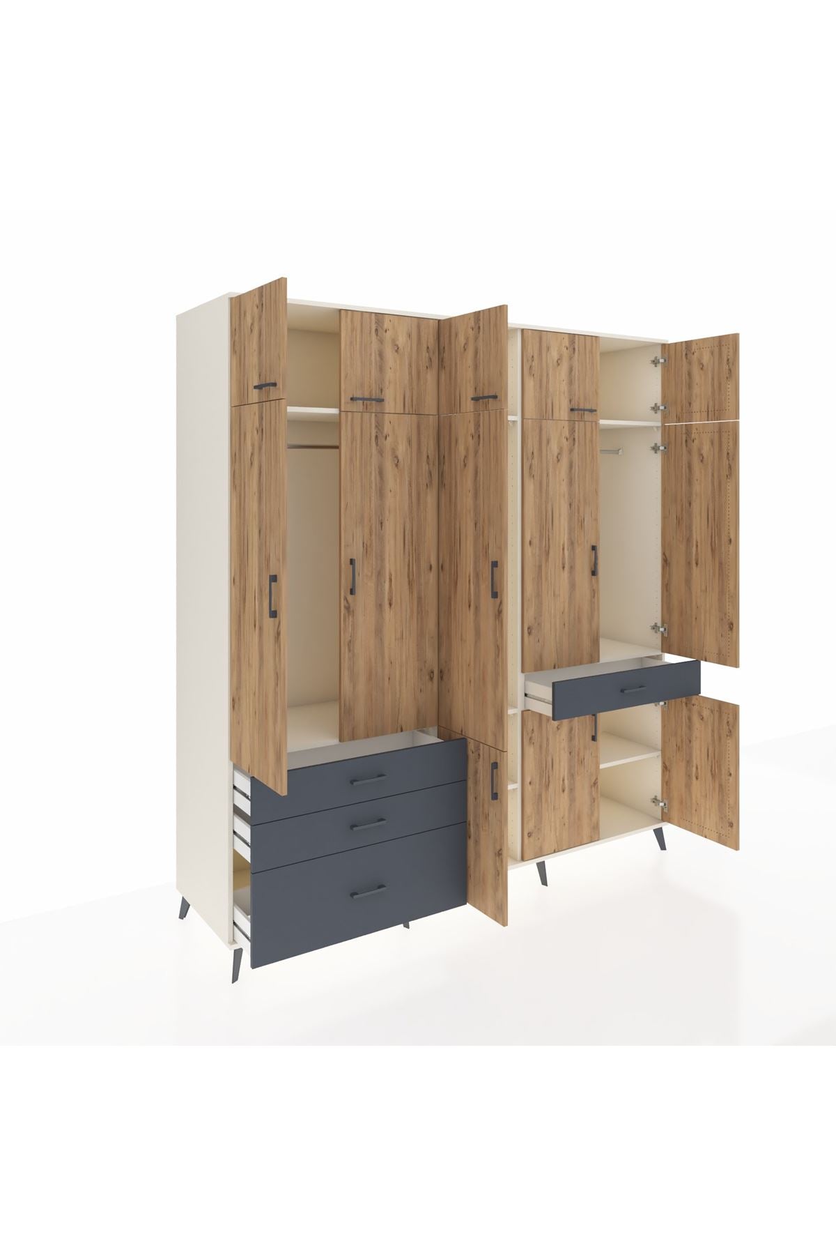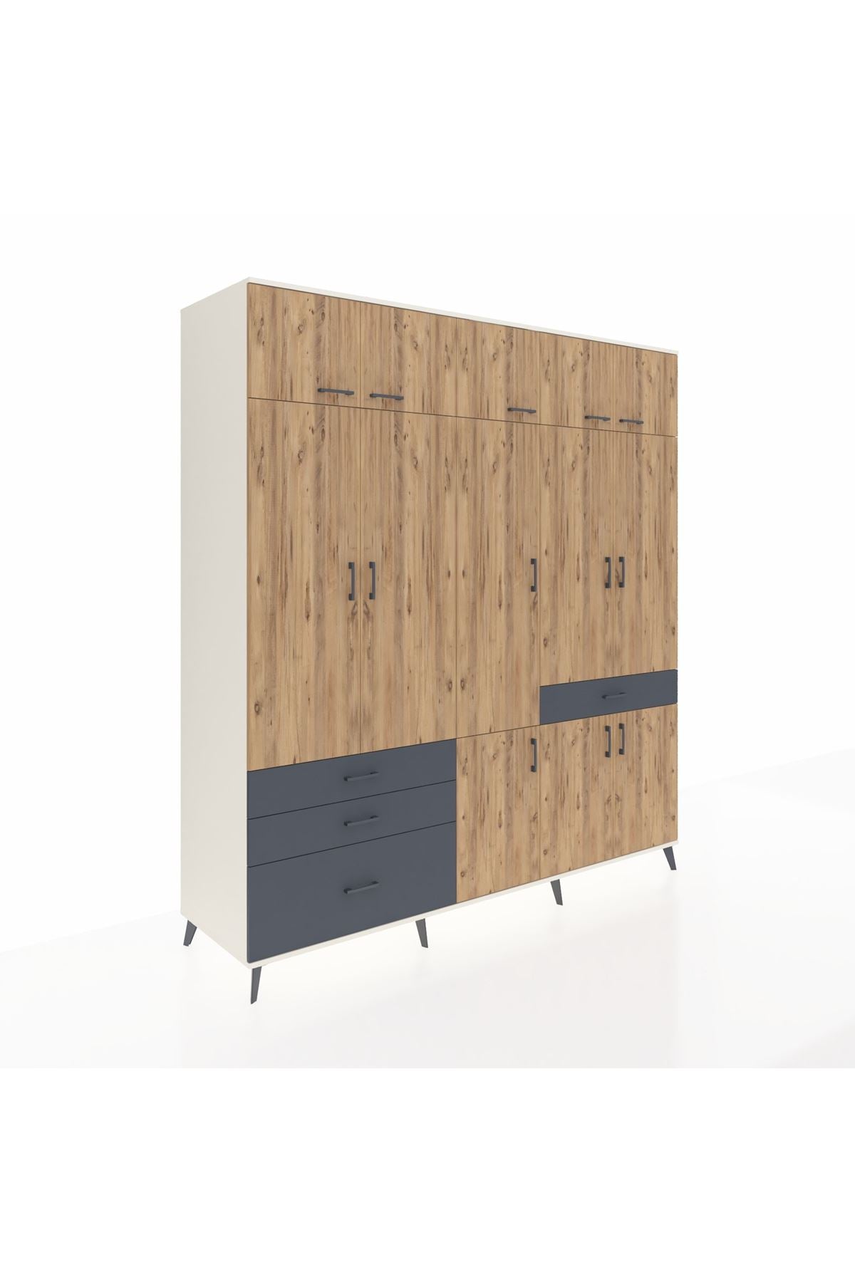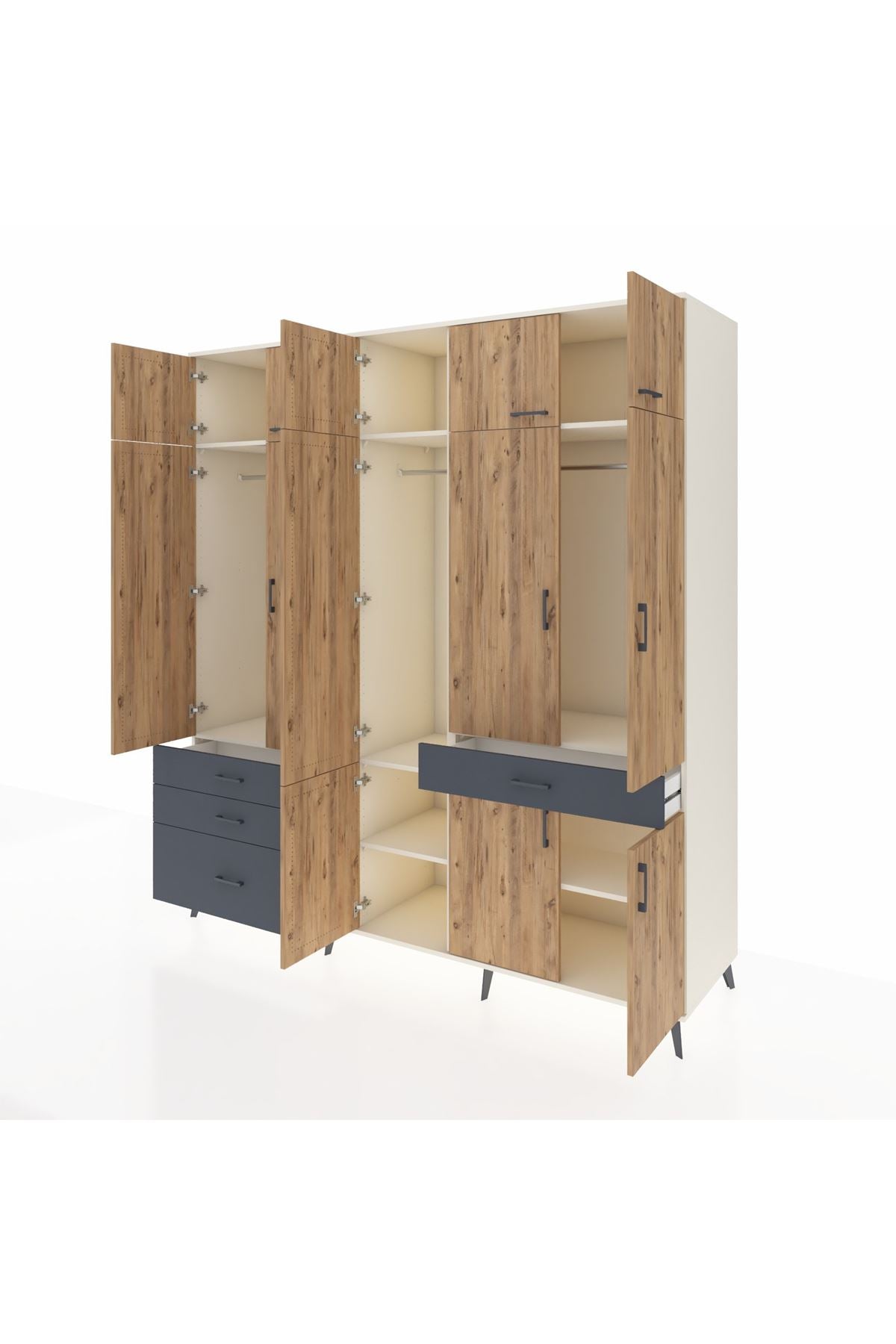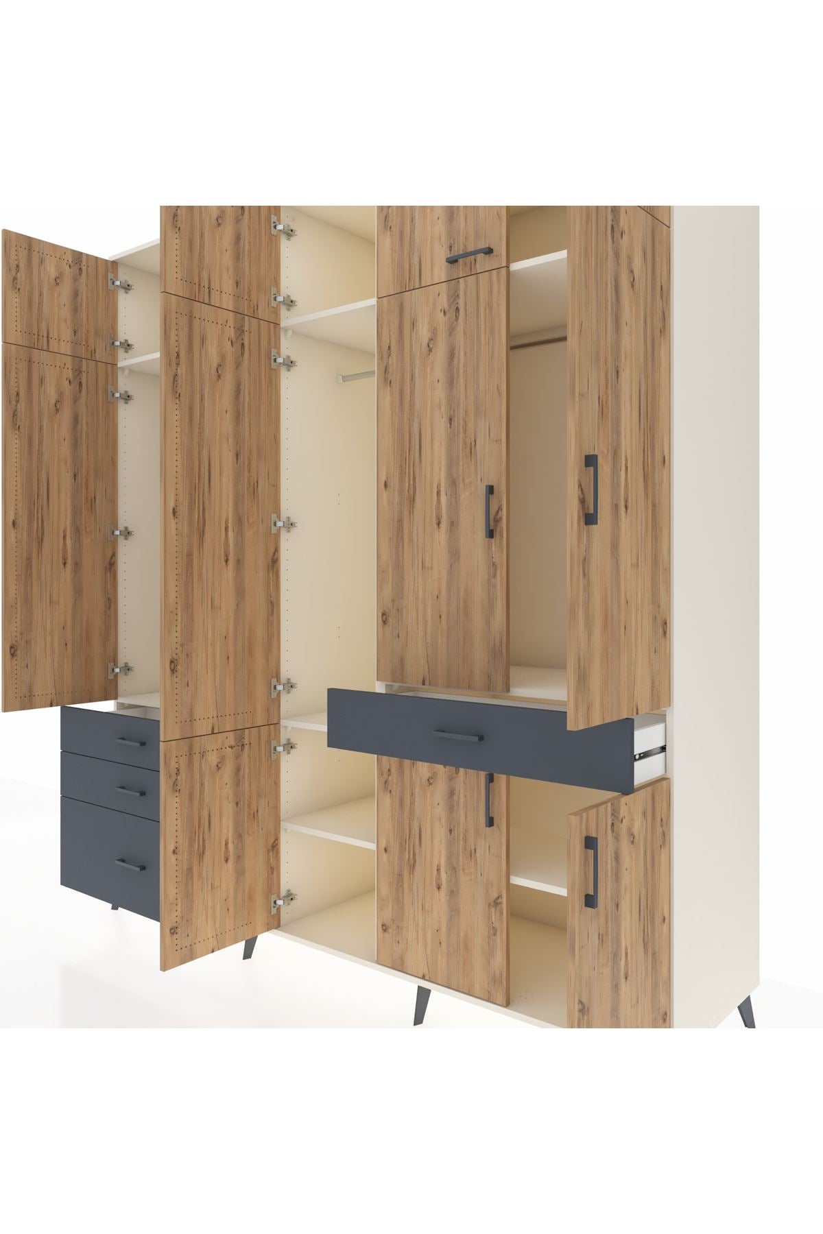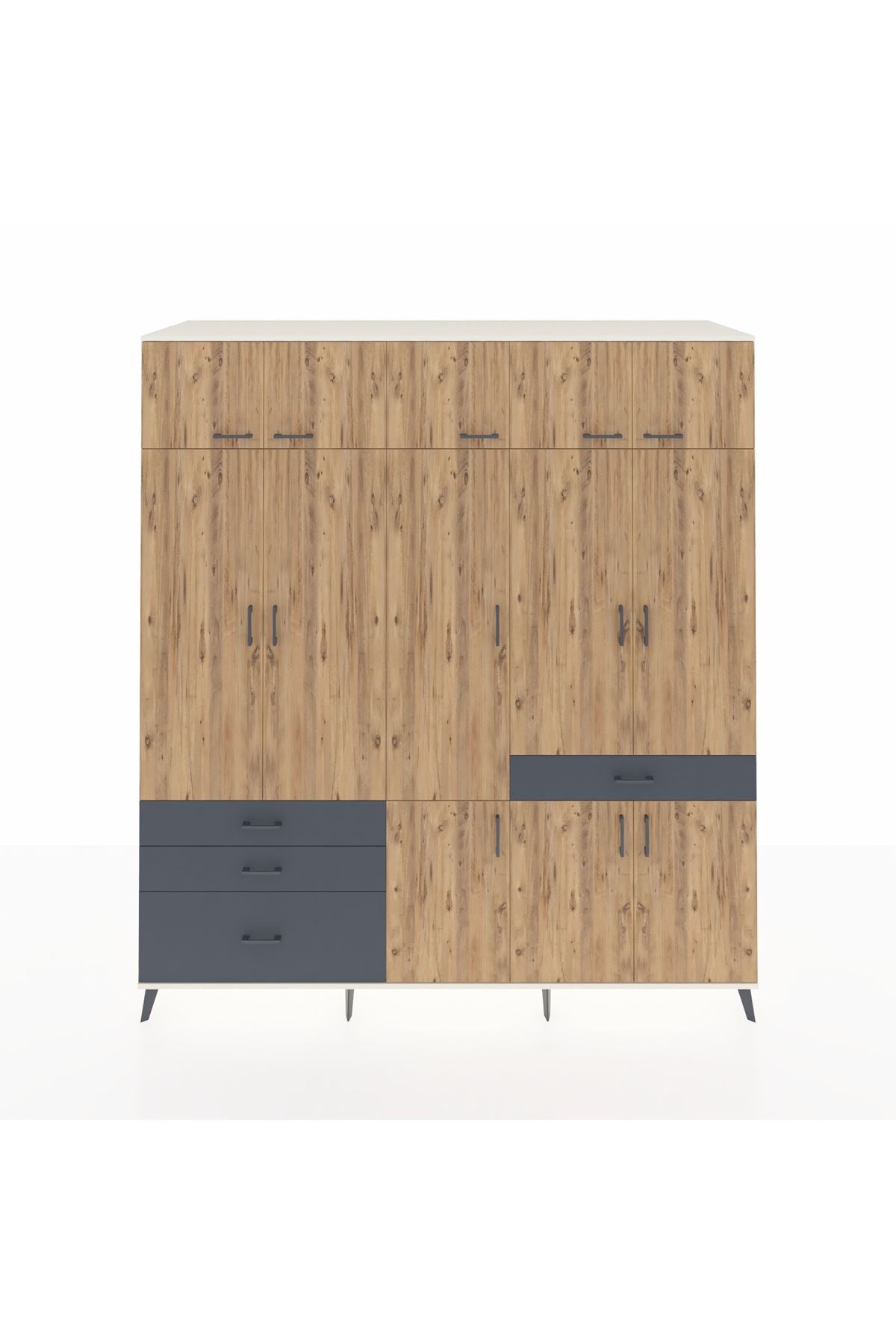 Kronos Dolap 8 Raflı 4 Çekmeceli 3 Askılı 220x59x243 Aytaşı-Çam/Antrasit
