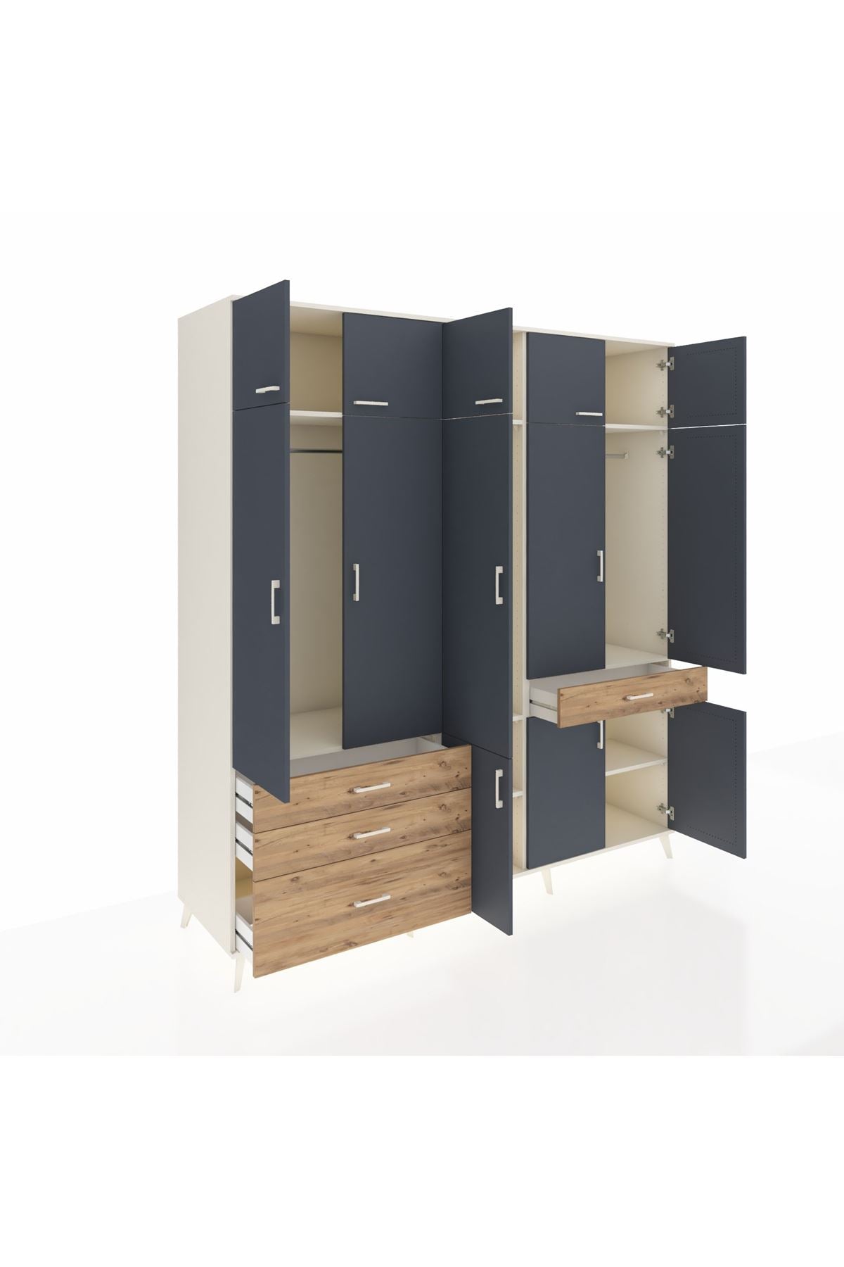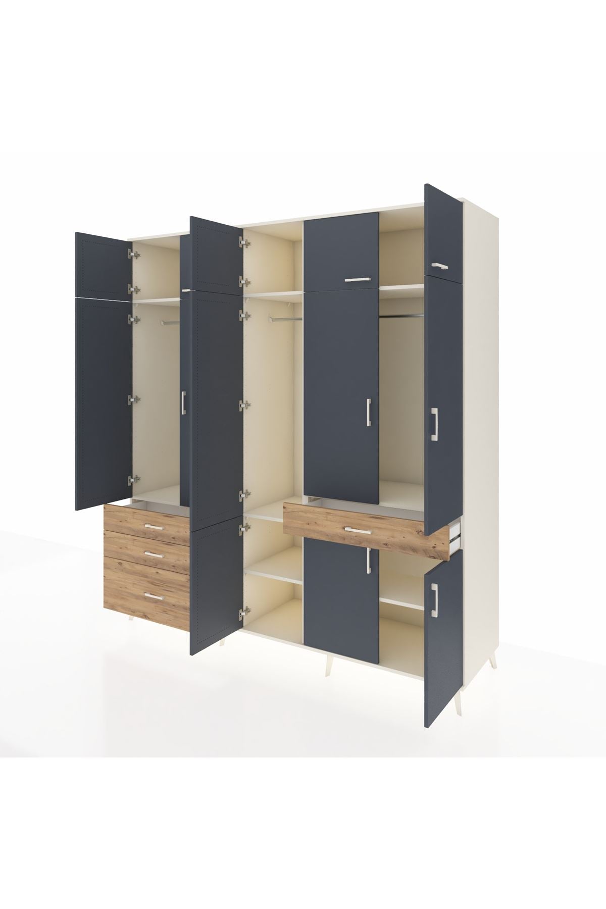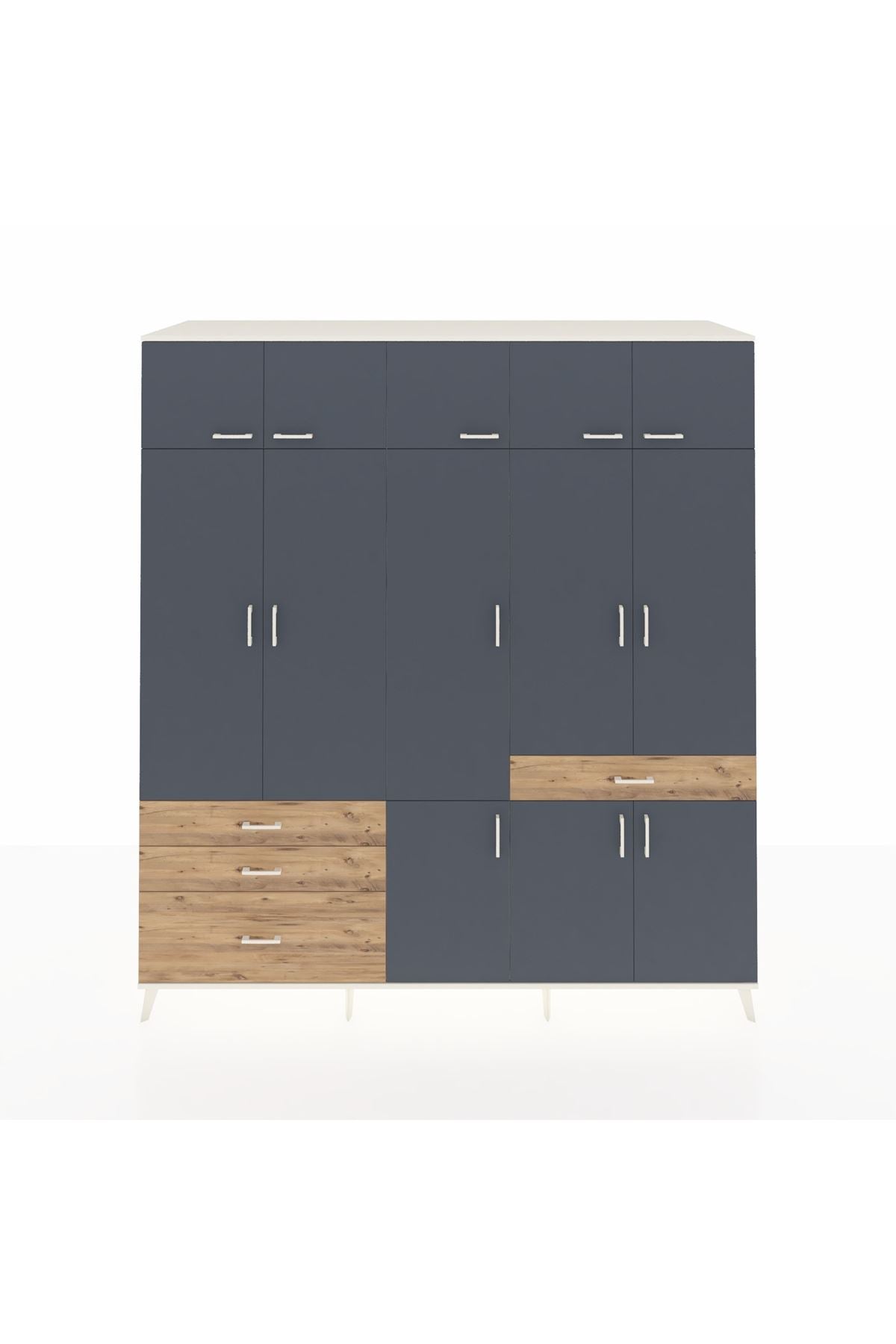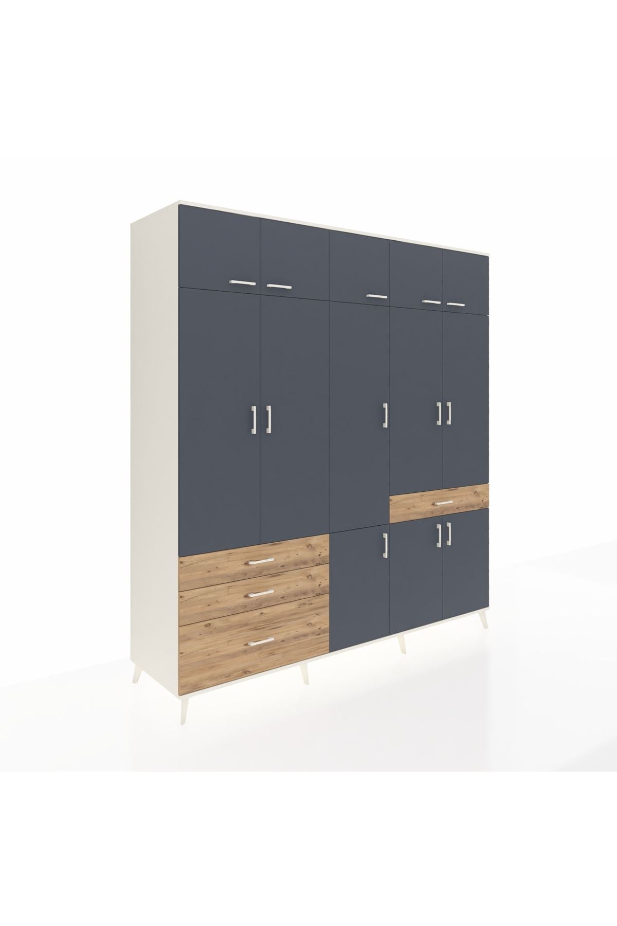 Kronos Dolap 8 Raflı 4 Çekmeceli 3 Askılı 220x59x243 Aytaşı-Antrasit/Çam