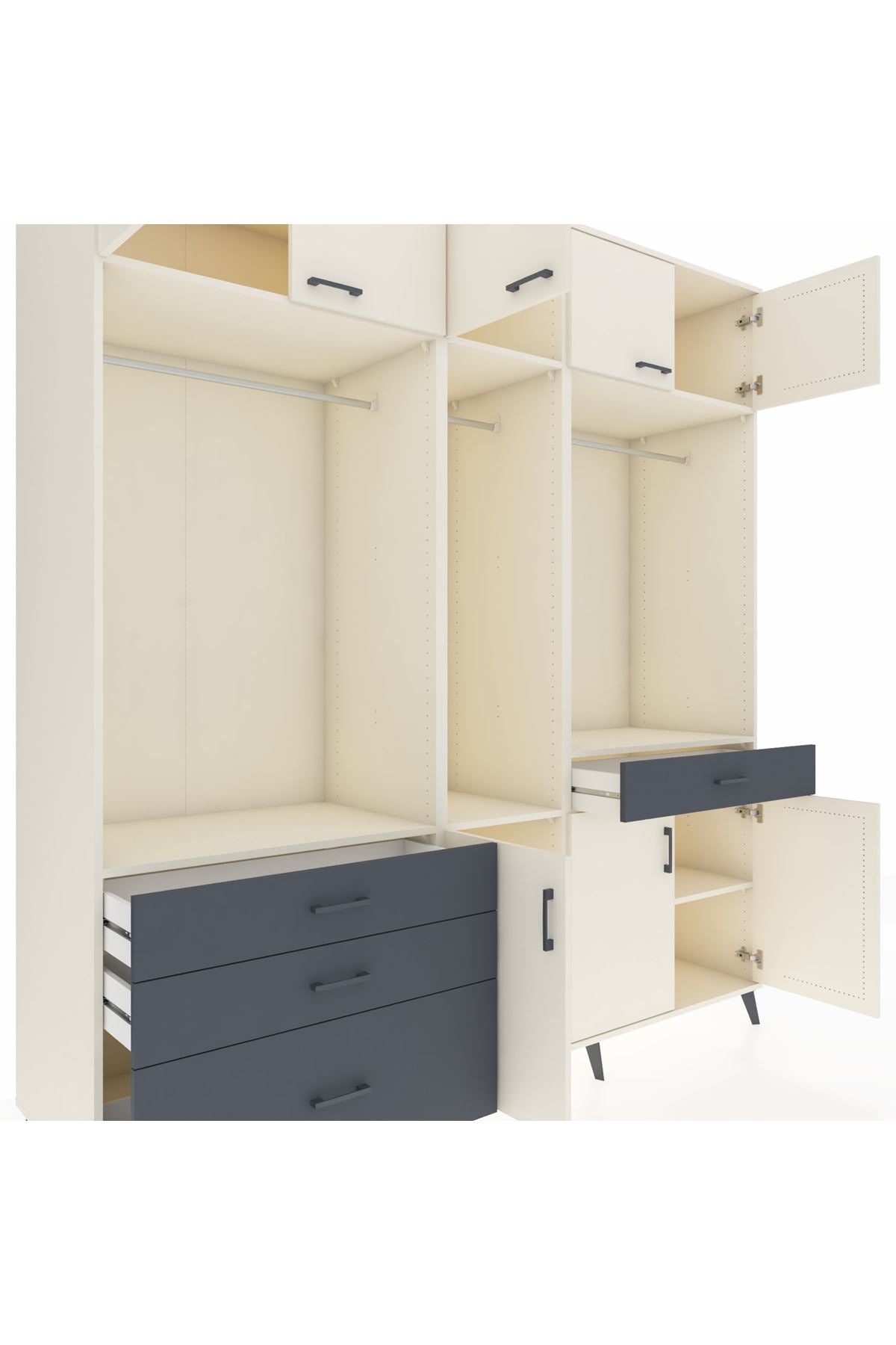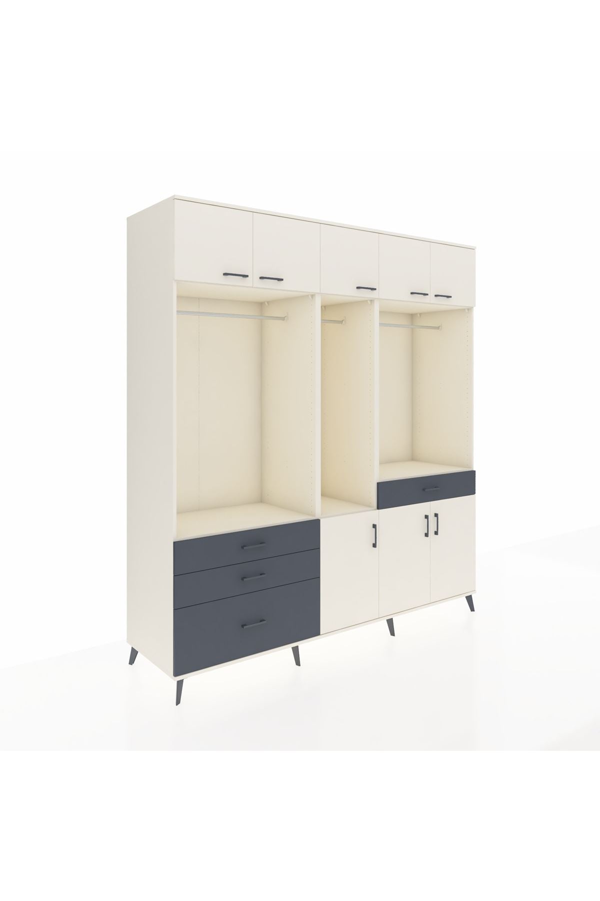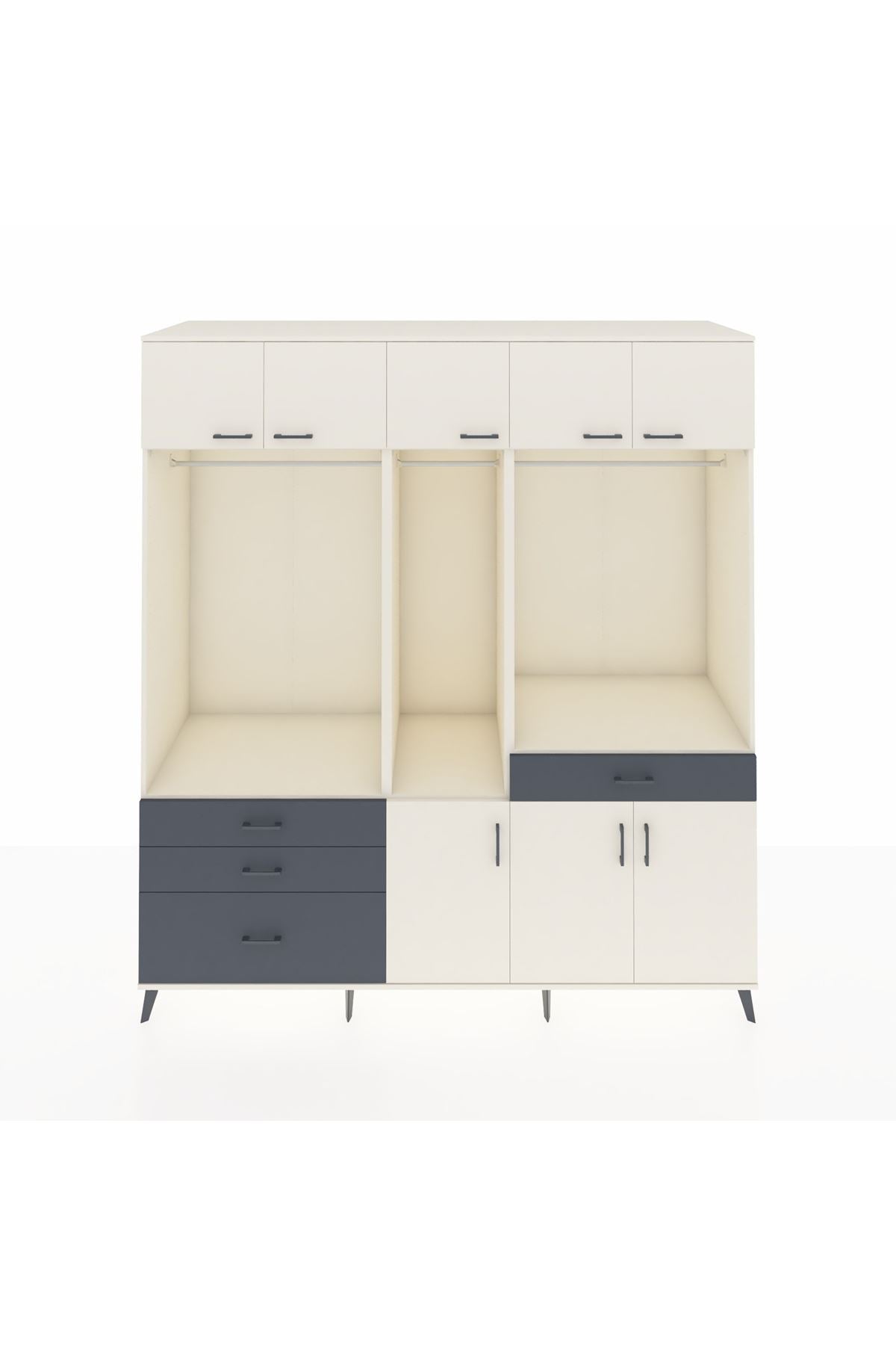 Kronos Dolap 8 Raflı 4 Çekmeceli 3 Askılı 220x59x243 Aytaşı-Aytaşı/Antrasit