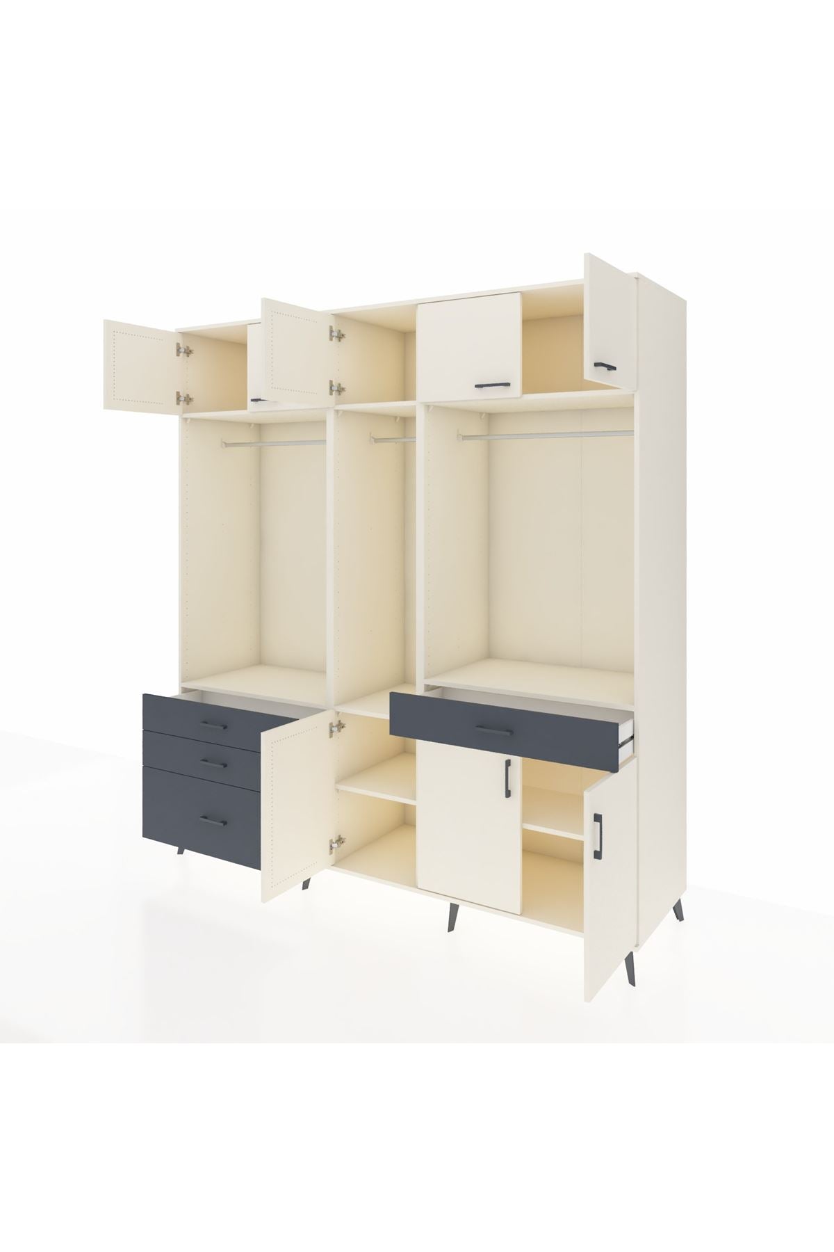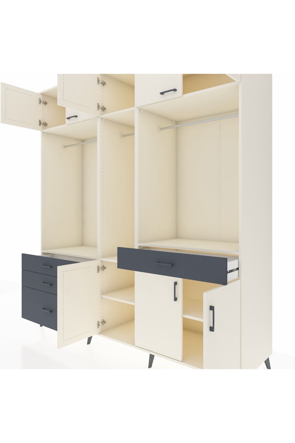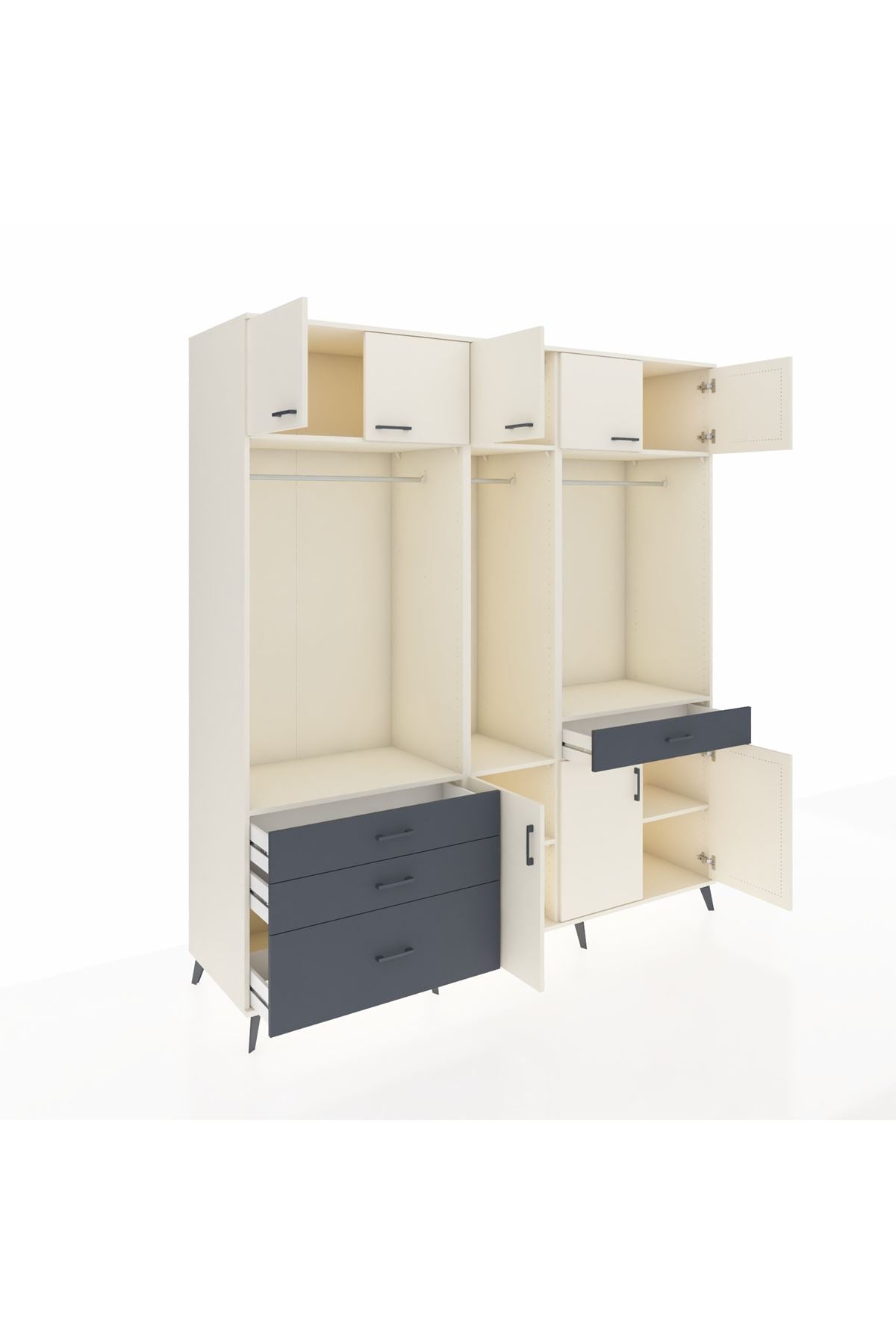 Kronos Dolap 8 Raflı 4 Çekmeceli 3 Askılı 220x59x243 Aytaşı-Aytaşı/Antrasit