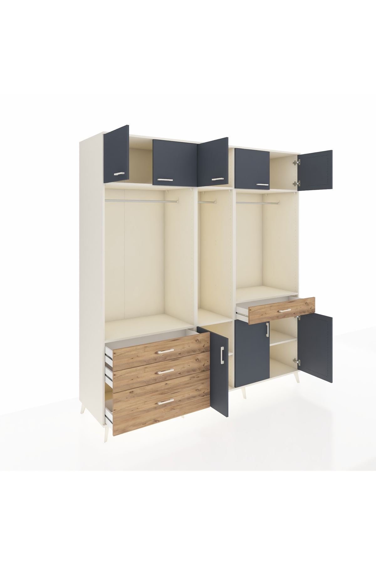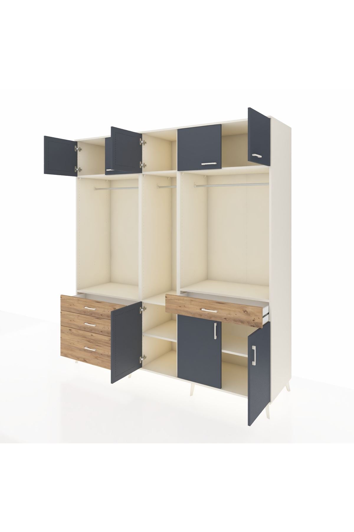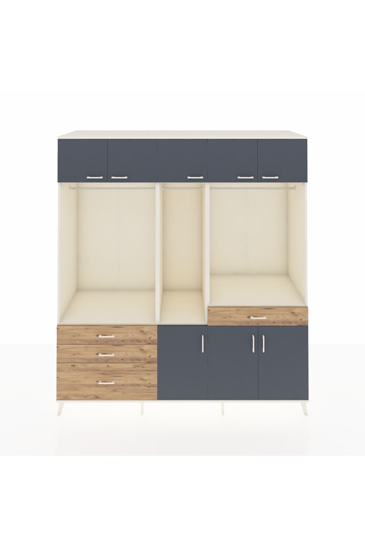 Kronos Dolap 8 Raflı 4 Çekmeceli 3 Askılı 220x59x243 Antrasit-Antrasit/Çam