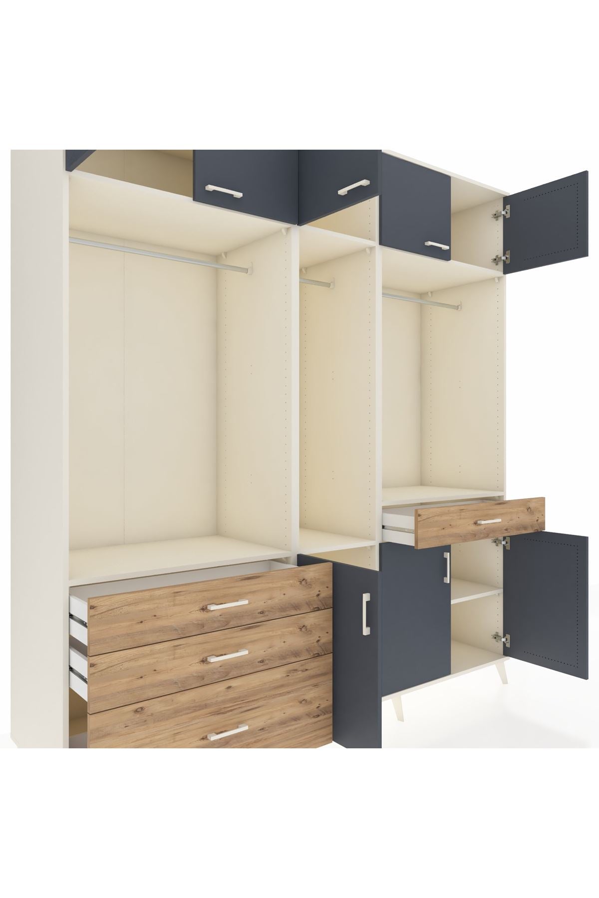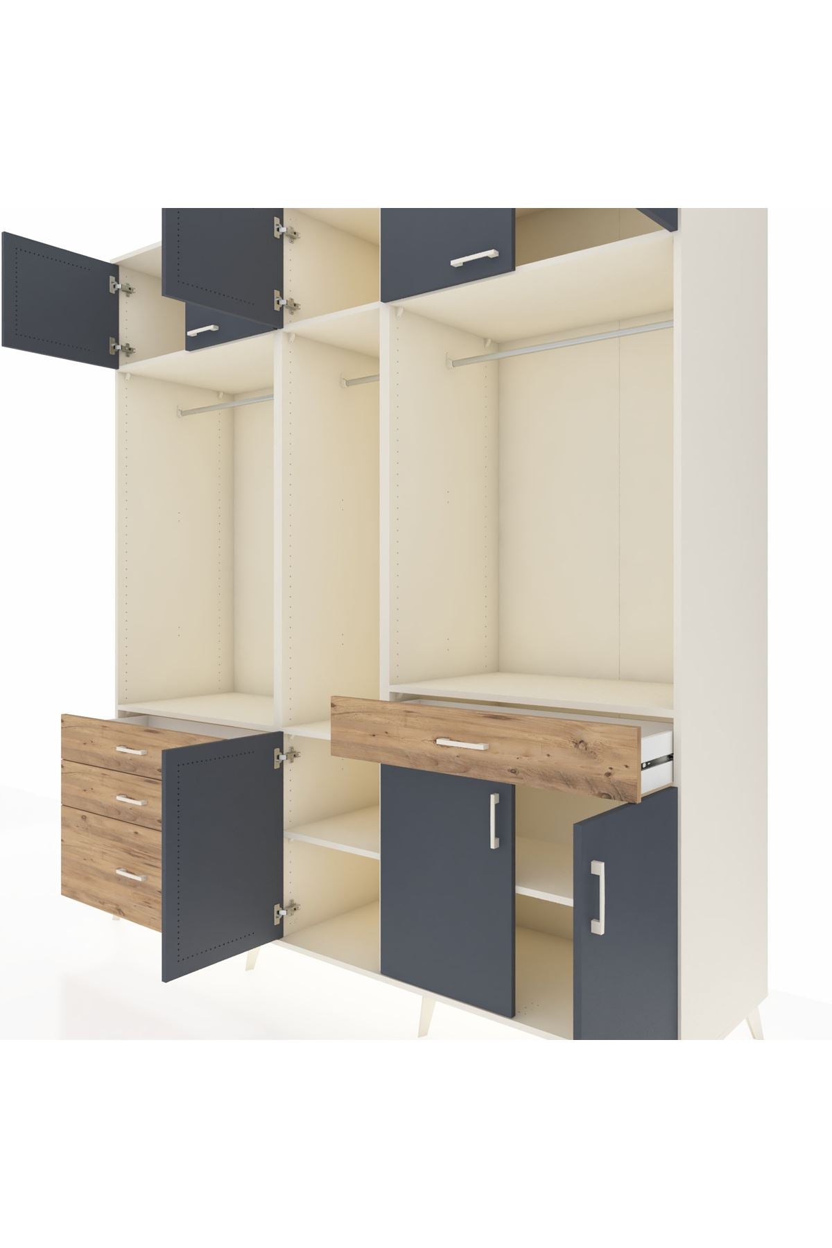 Kronos Dolap 8 Raflı 4 Çekmeceli 3 Askılı 220x59x243 Aytaşı-Antrasit/Çam