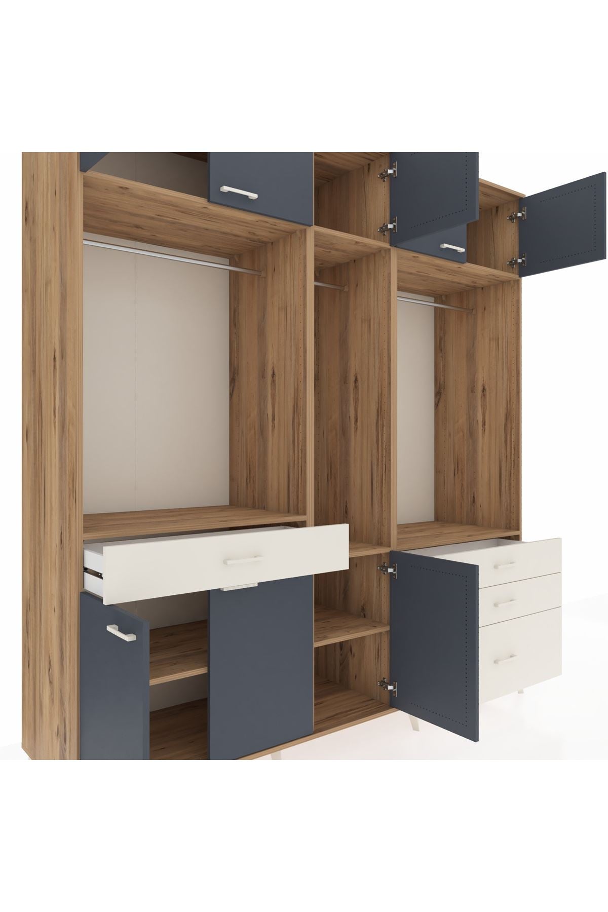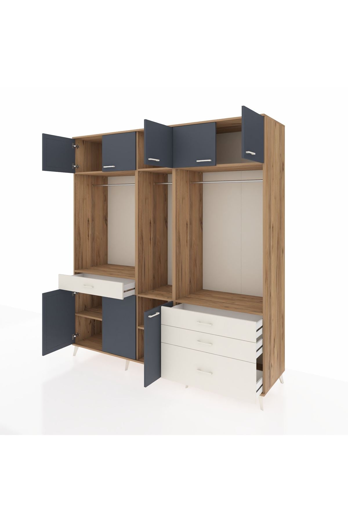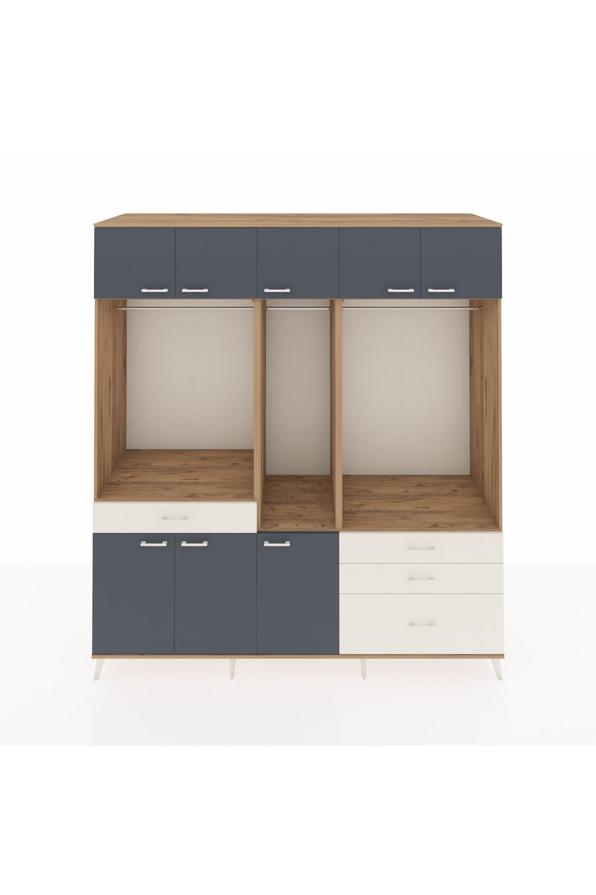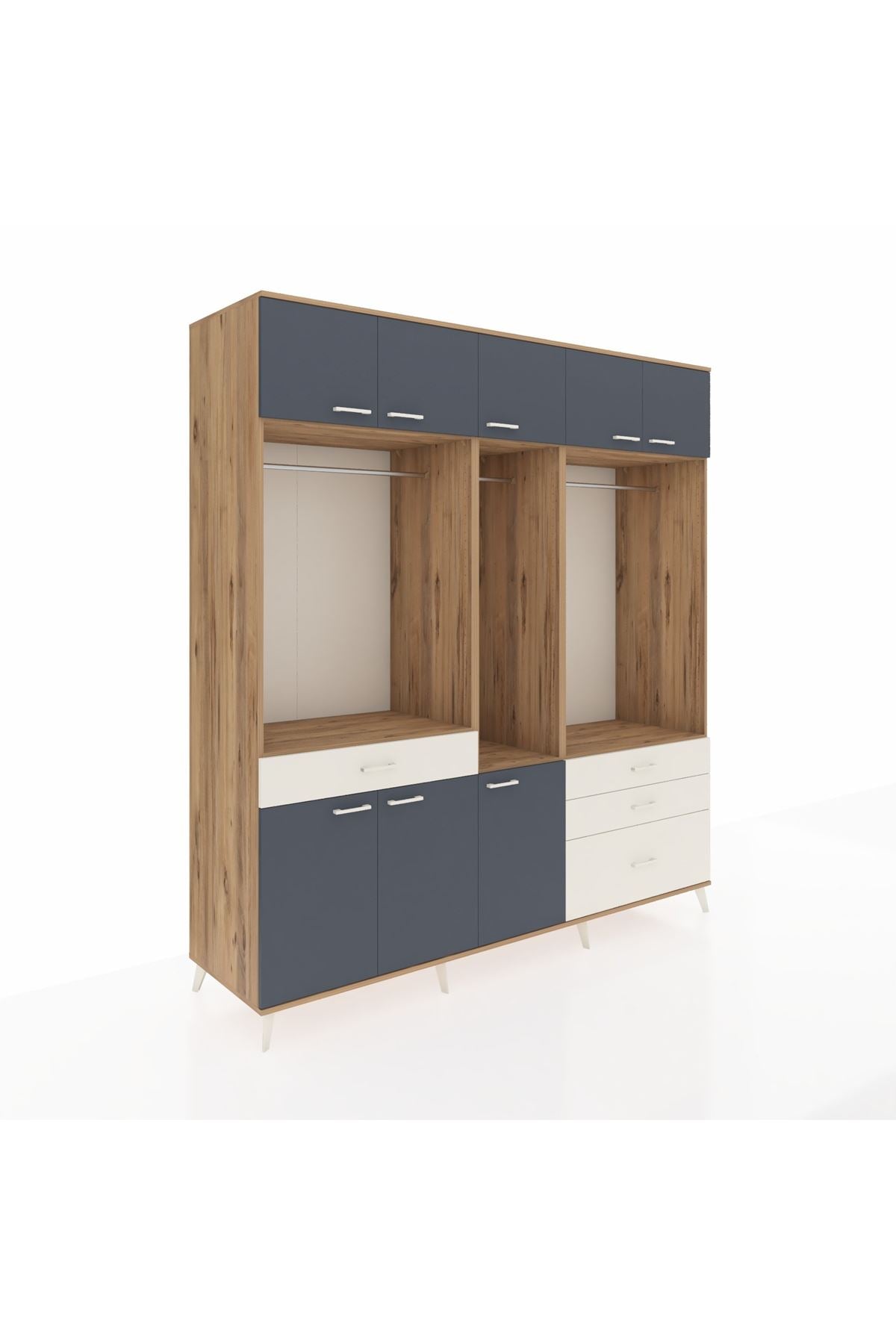 Kronos Dolap 8 Raflı 4 Çekmeceli 3 Askılı 220x59x243 Çam-Antrasit/Aytaşı