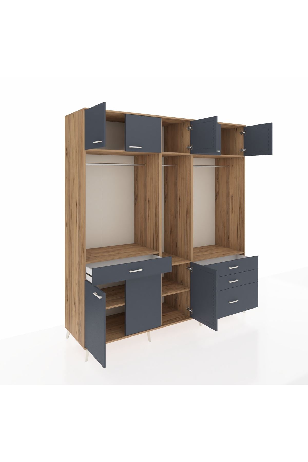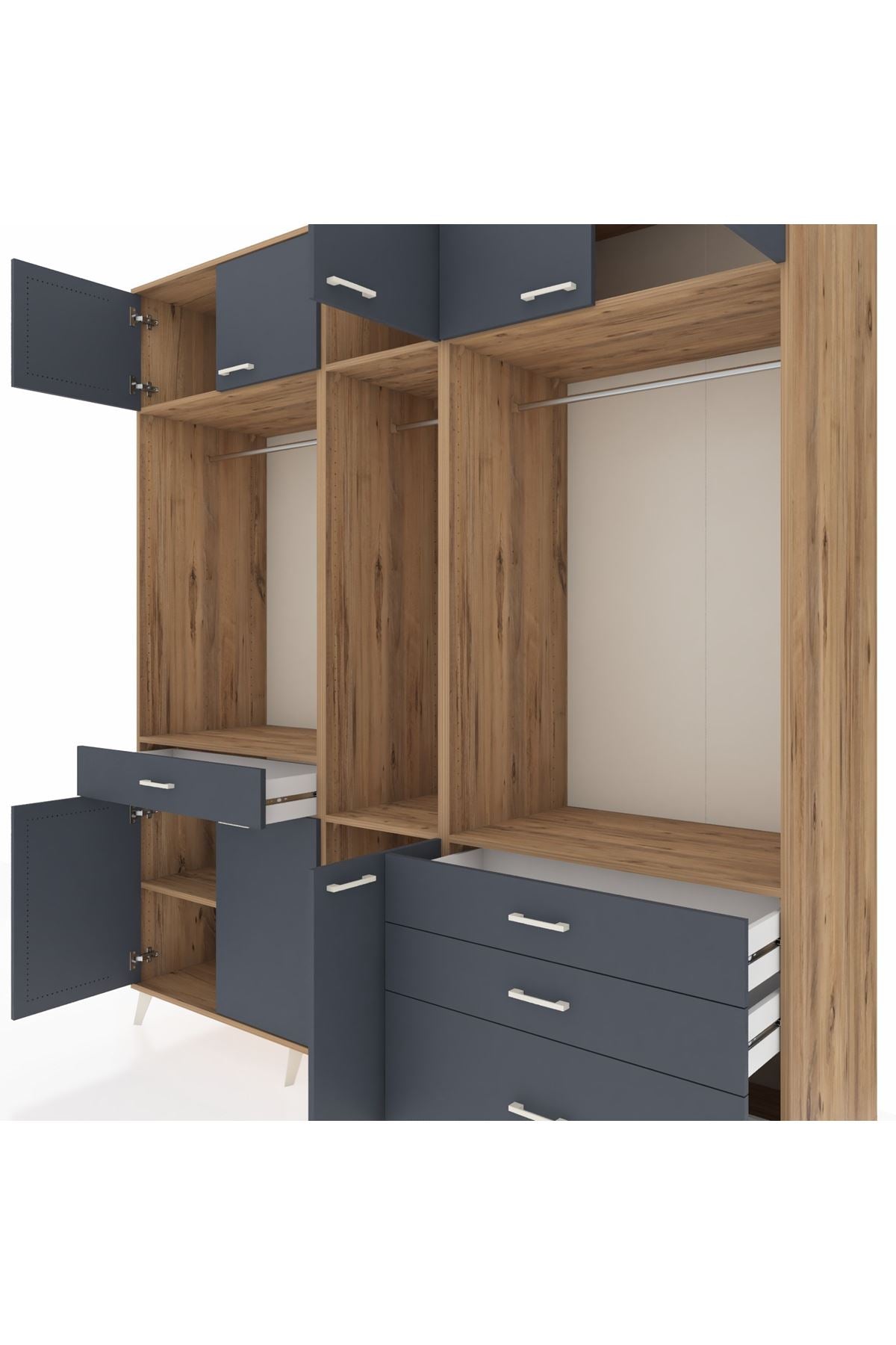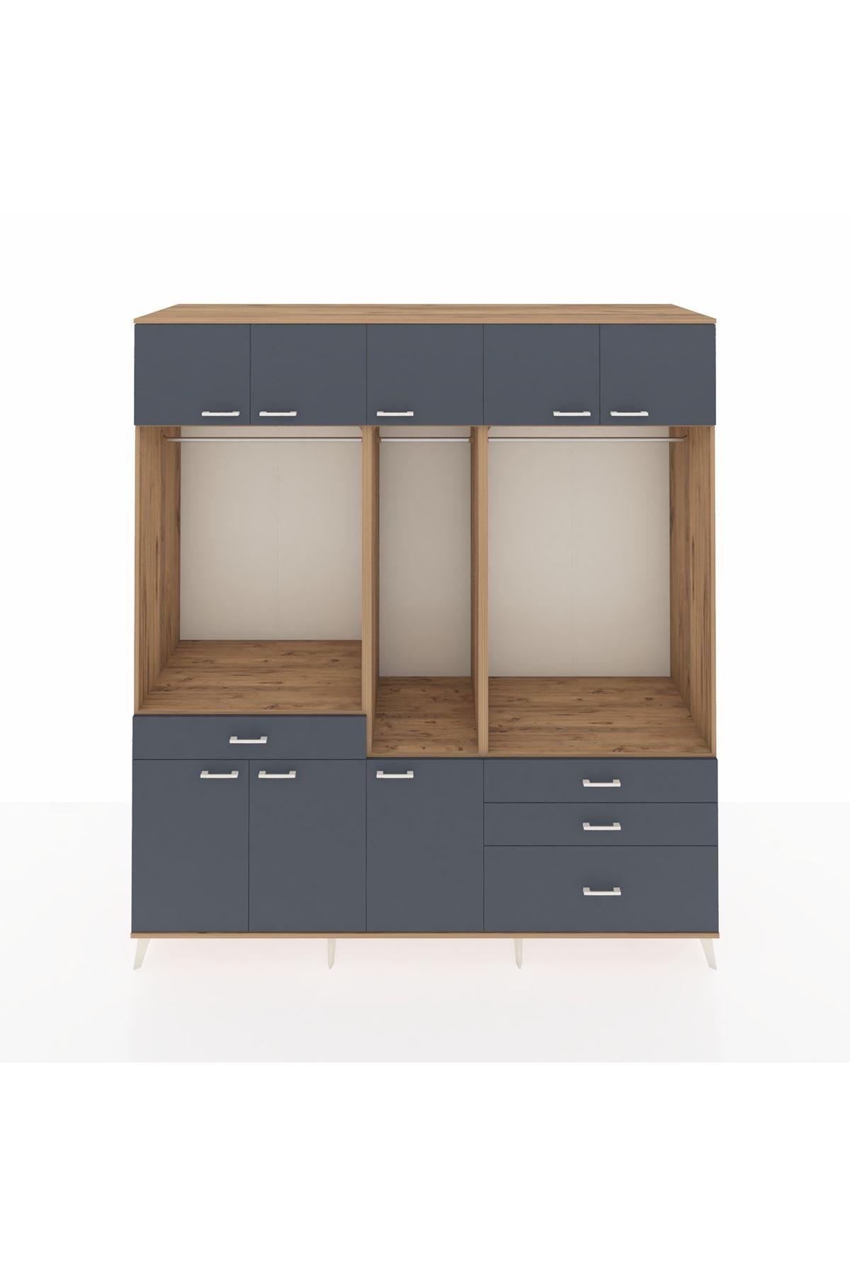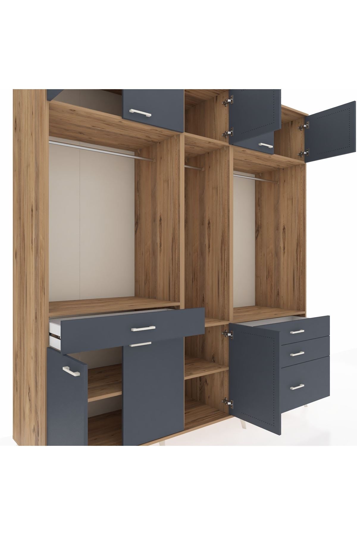 Kronos Dolap 8 Raflı 4 Çekmeceli 3 Askılı 220x59x243 Çam-Antrasit/Antrasit