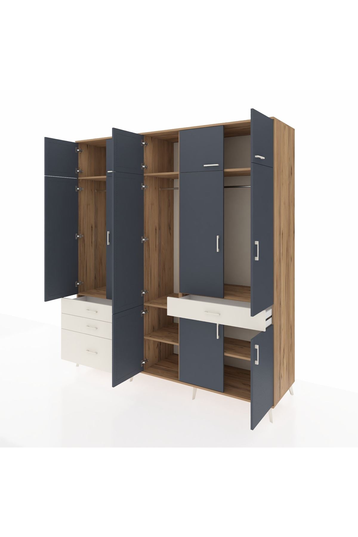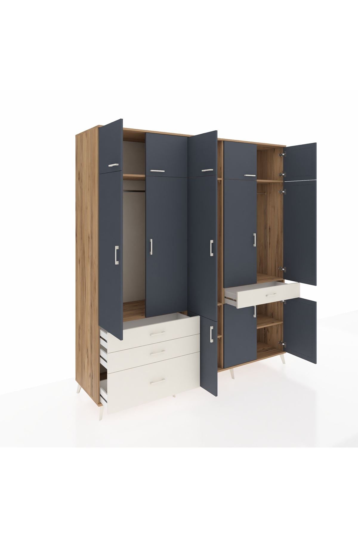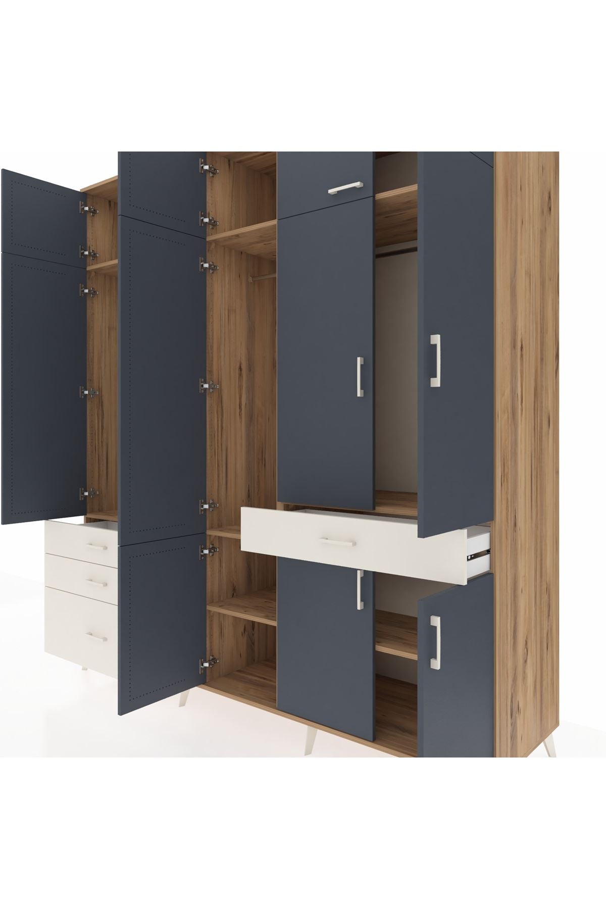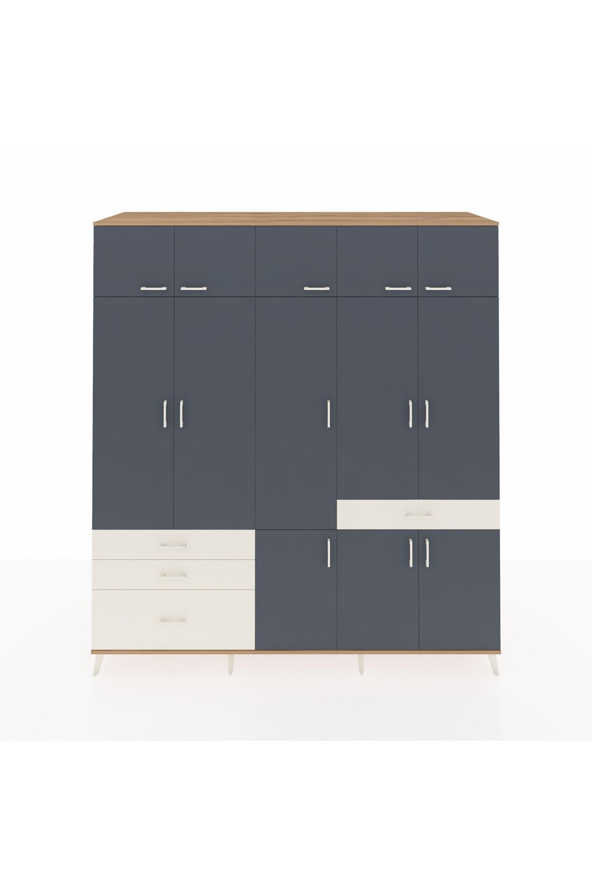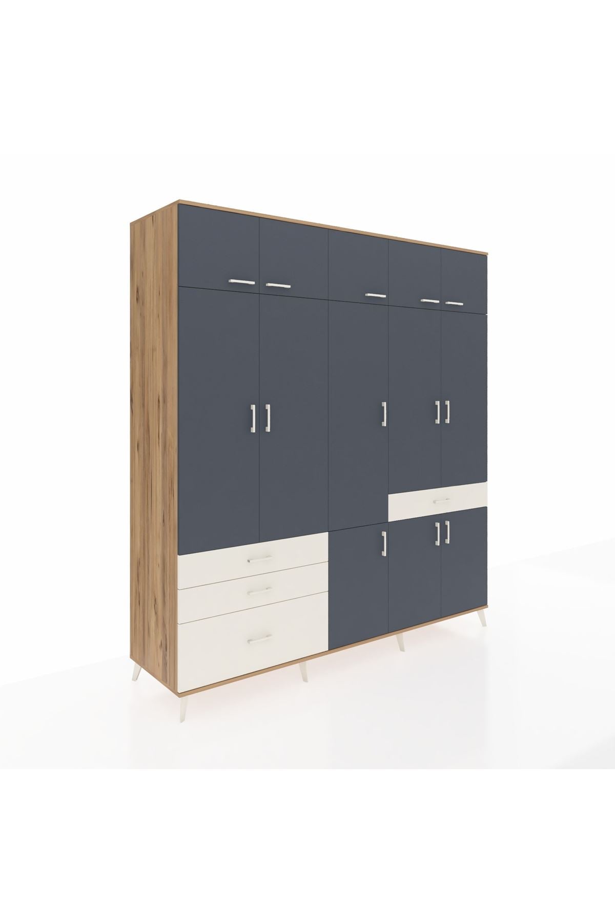 Kronos Dolap 8 Raflı 4 Çekmeceli 3 Askılı 220x59x243 Çam-Antrasit/Aytaşı