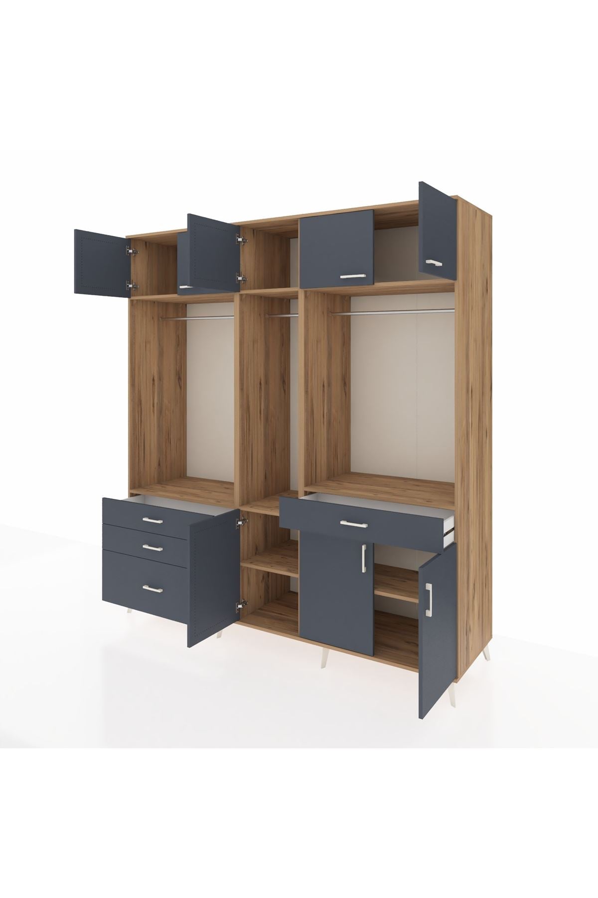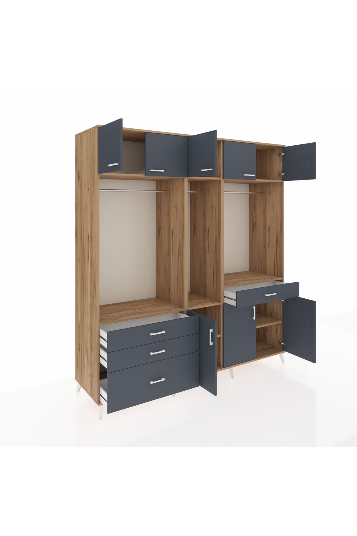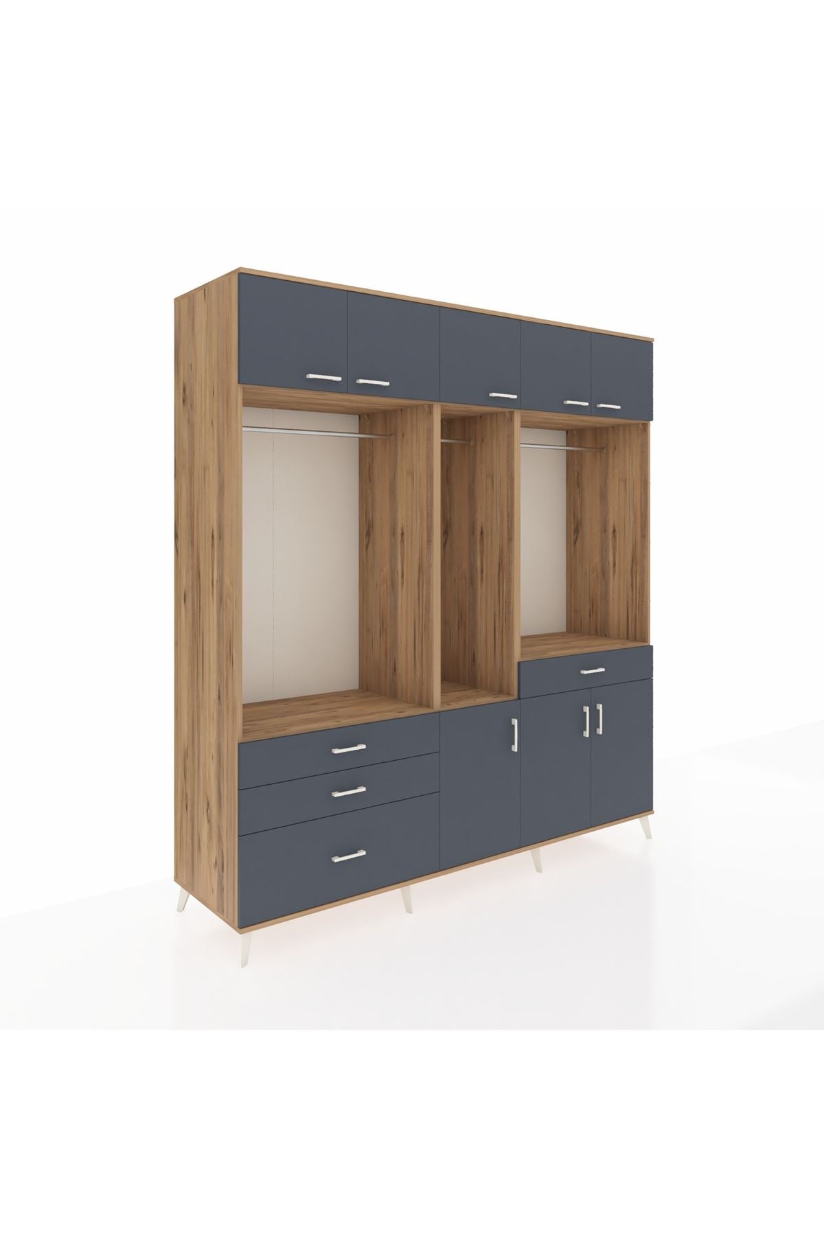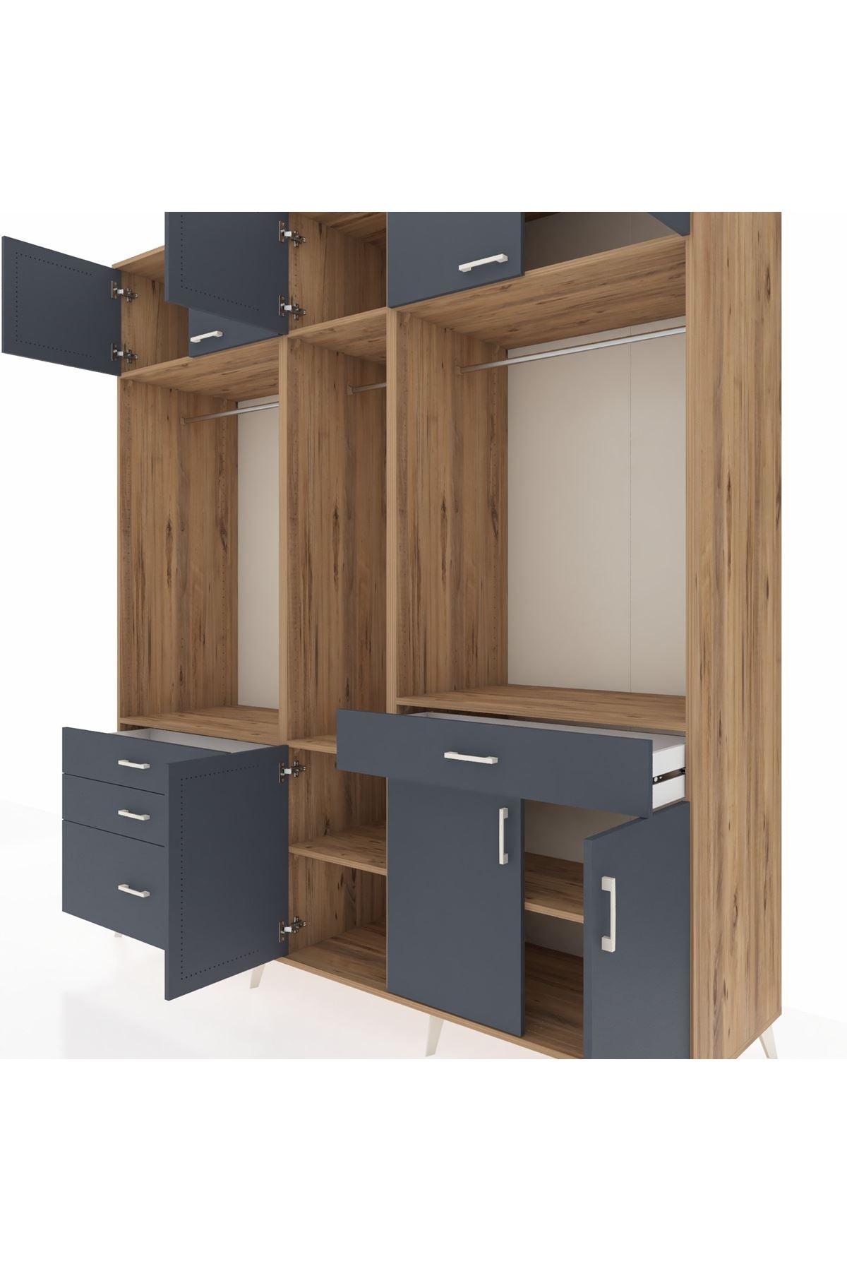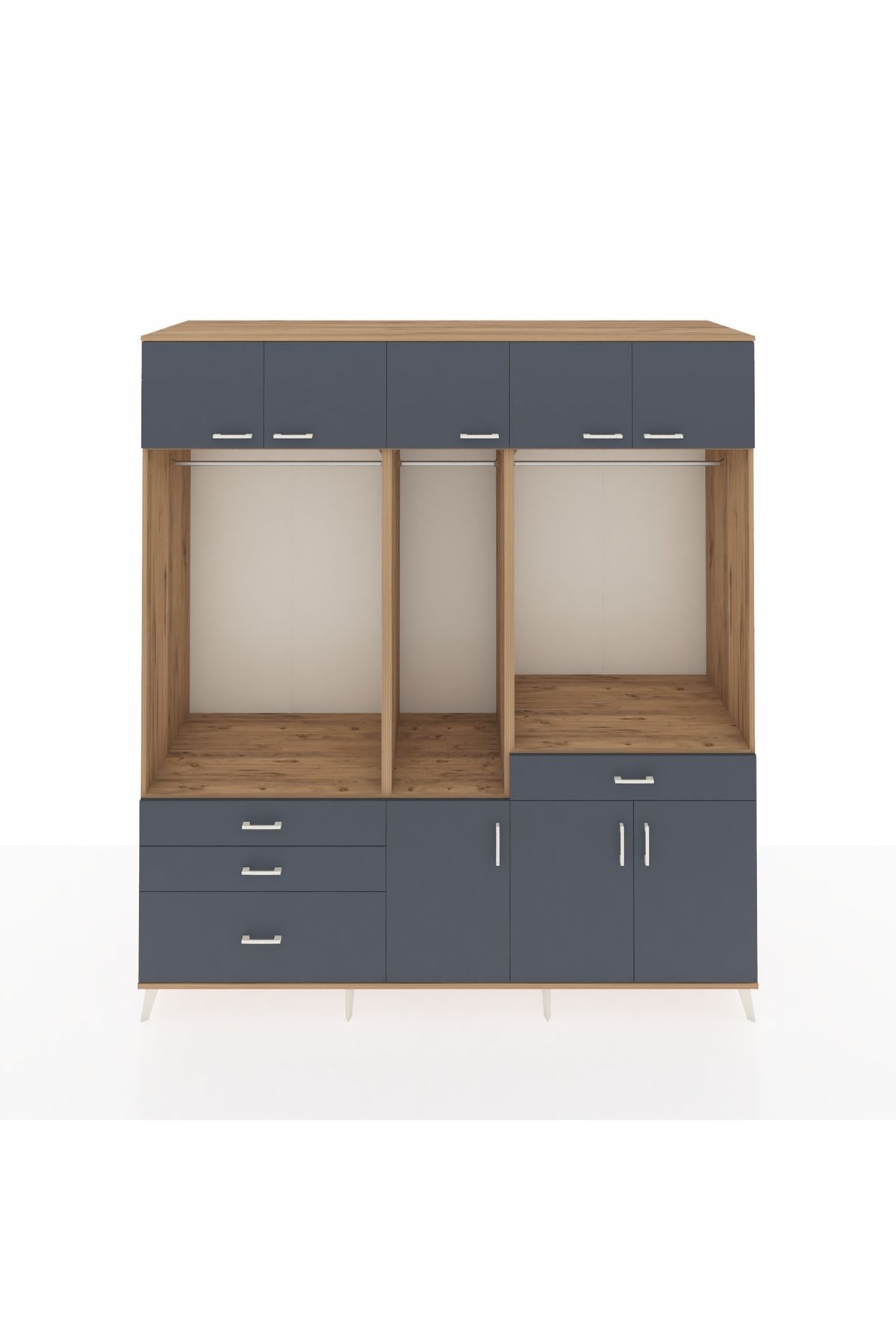 Kronos Dolap 8 Raflı 4 Çekmeceli 3 Askılı 220x59x243 Çam-Antrasit/Antrasit