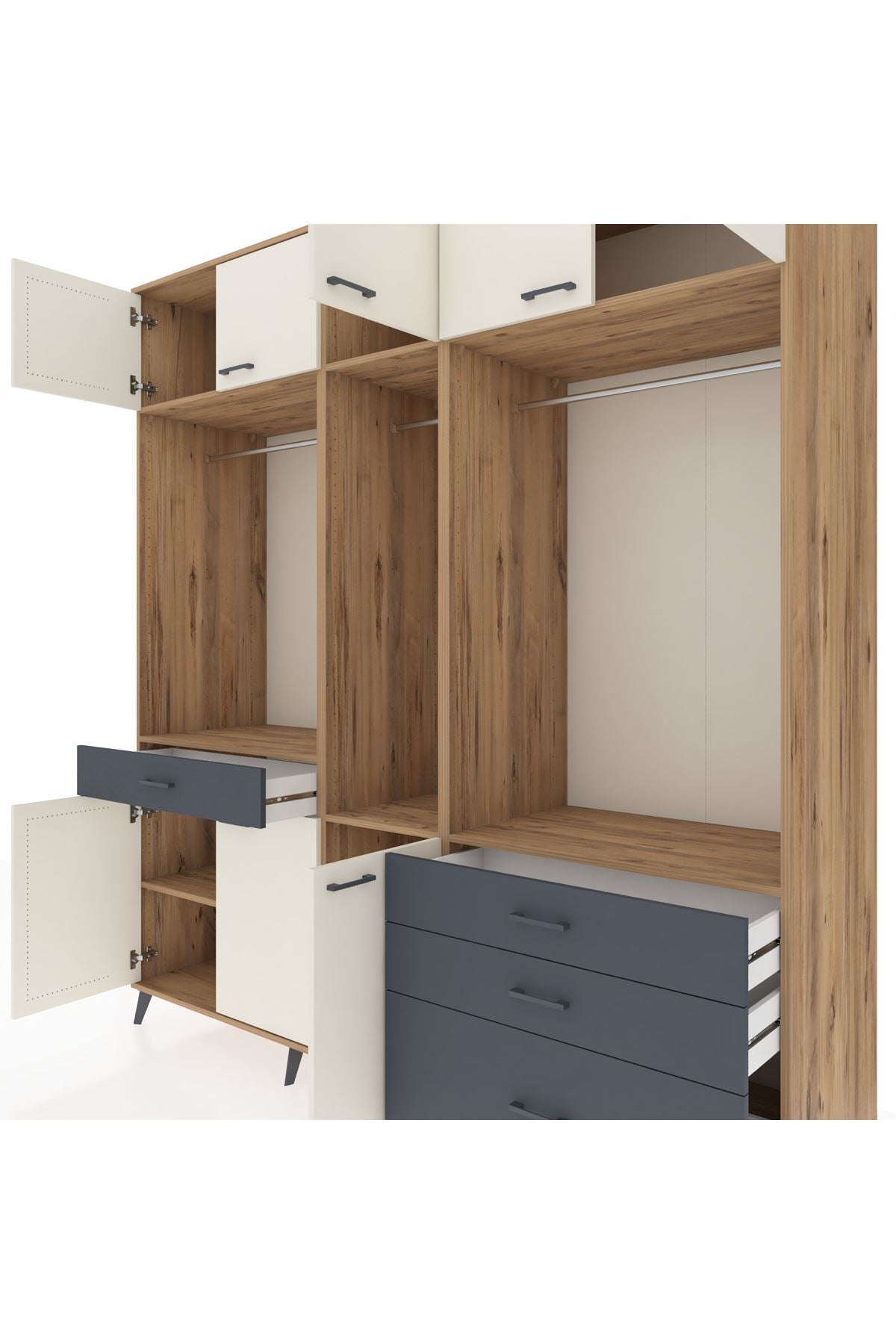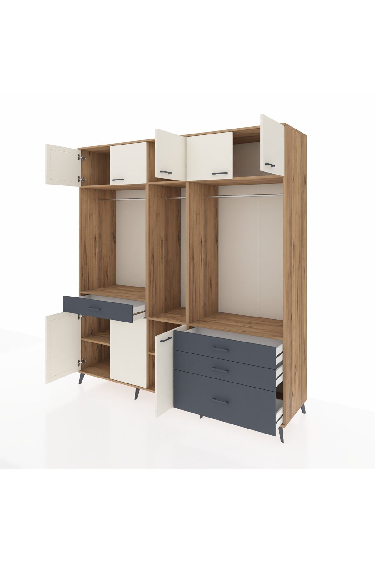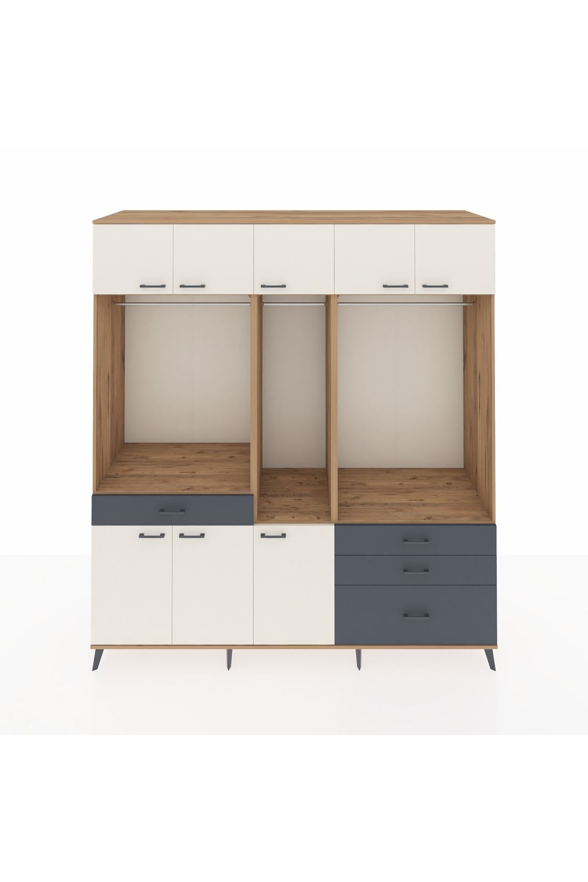 Kronos Dolap 8 Raflı 4 Çekmeceli 3 Askılı 220x59x243 Çam-Aytaşı/Antrasit