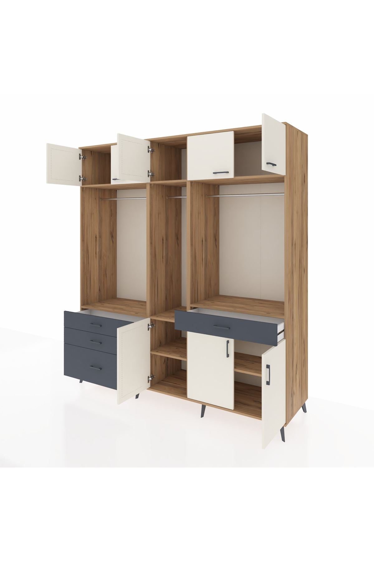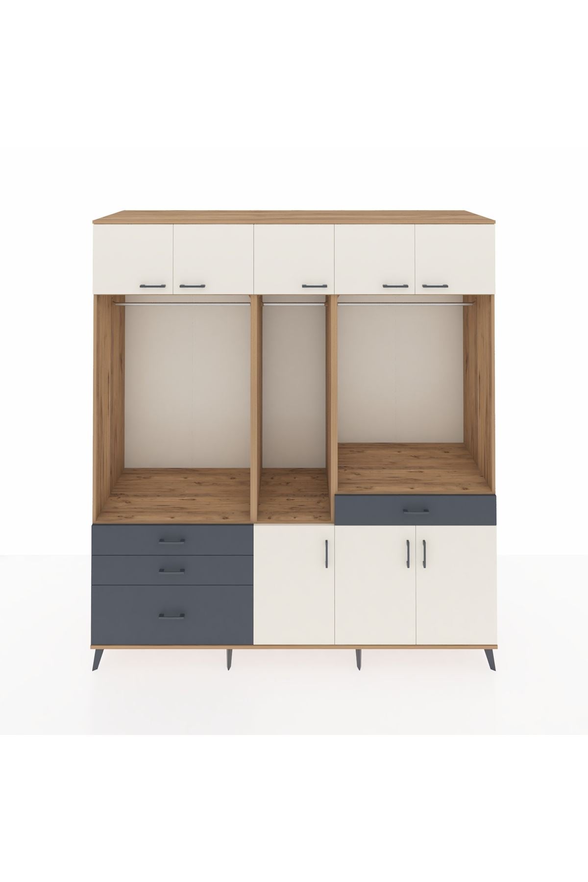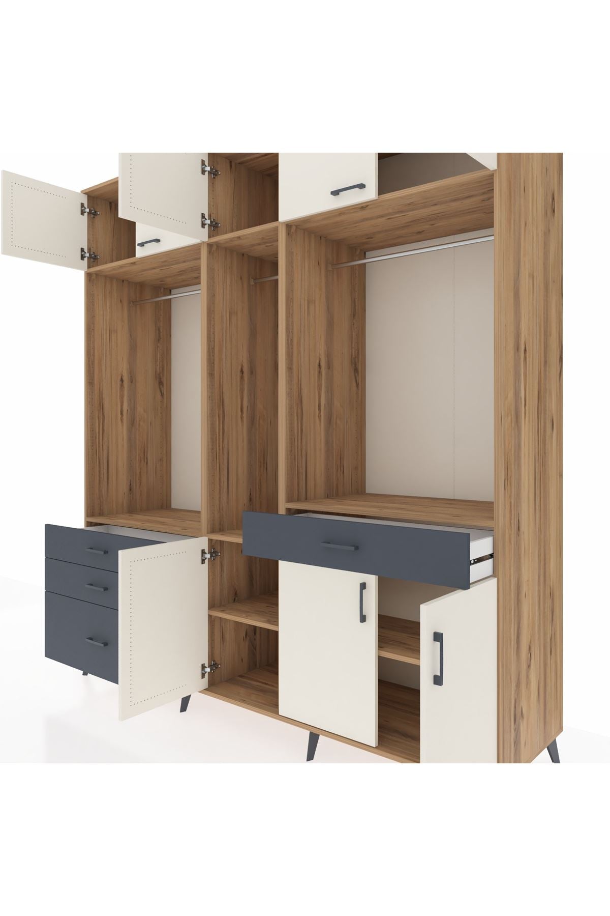 Kronos Dolap 8 Raflı 4 Çekmeceli 3 Askılı 220x59x243 Çam-Aytaşı/Antrasit