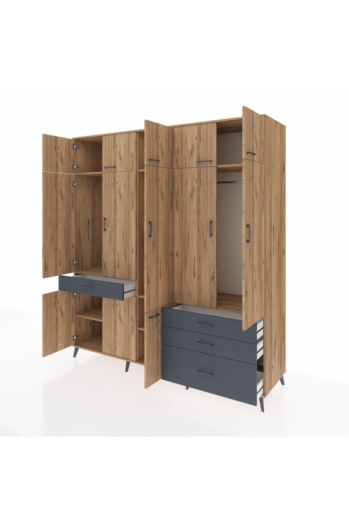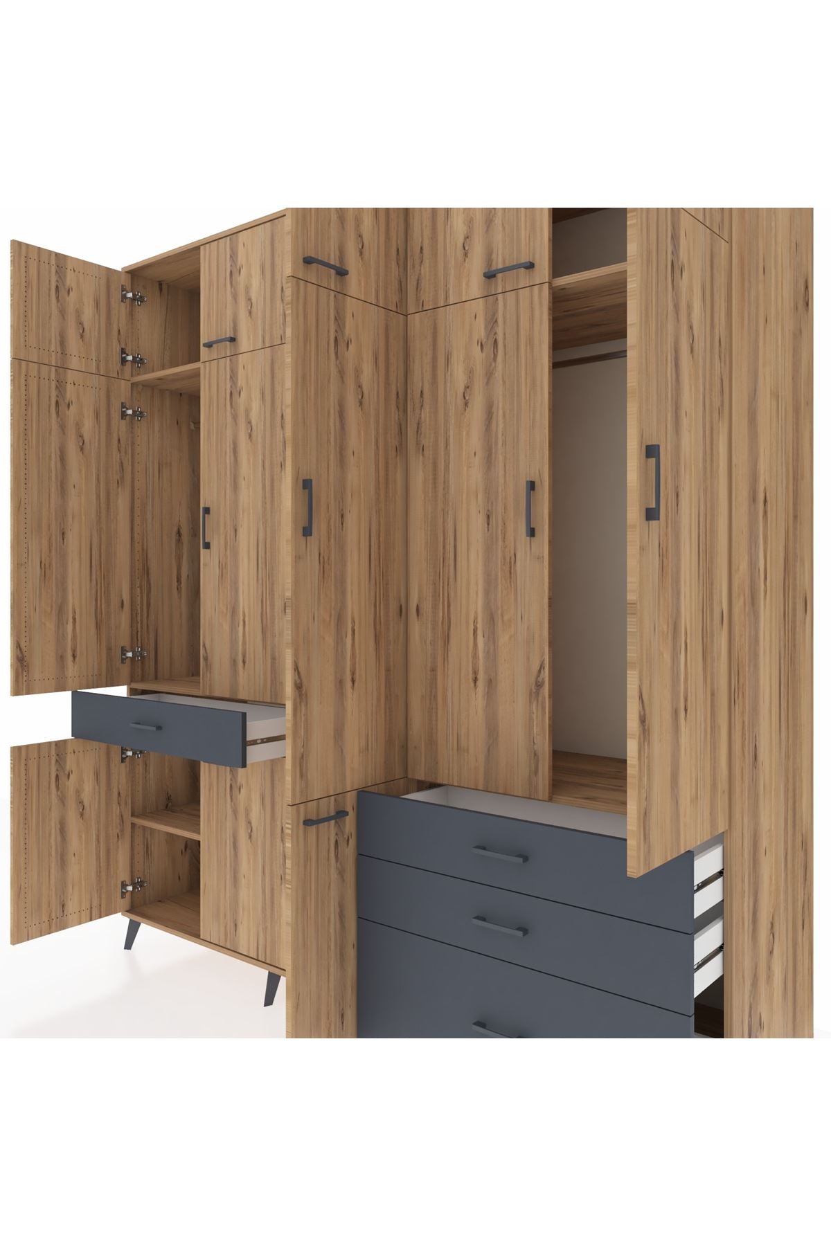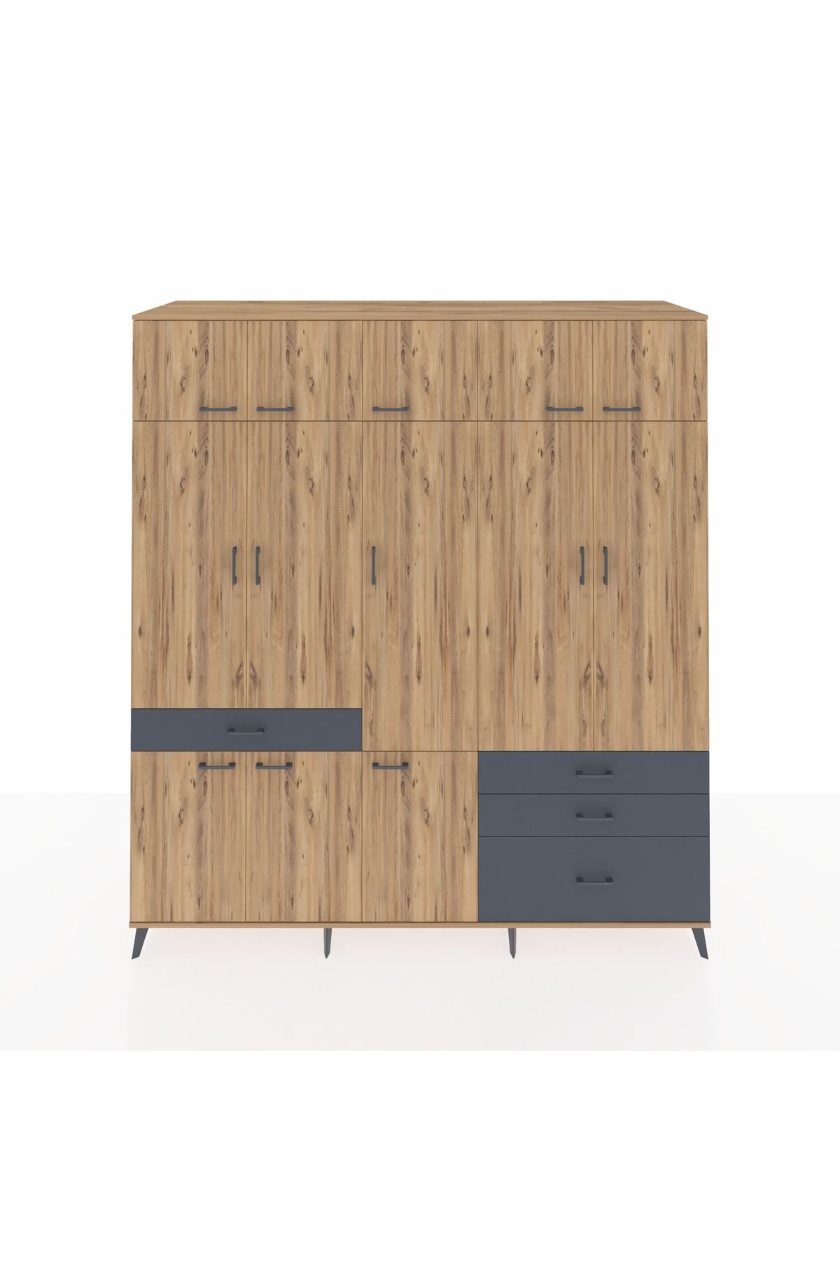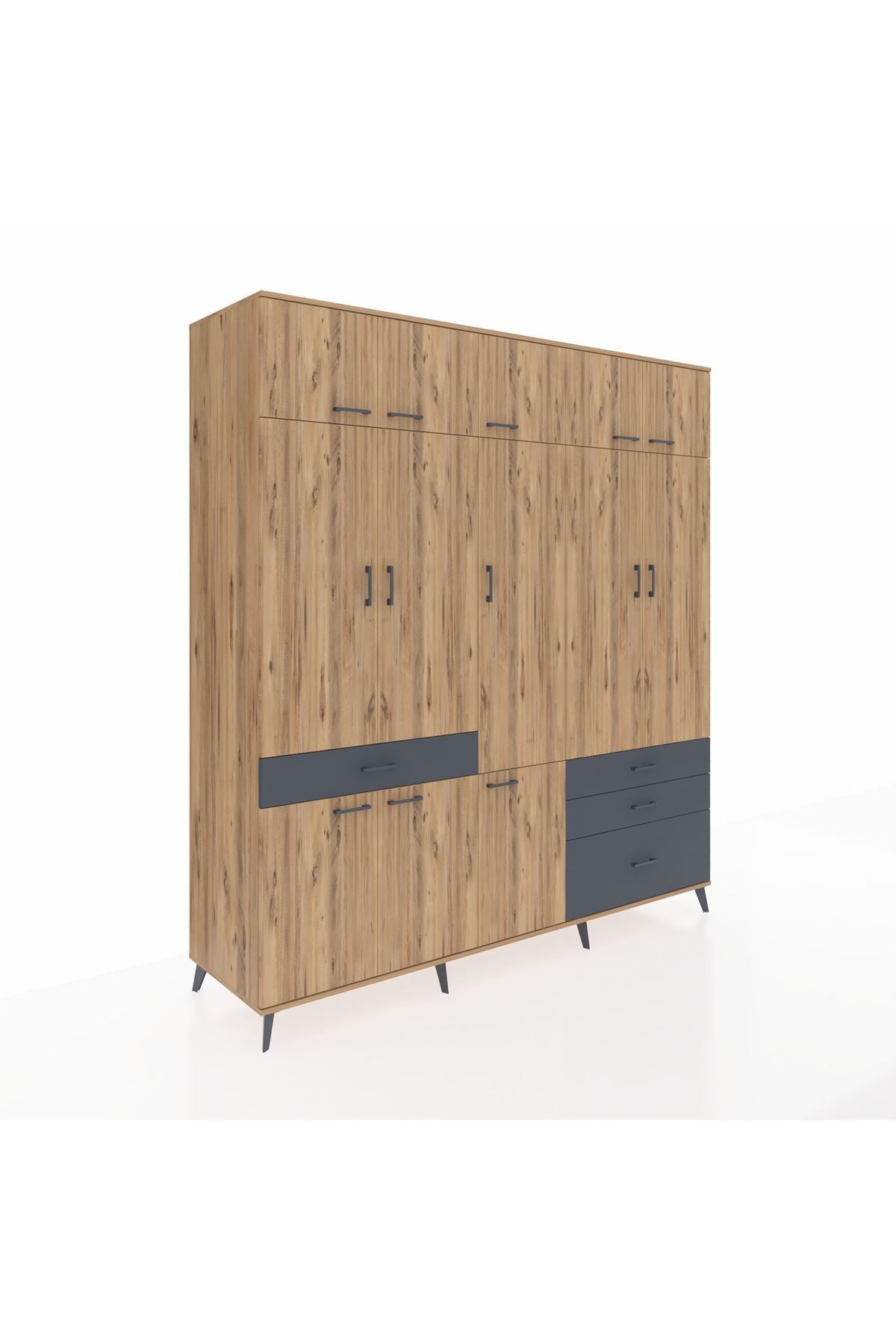 Kronos Dolap 8 Raflı 4 Çekmeceli 3 Askılı 220x59x243 Çam-Çam/Antrasit