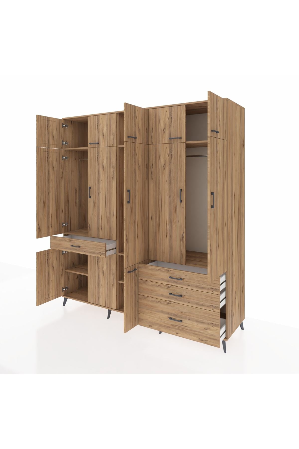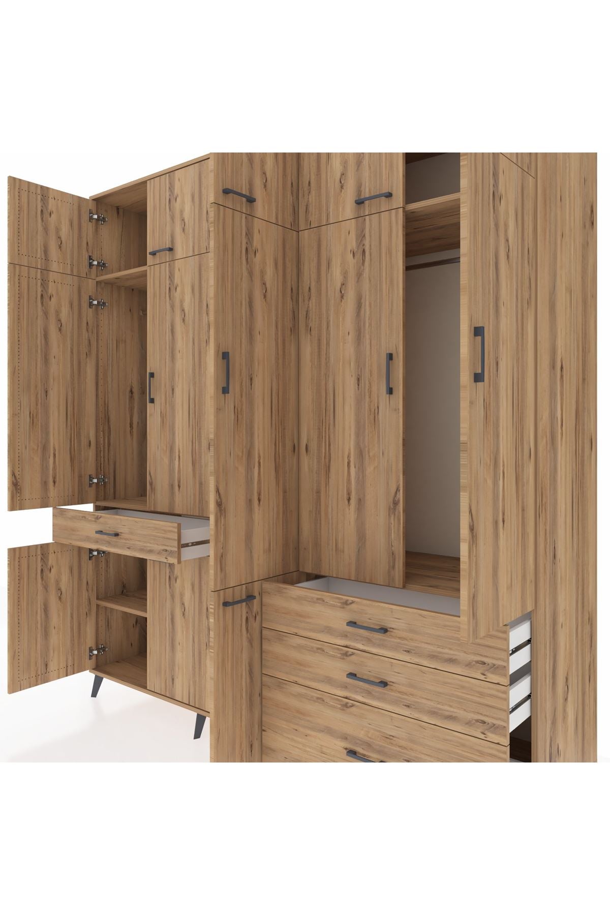 Kronos Dolap 8 Raflı 4 Çekmeceli 3 Askılı 220x59x243 Çam-Çam/Çam