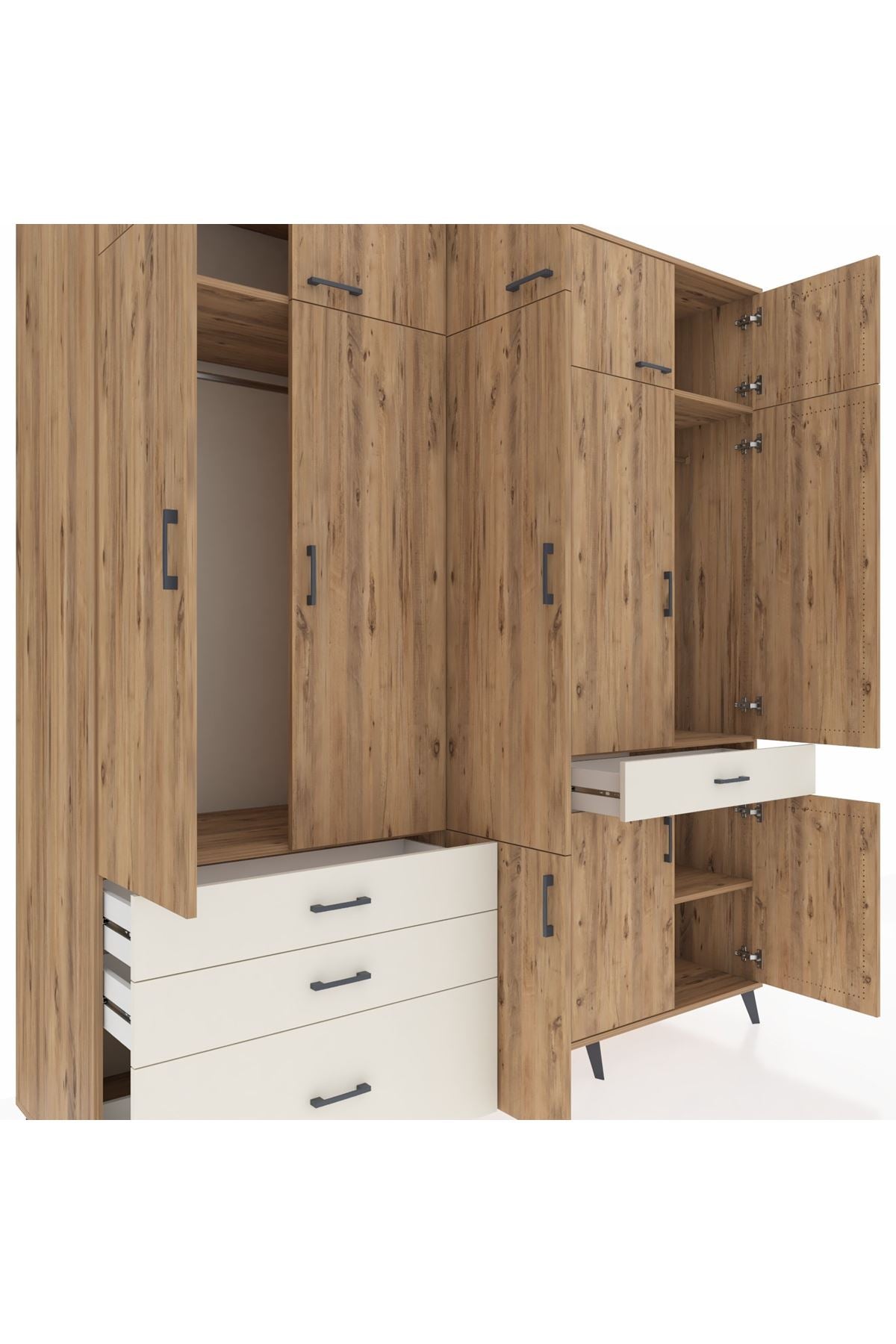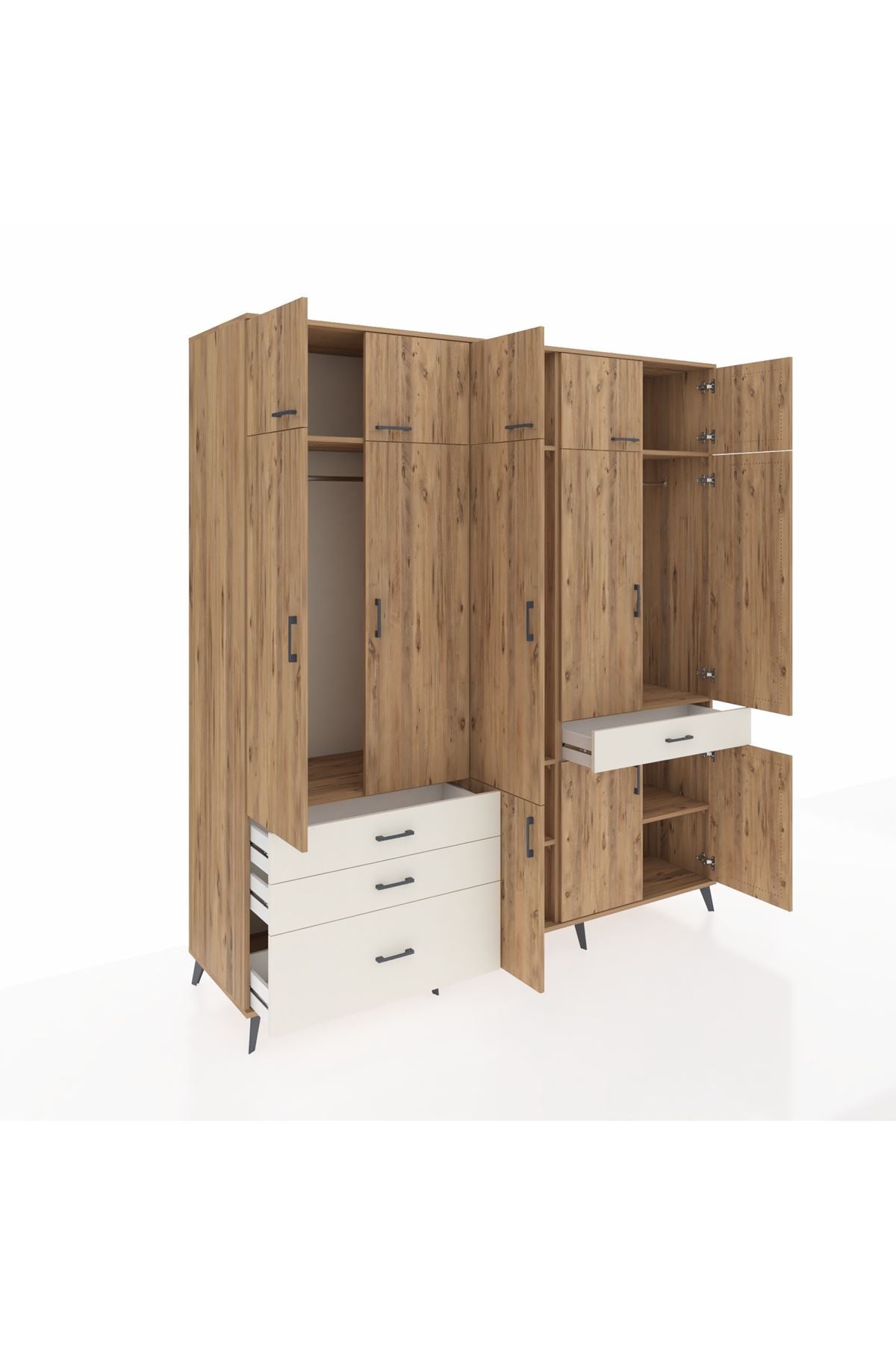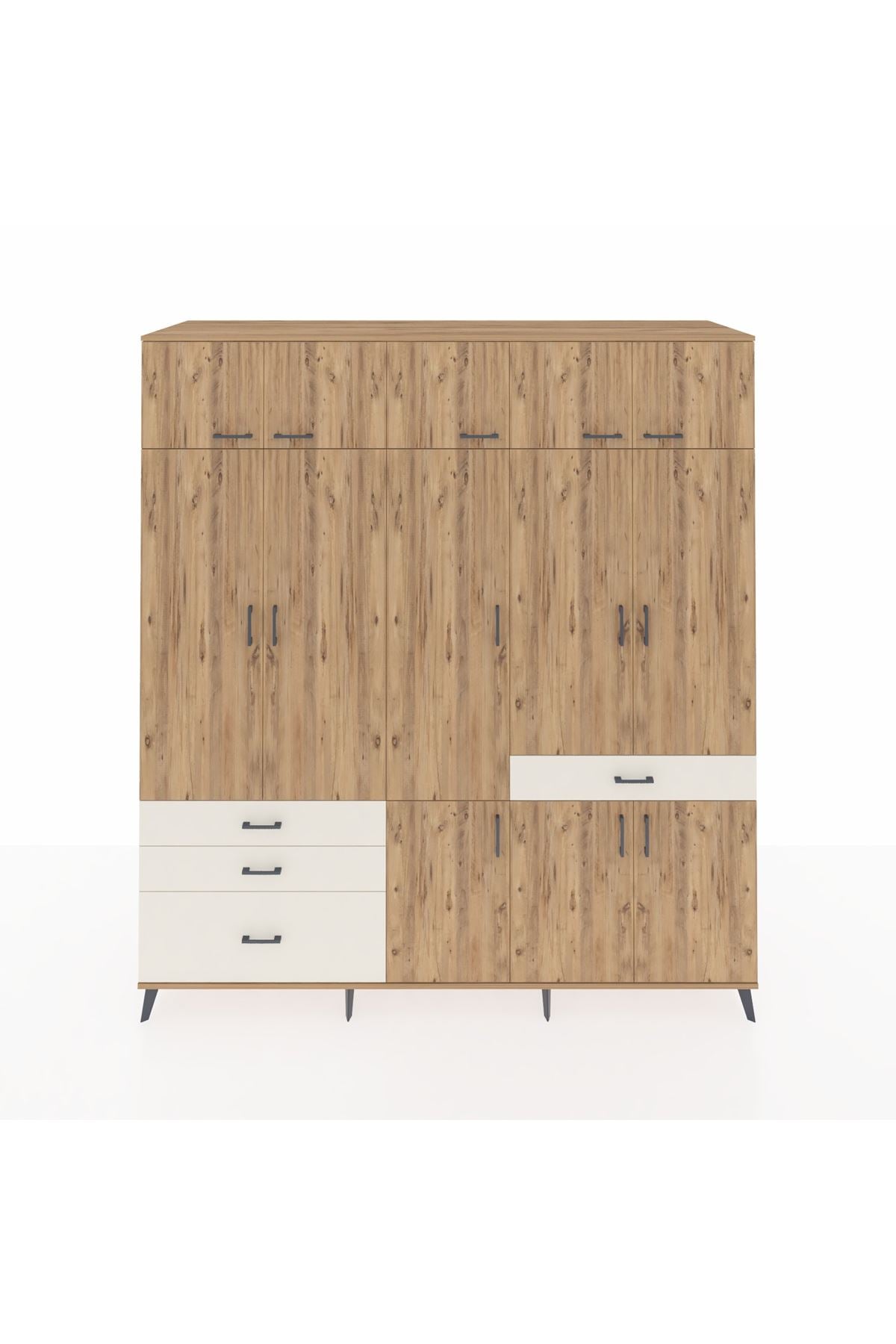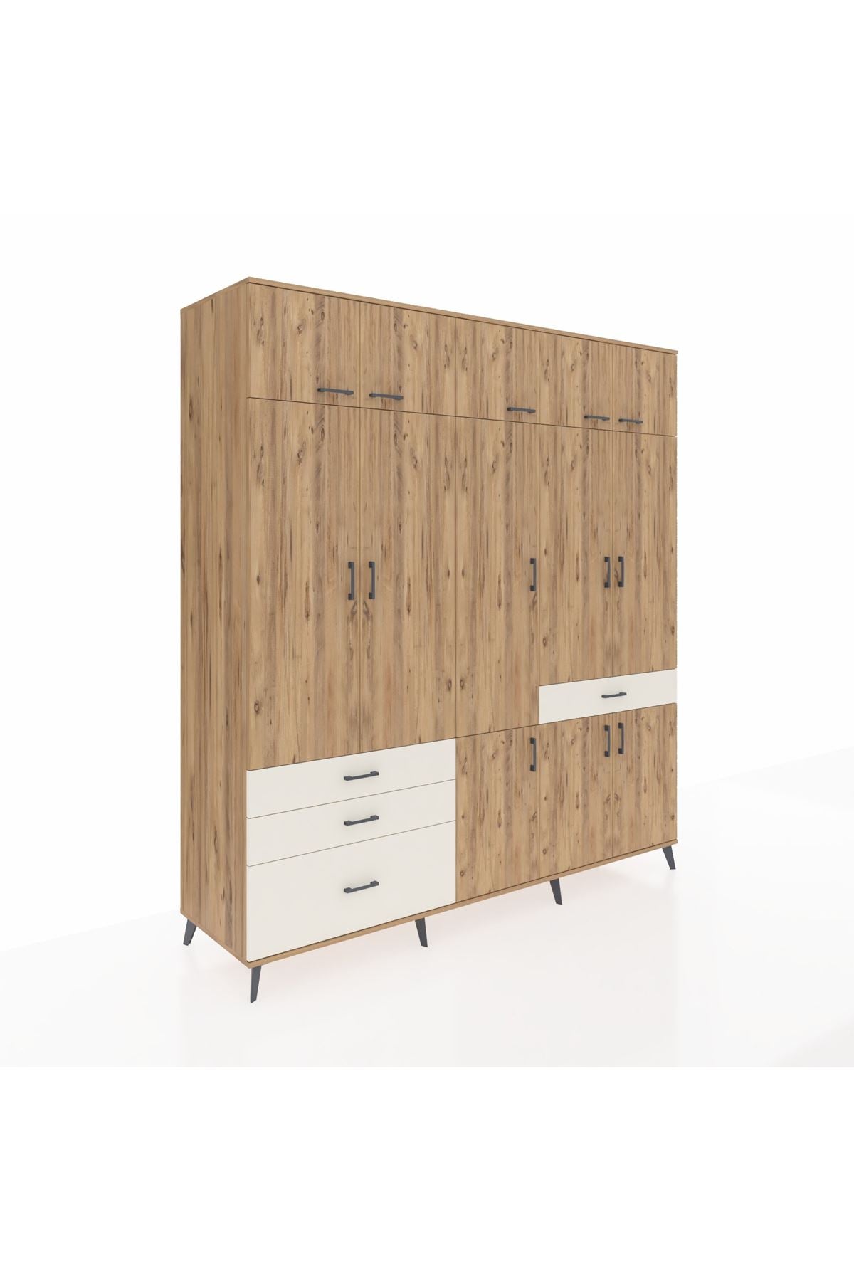 Kronos Dolap 8 Raflı 4 Çekmeceli 3 Askılı 220x59x243 Çam-Çam/Aytaşı