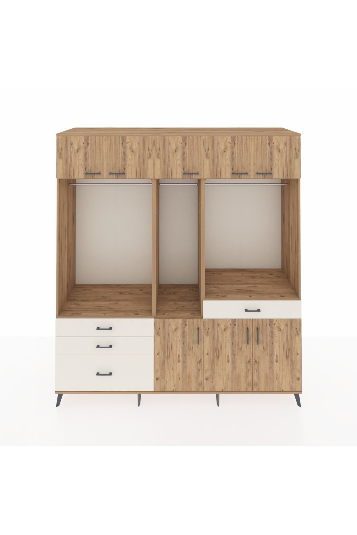Kronos Dolap 8 Raflı 4 Çekmeceli 3 Askılı 220x59x243 Çam-Çam/Aytaşı
