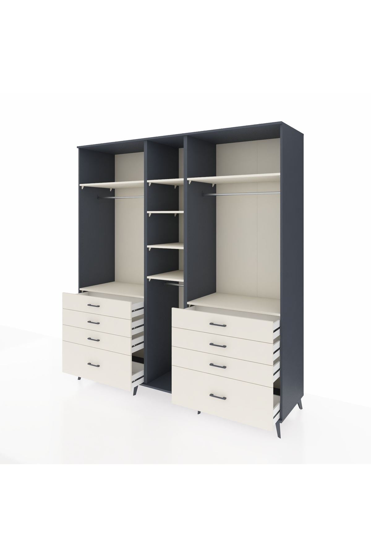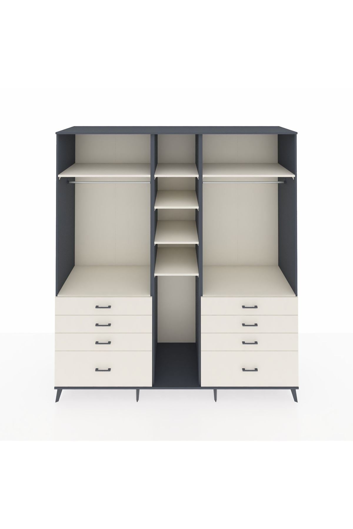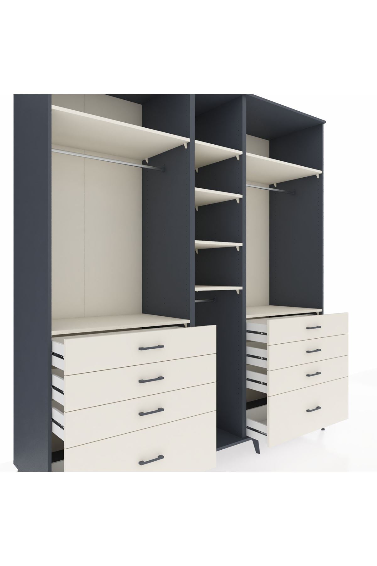 Kronos Dolap 8 Raflı 8 Çekmeceli 3 Askılı 220x59x243 Antrasit-Aytaşı/Aytaşı