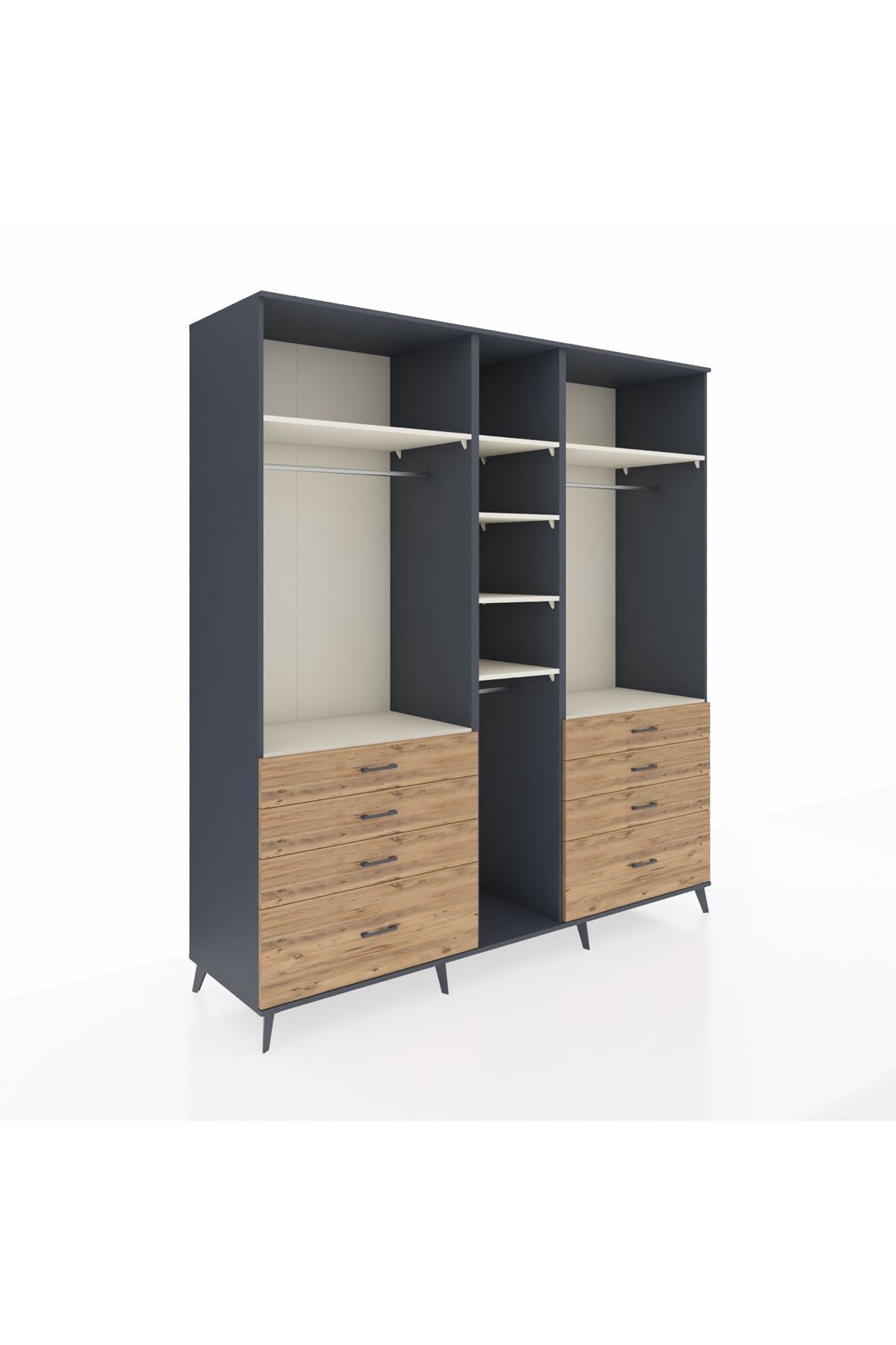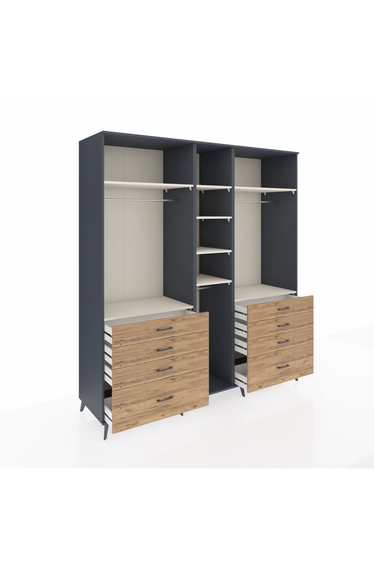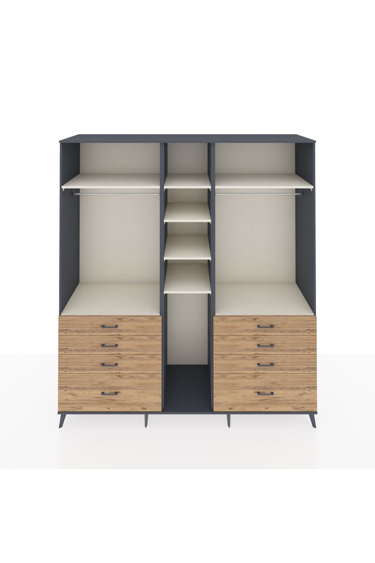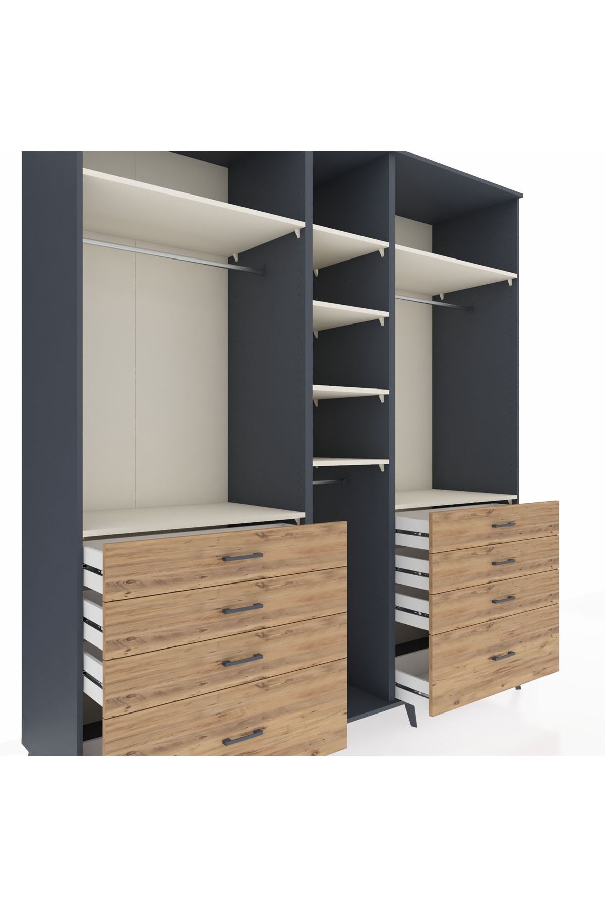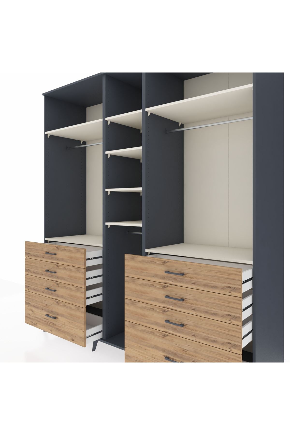 Kronos Dolap 8 Raflı 8 Çekmeceli 3 Askılı 220x59x243 Antrasit-Aytaşı/Çam