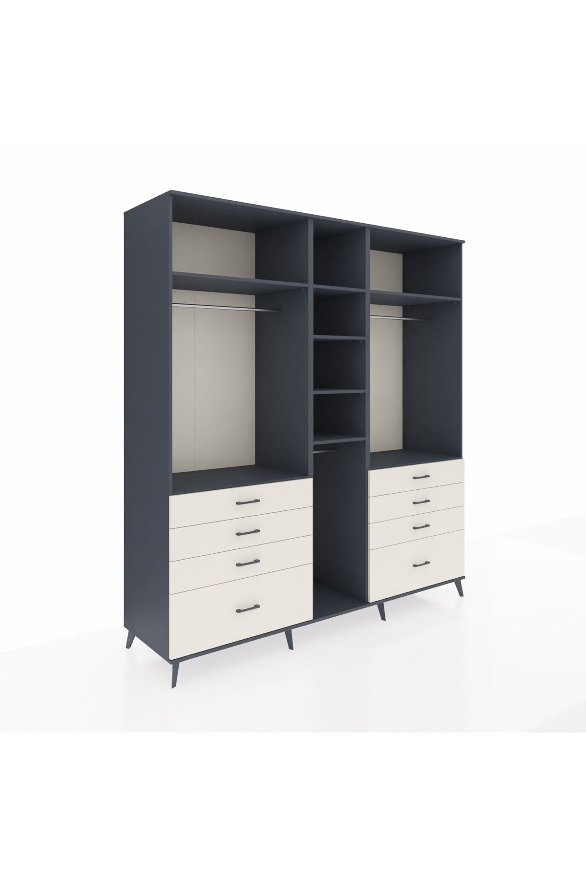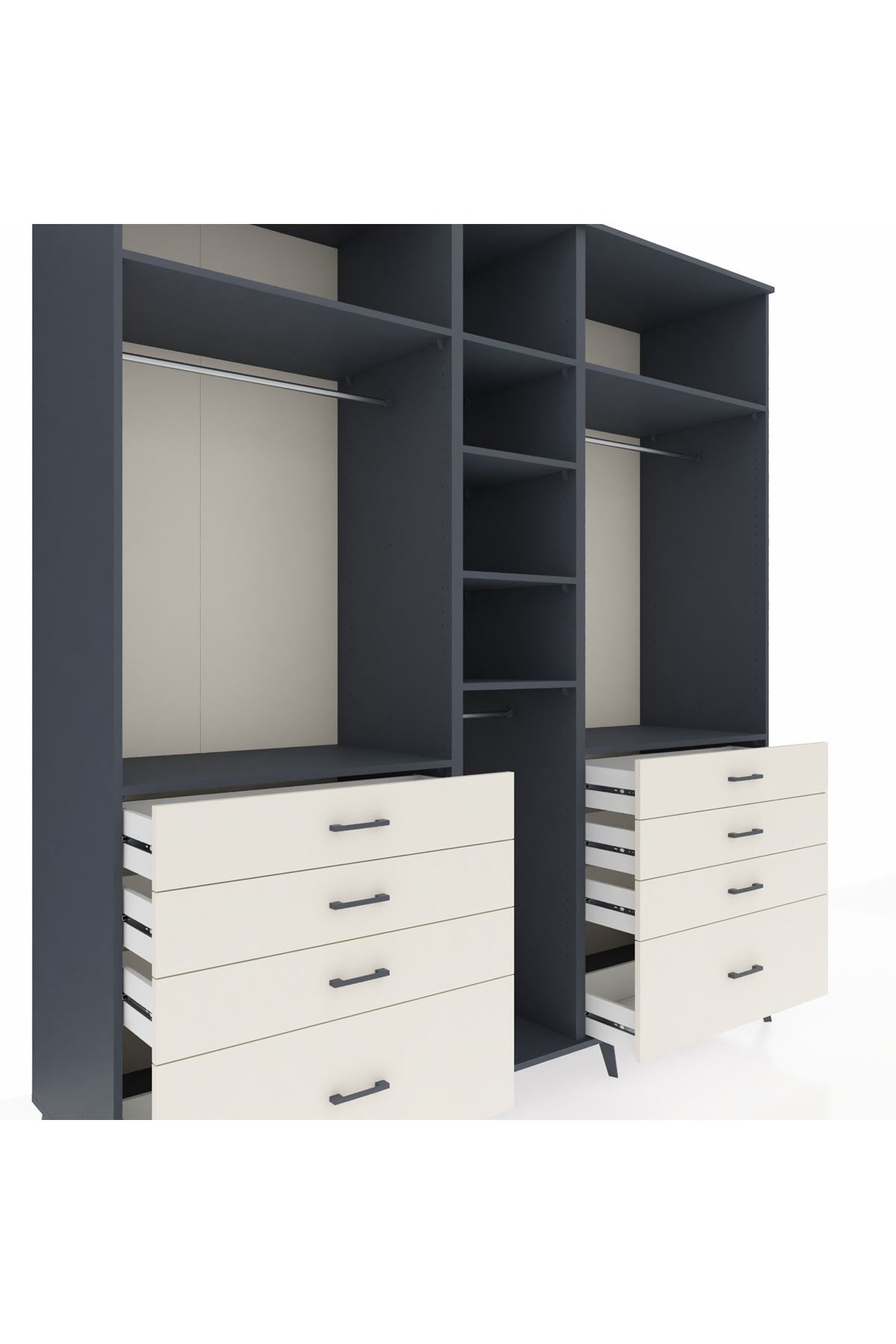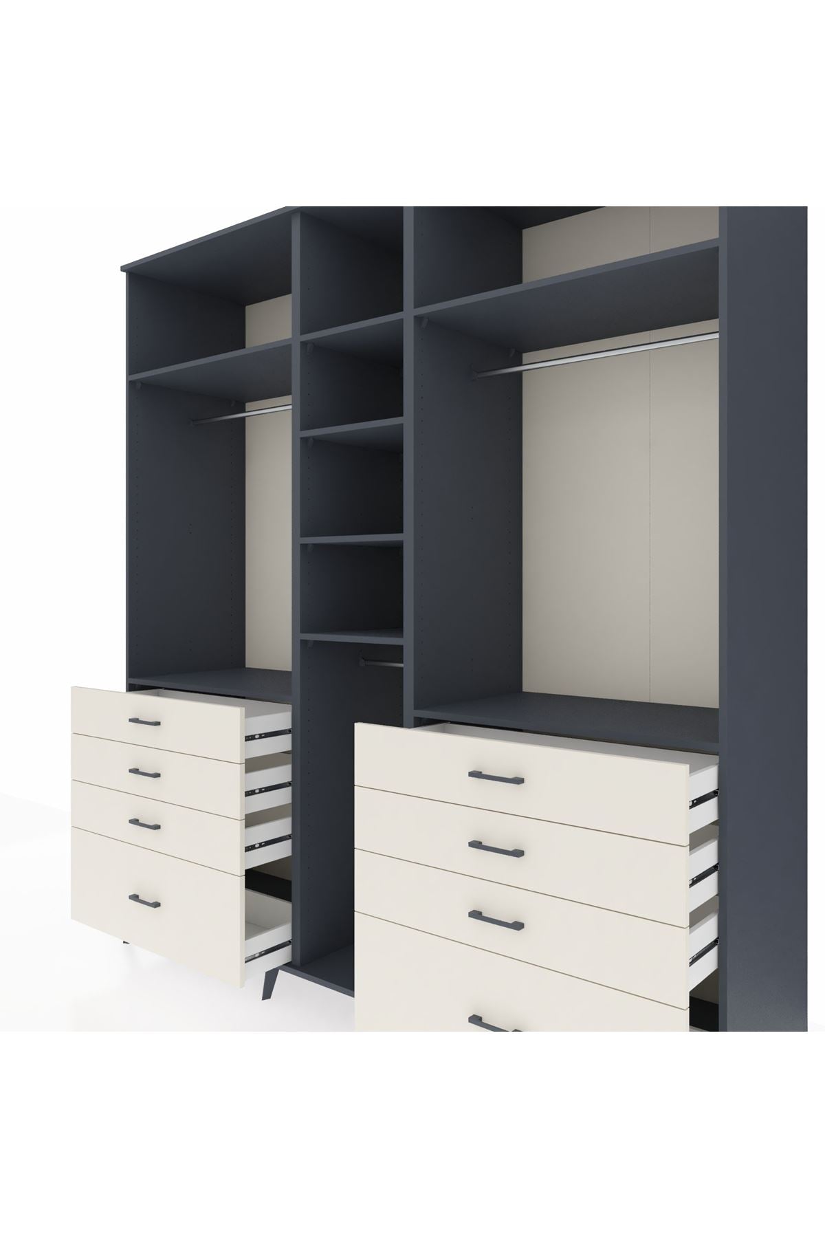 Kronos Dolap 8 Raflı 8 Çekmeceli 3 Askılı 220x59x243 Antrasit-Antrasit/Aytaşı