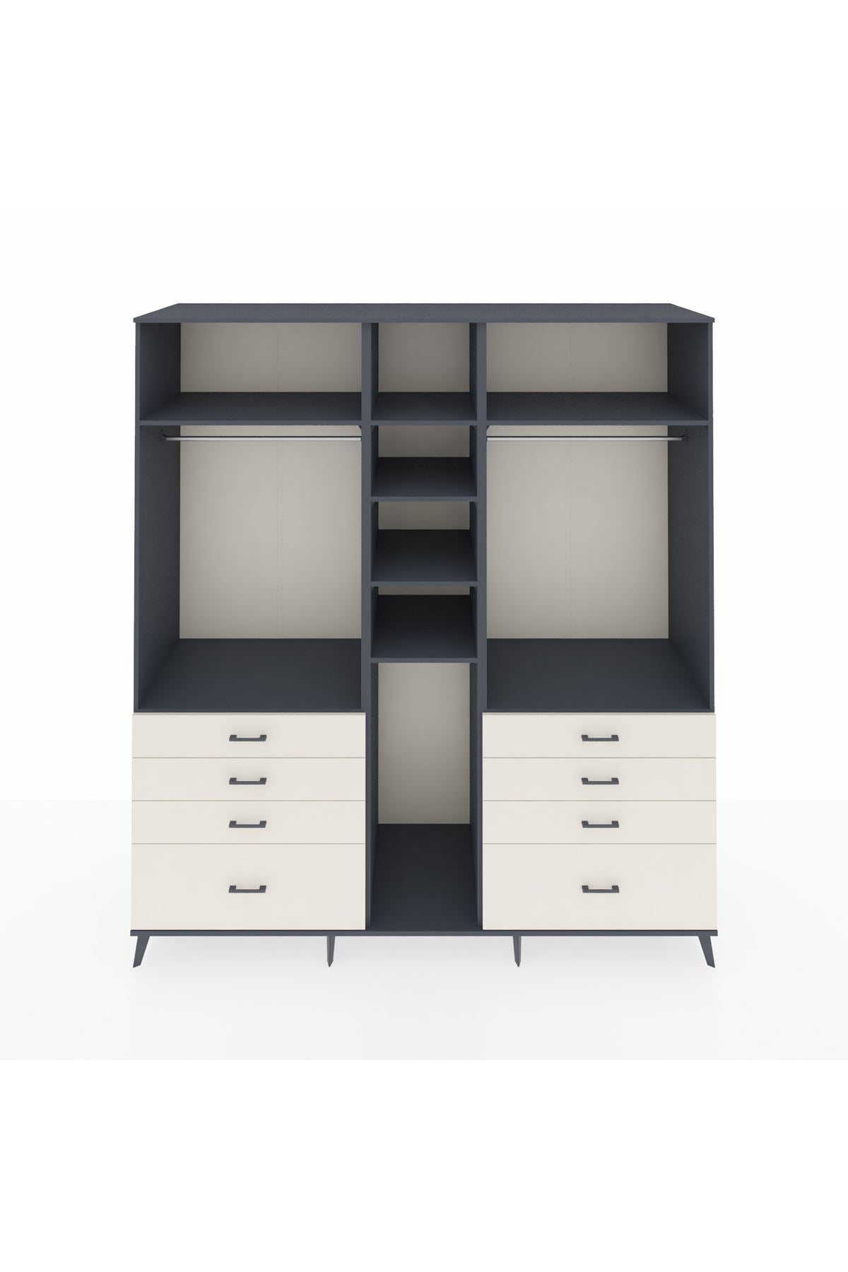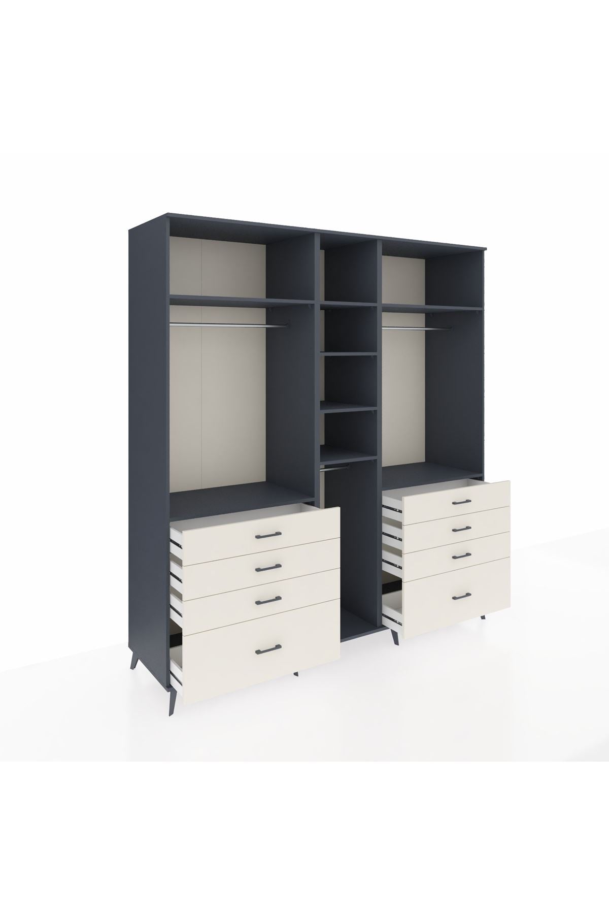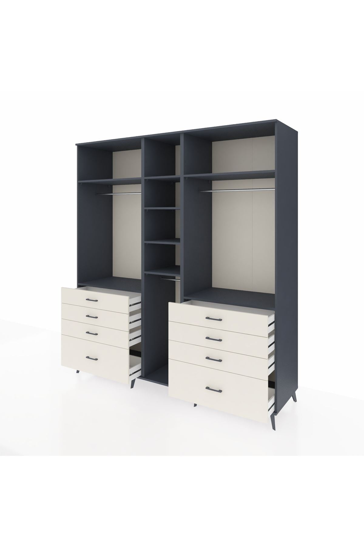 Kronos Dolap 8 Raflı 8 Çekmeceli 3 Askılı 220x59x243 Antrasit-Antrasit/Aytaşı