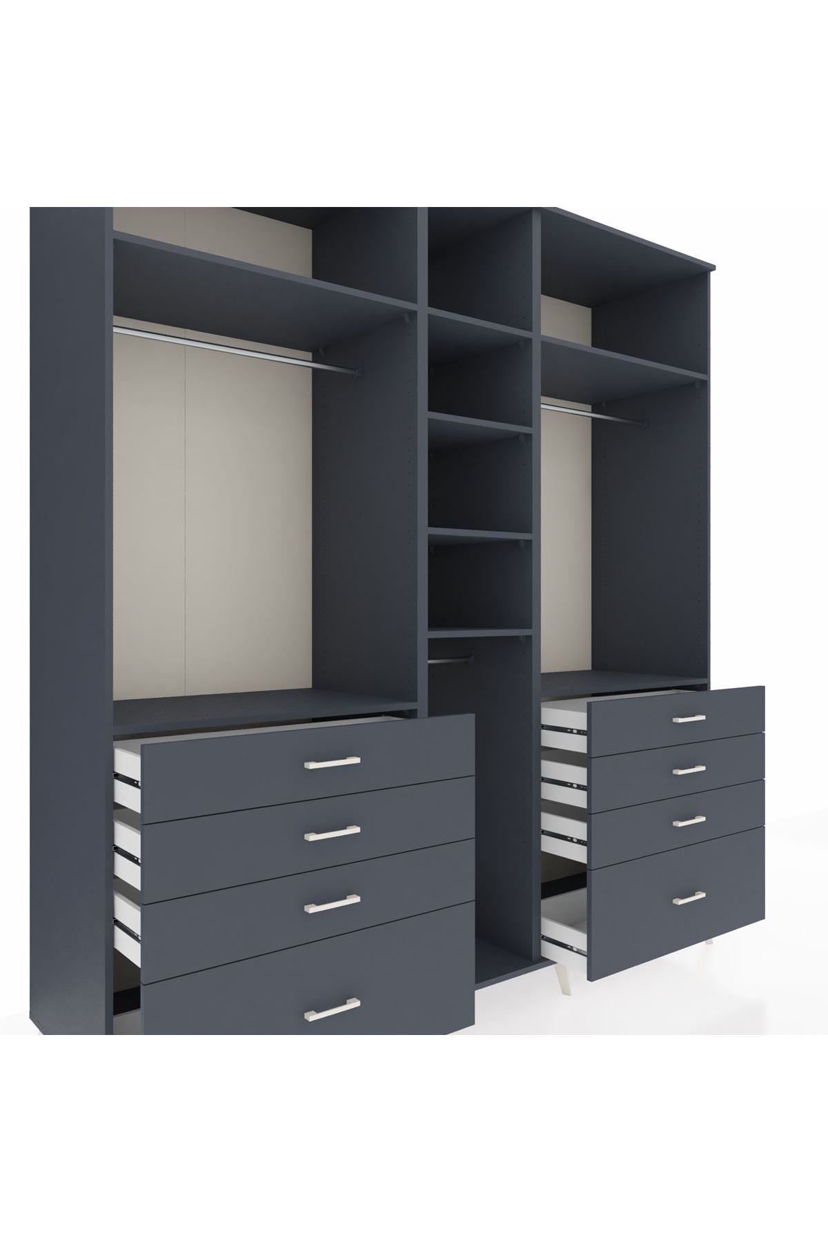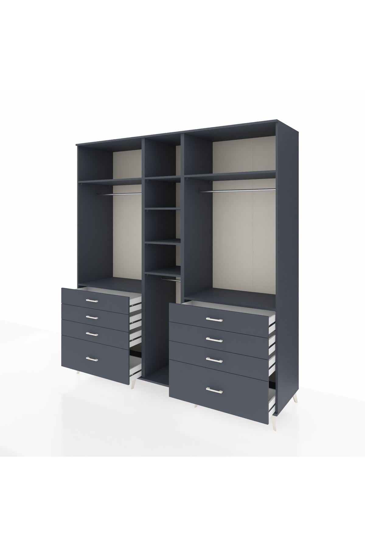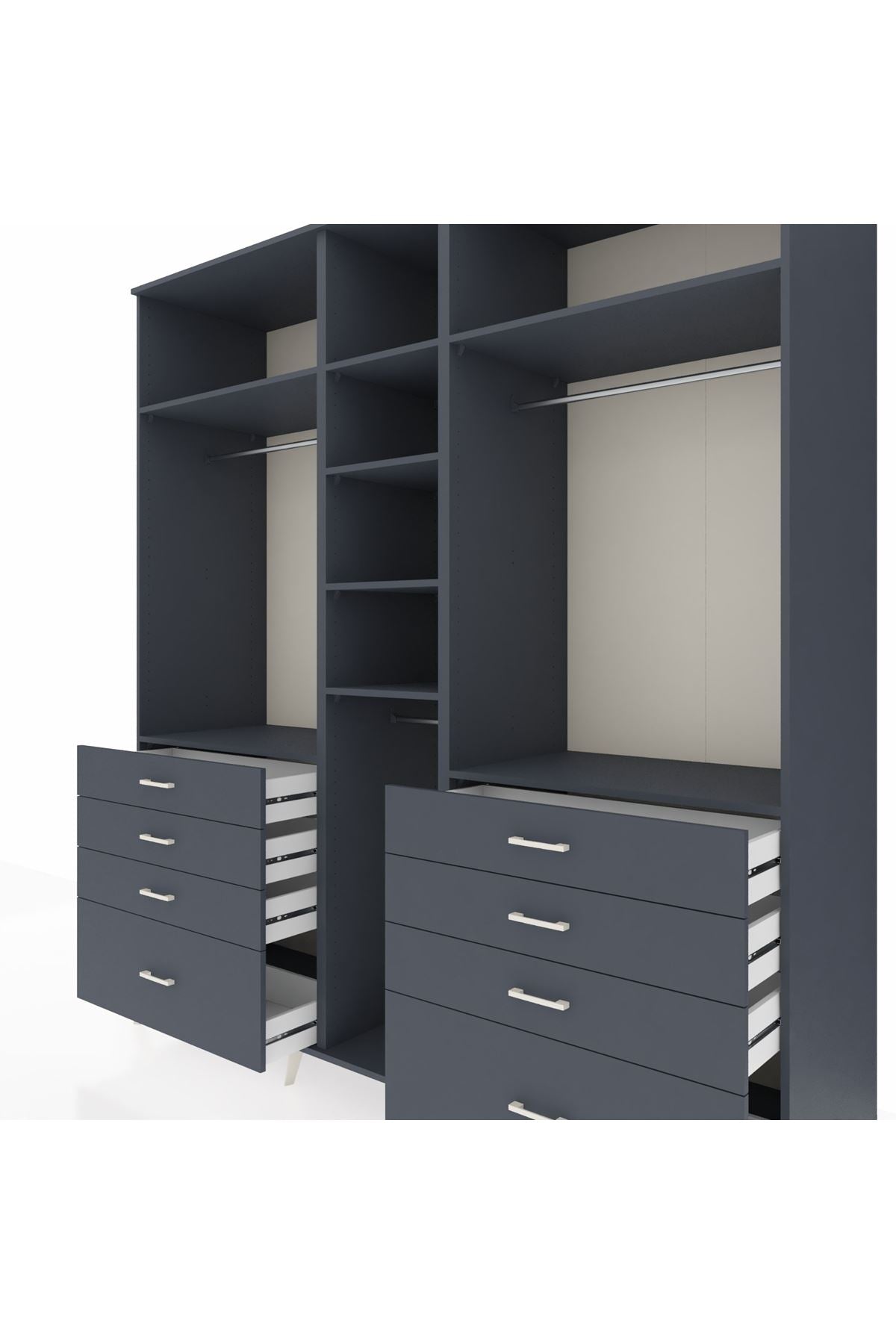 Kronos Dolap 8 Raflı 8 Çekmeceli 3 Askılı 220x59x243 Antrasit-Antrasit/Antrasit